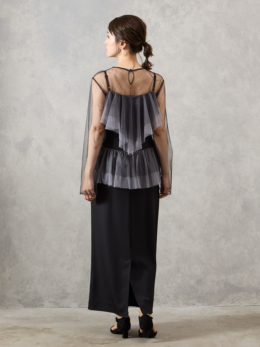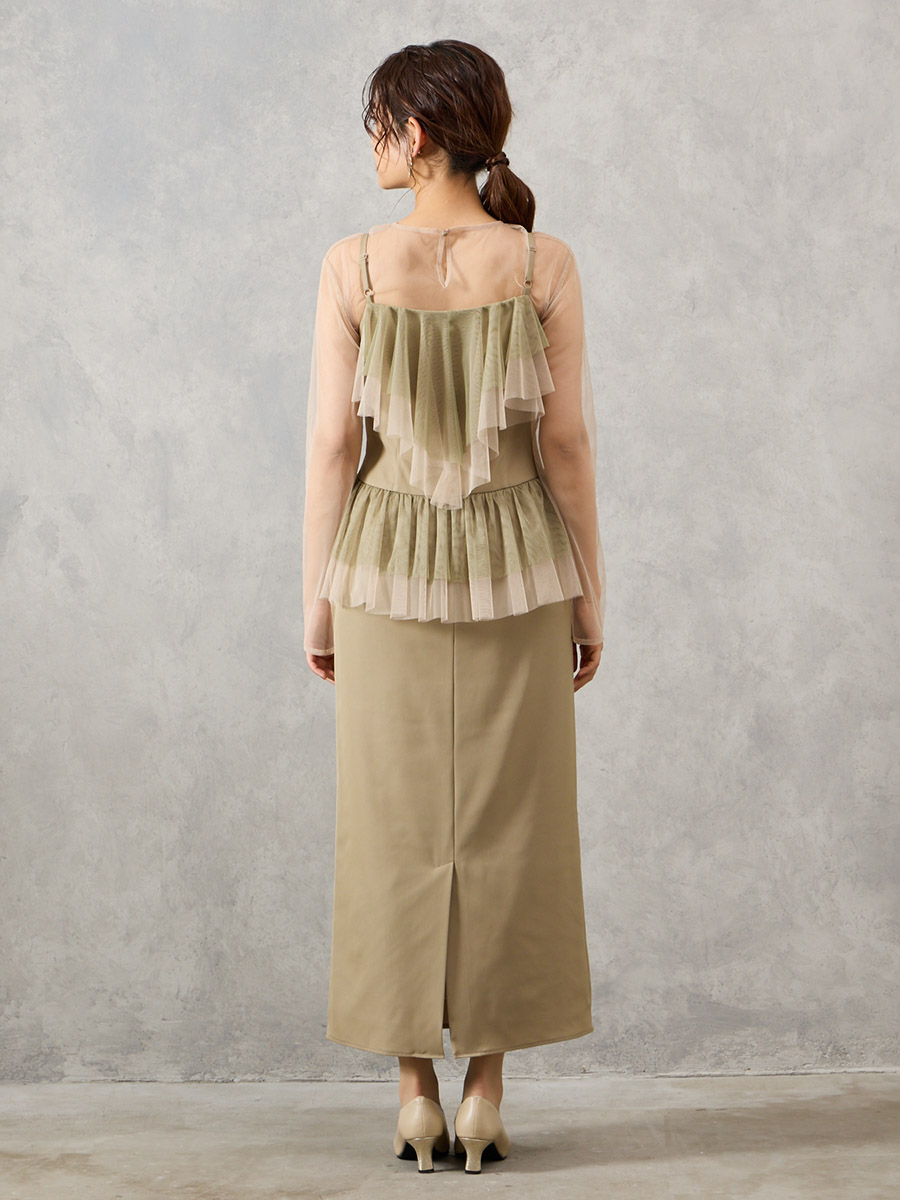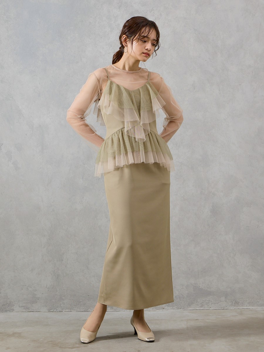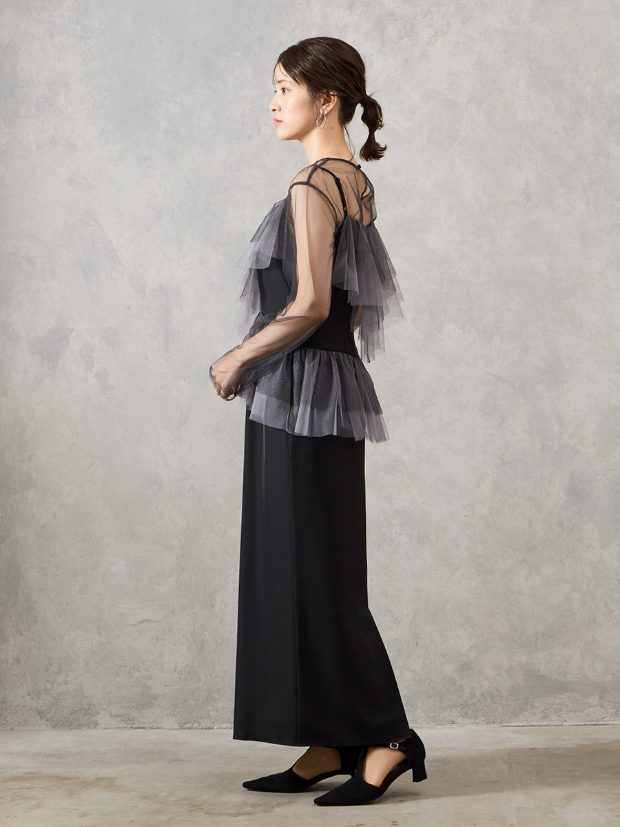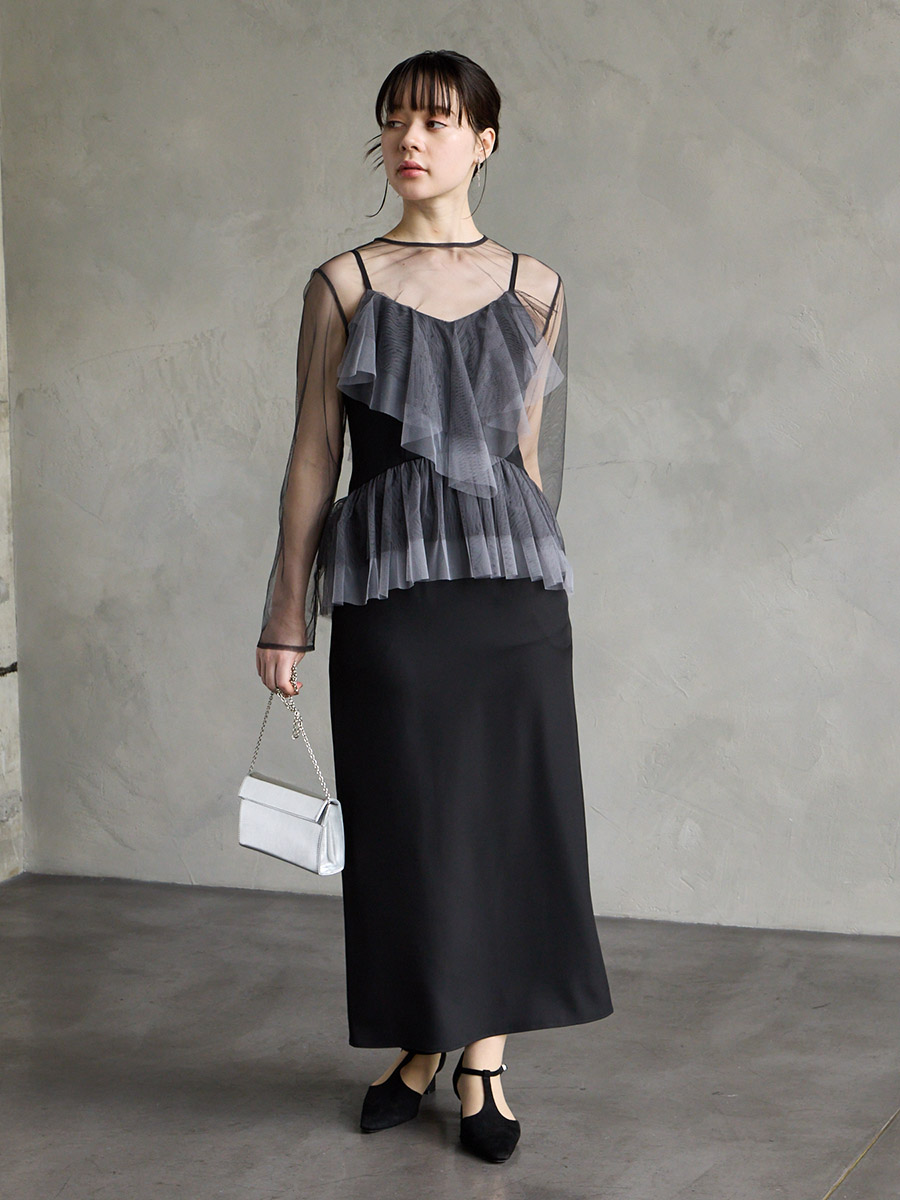 【WEB限定】チュールブラウス×配色フリルIラインドレス2点セット