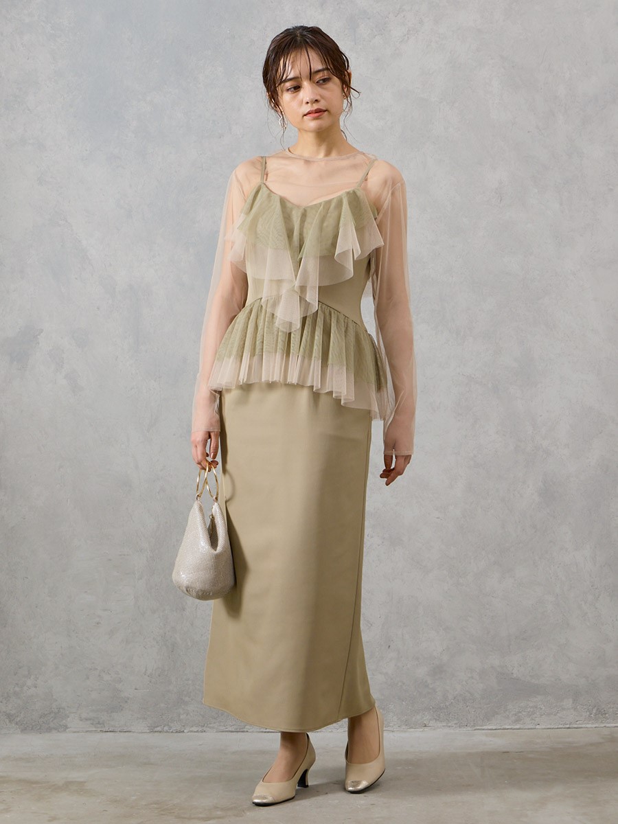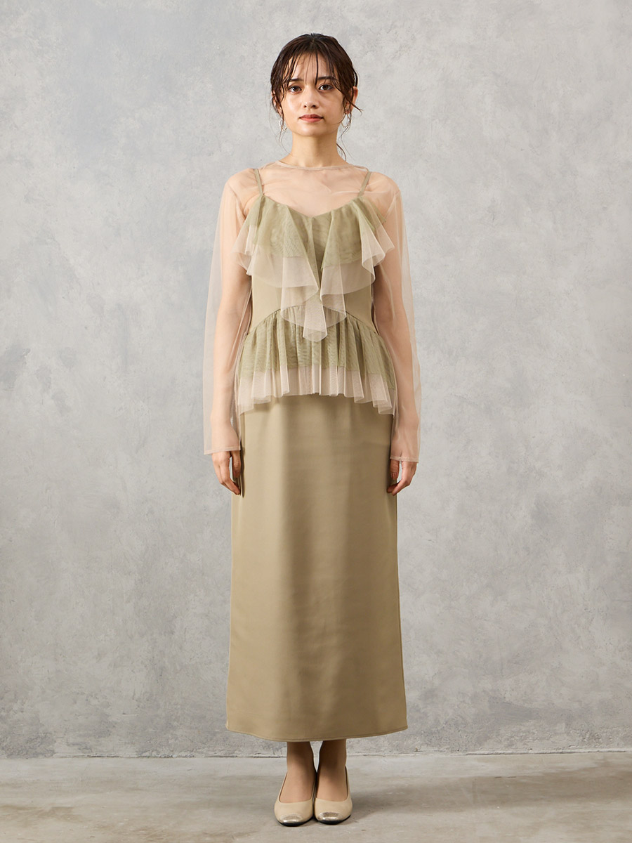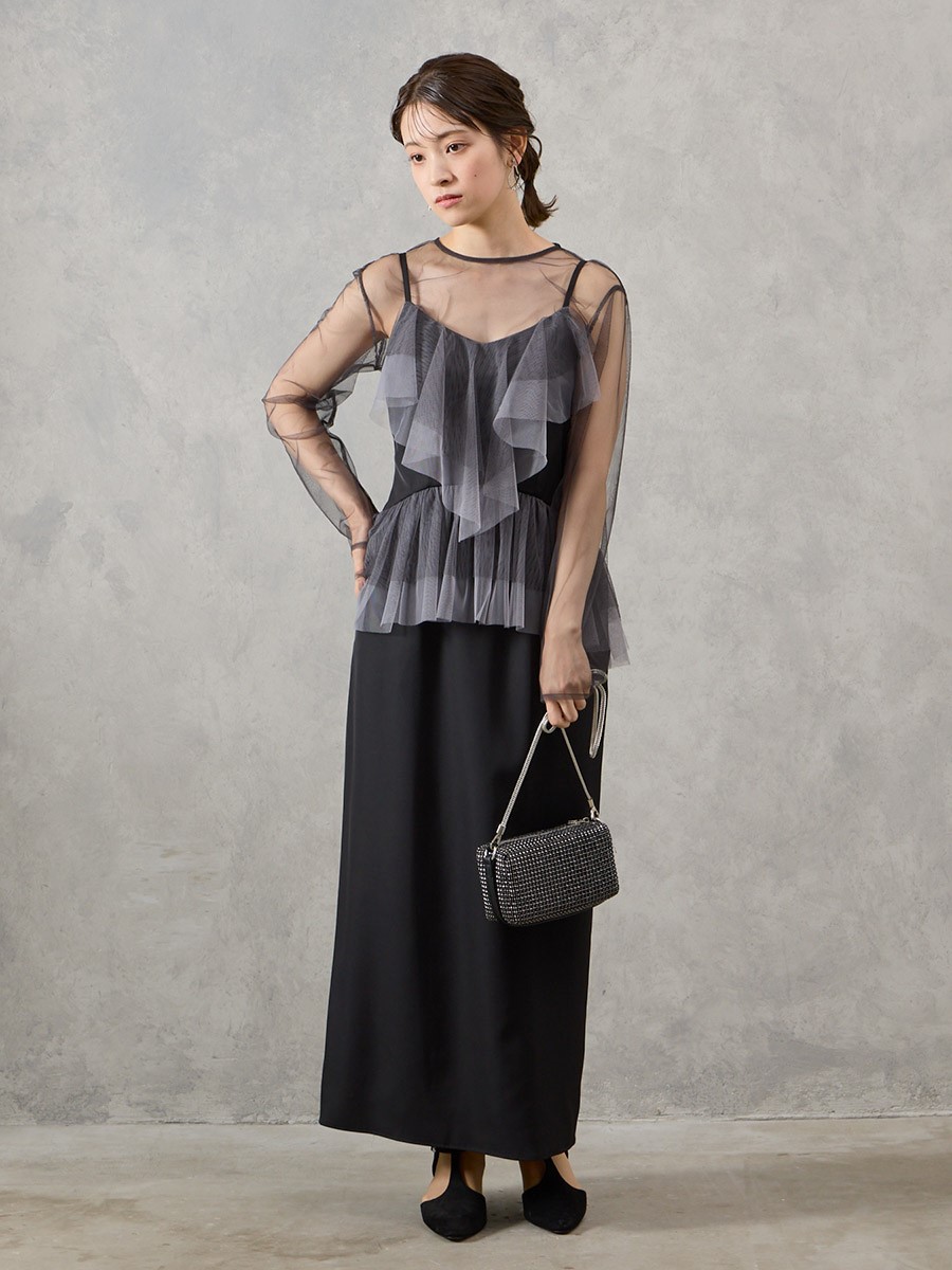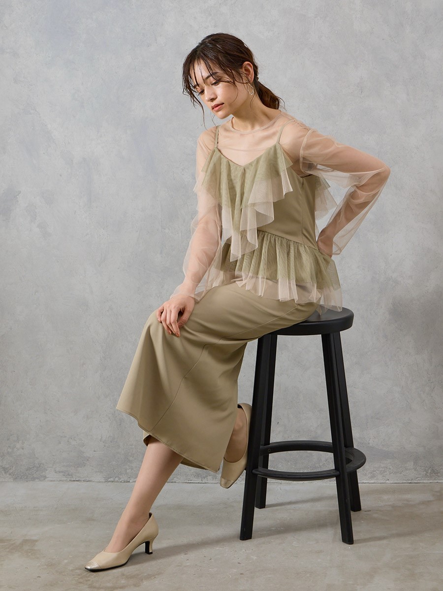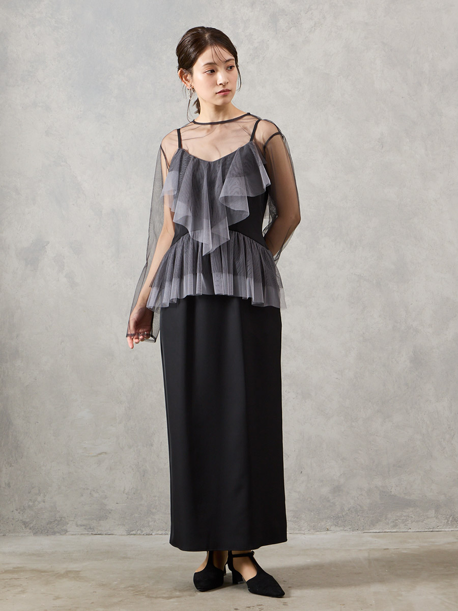 【WEB限定】チュールブラウス×配色フリルIラインドレス2点セット