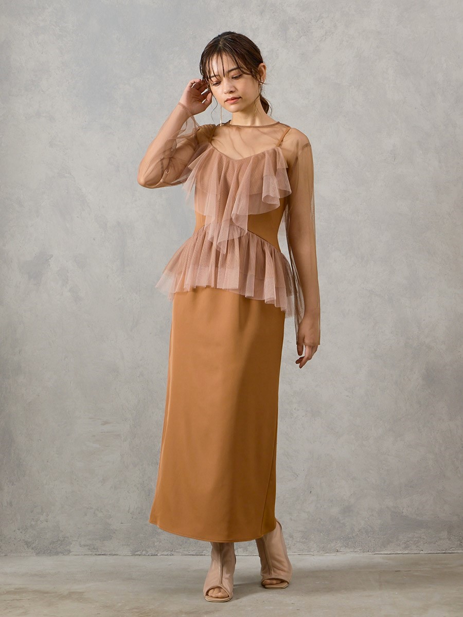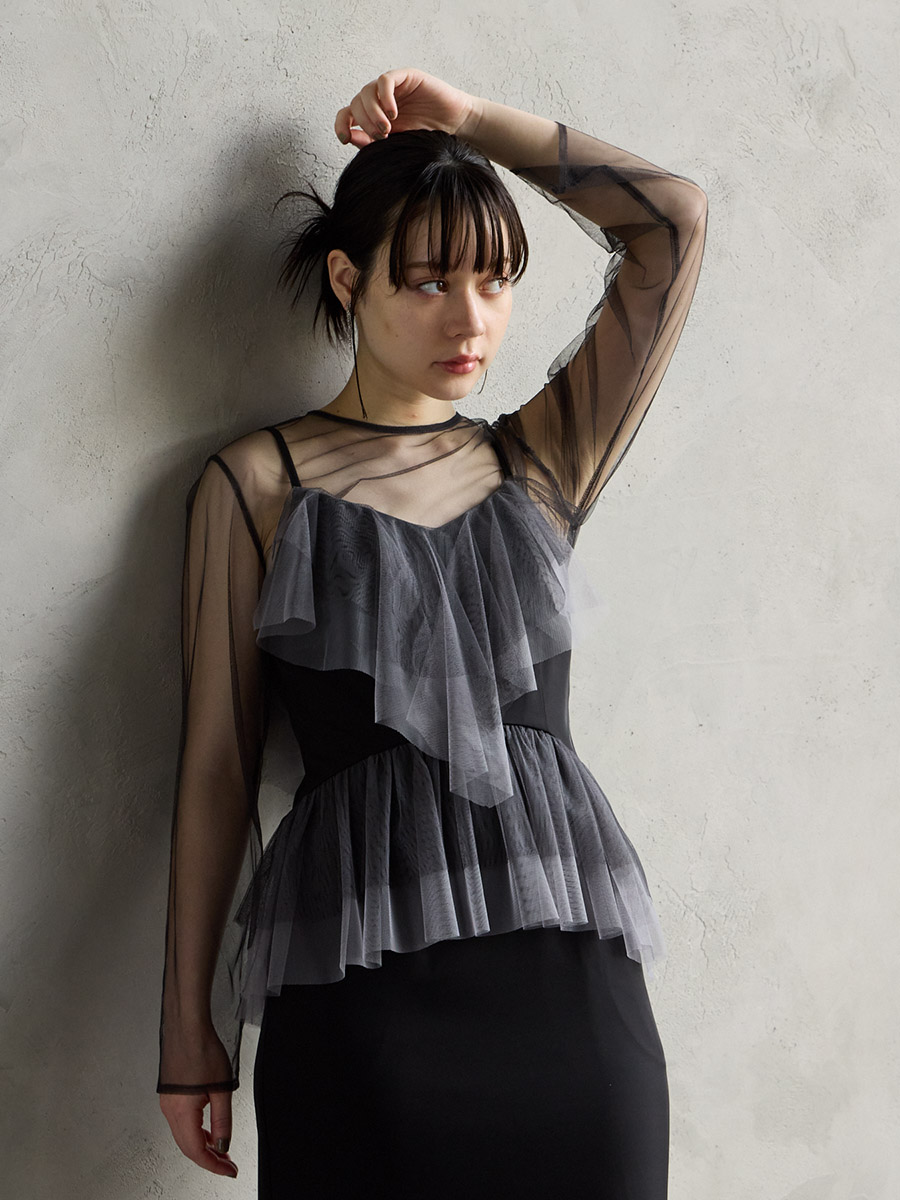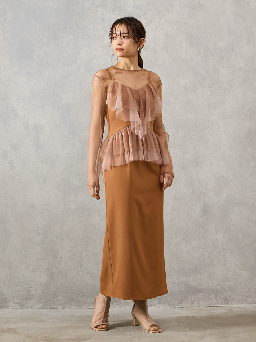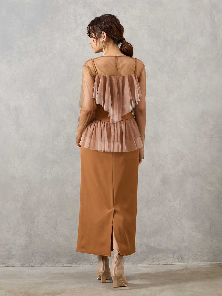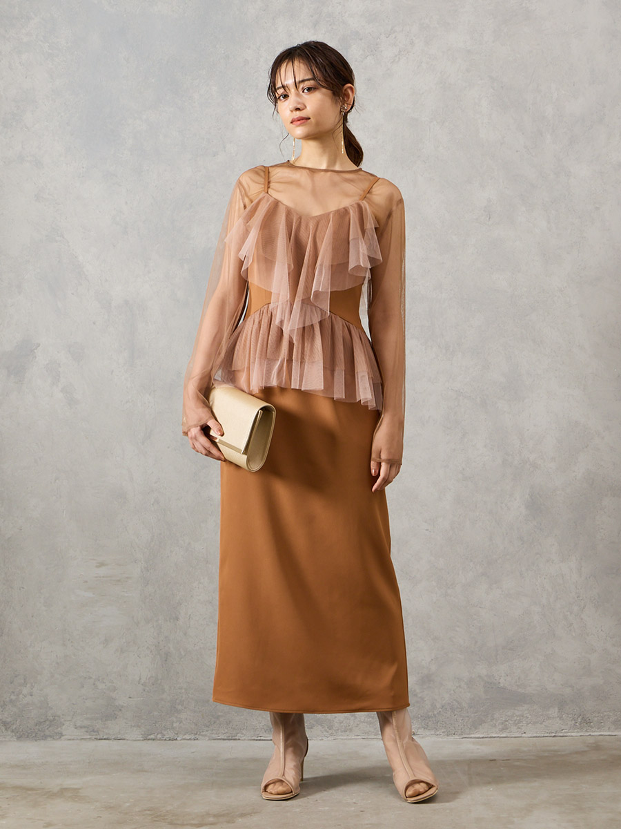 【WEB限定】チュールブラウス×配色フリルIラインドレス2点セット