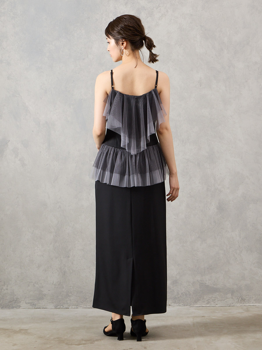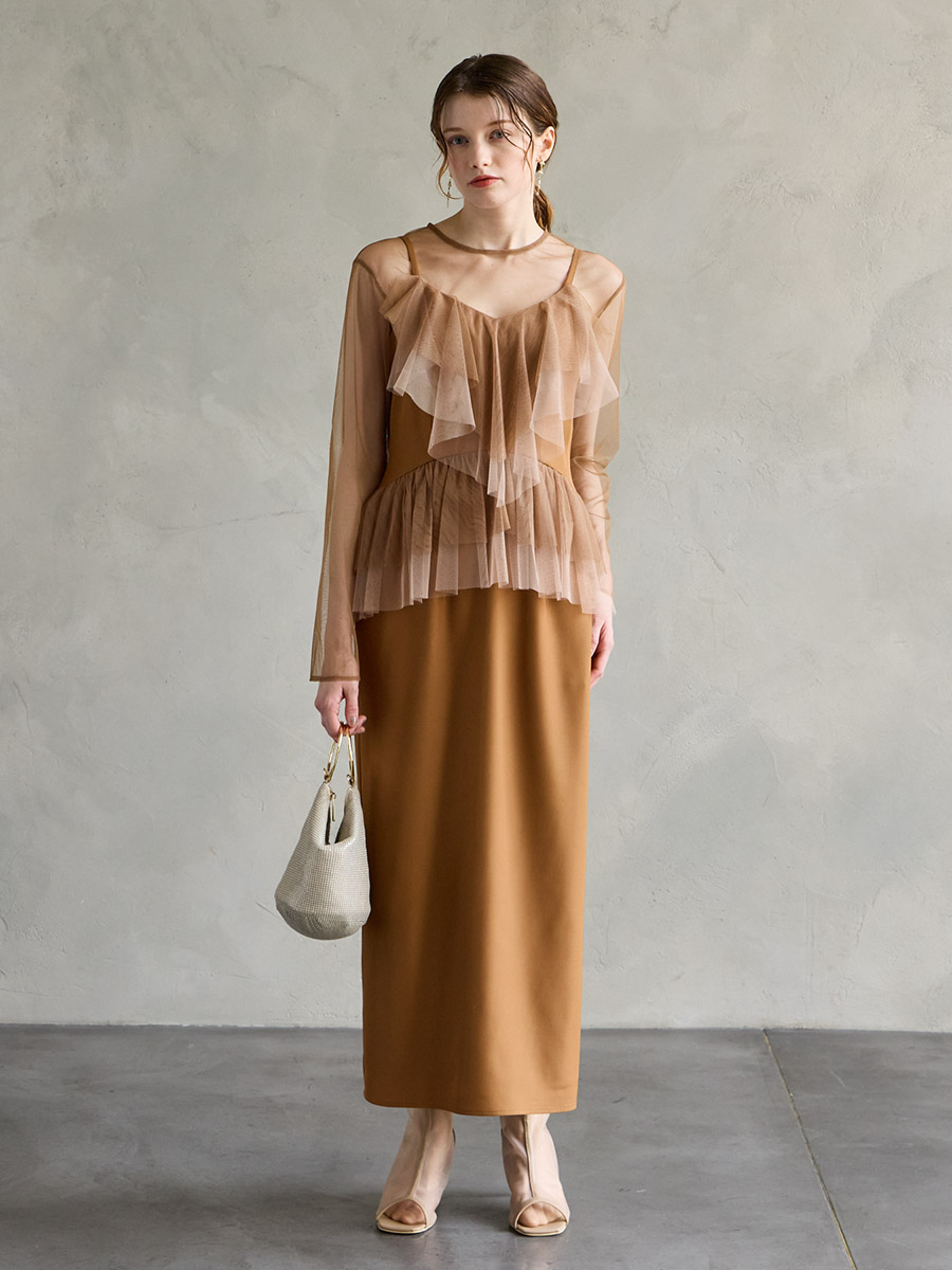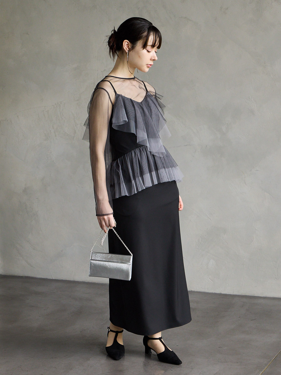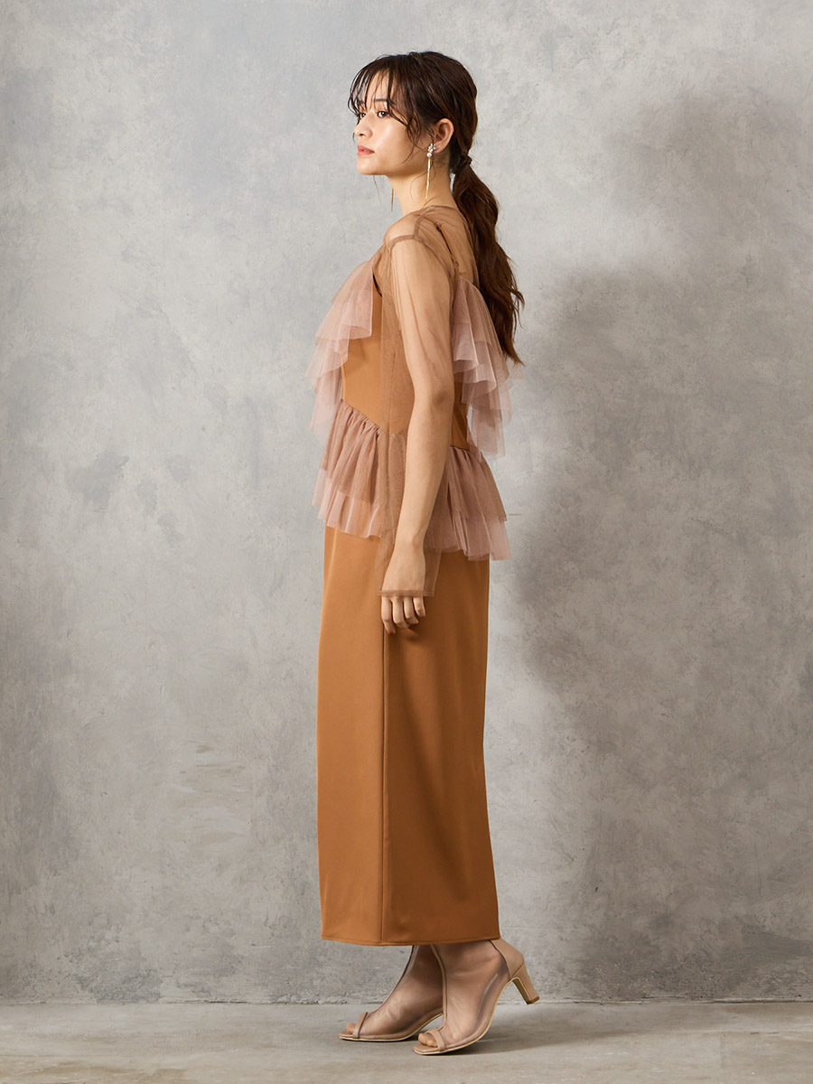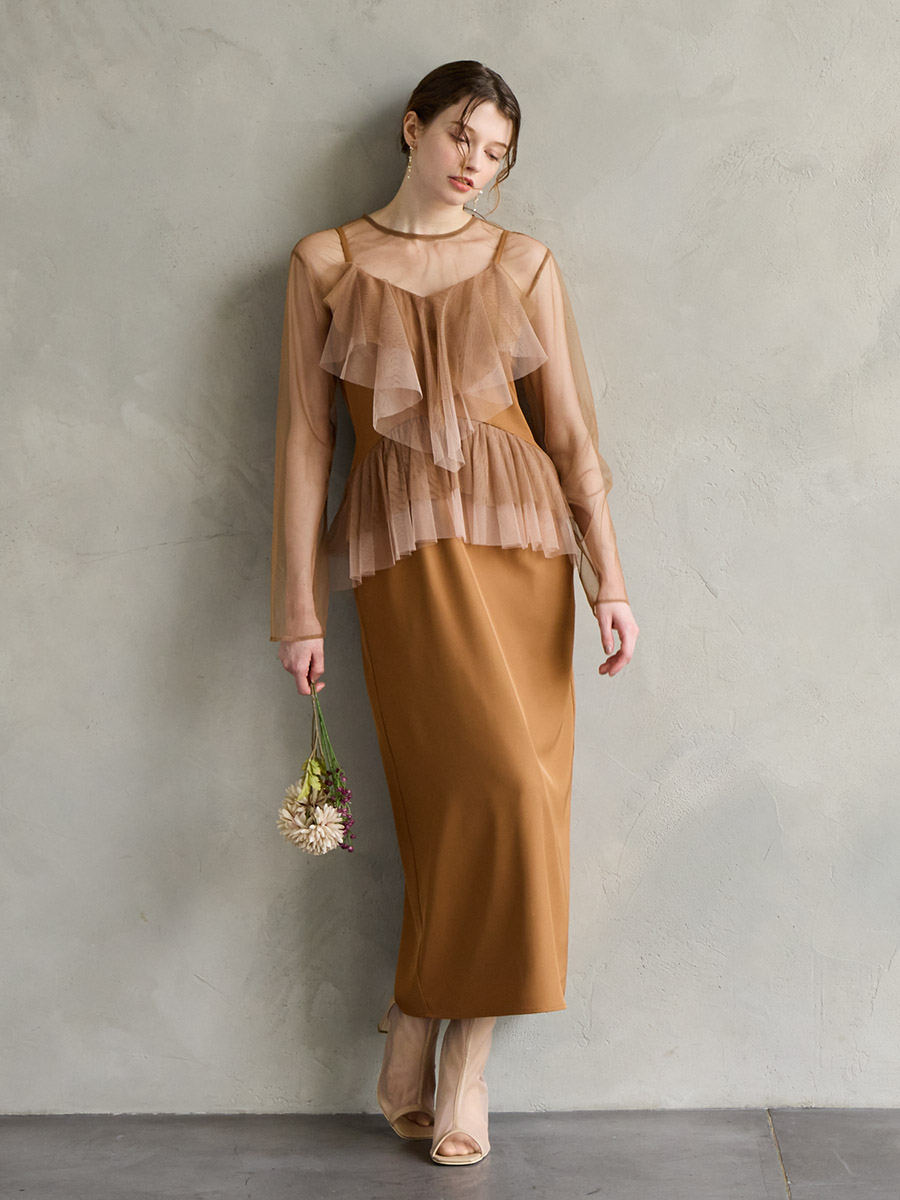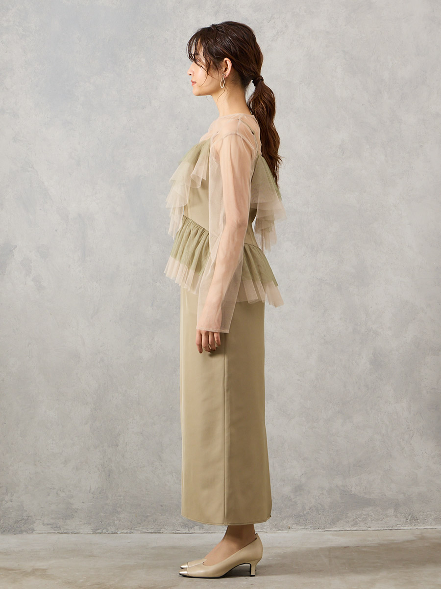 【WEB限定】チュールブラウス×配色フリルIラインドレス2点セット