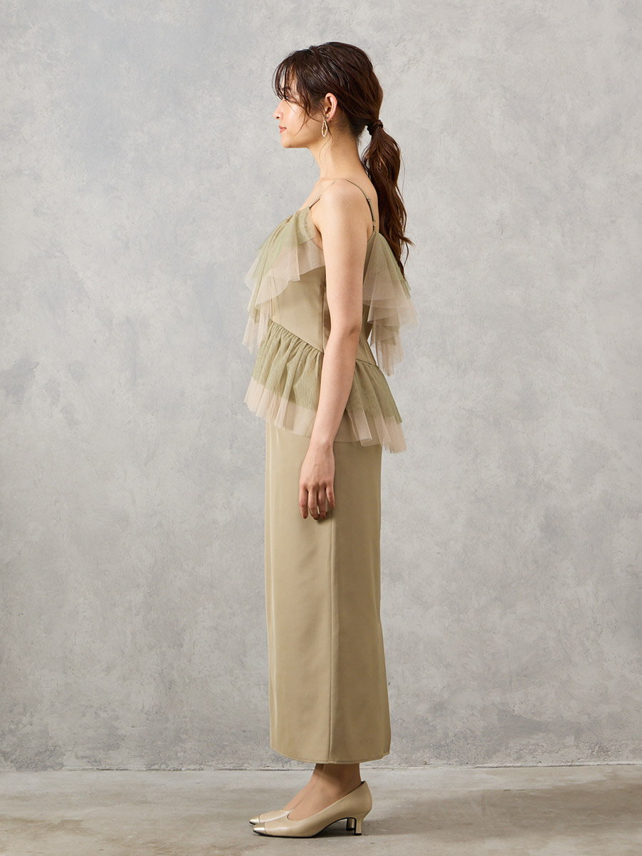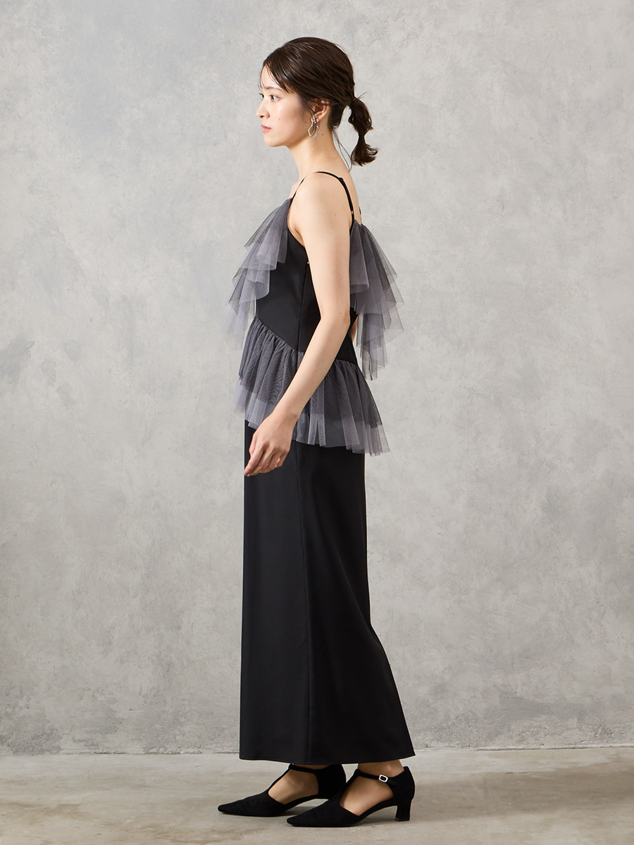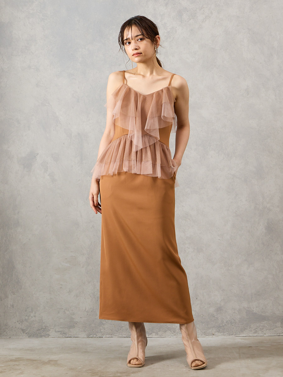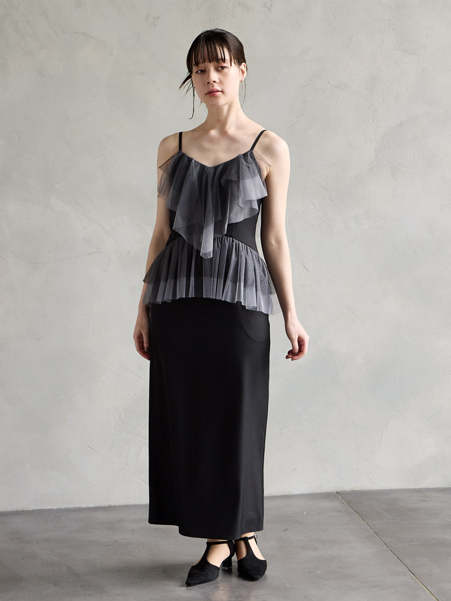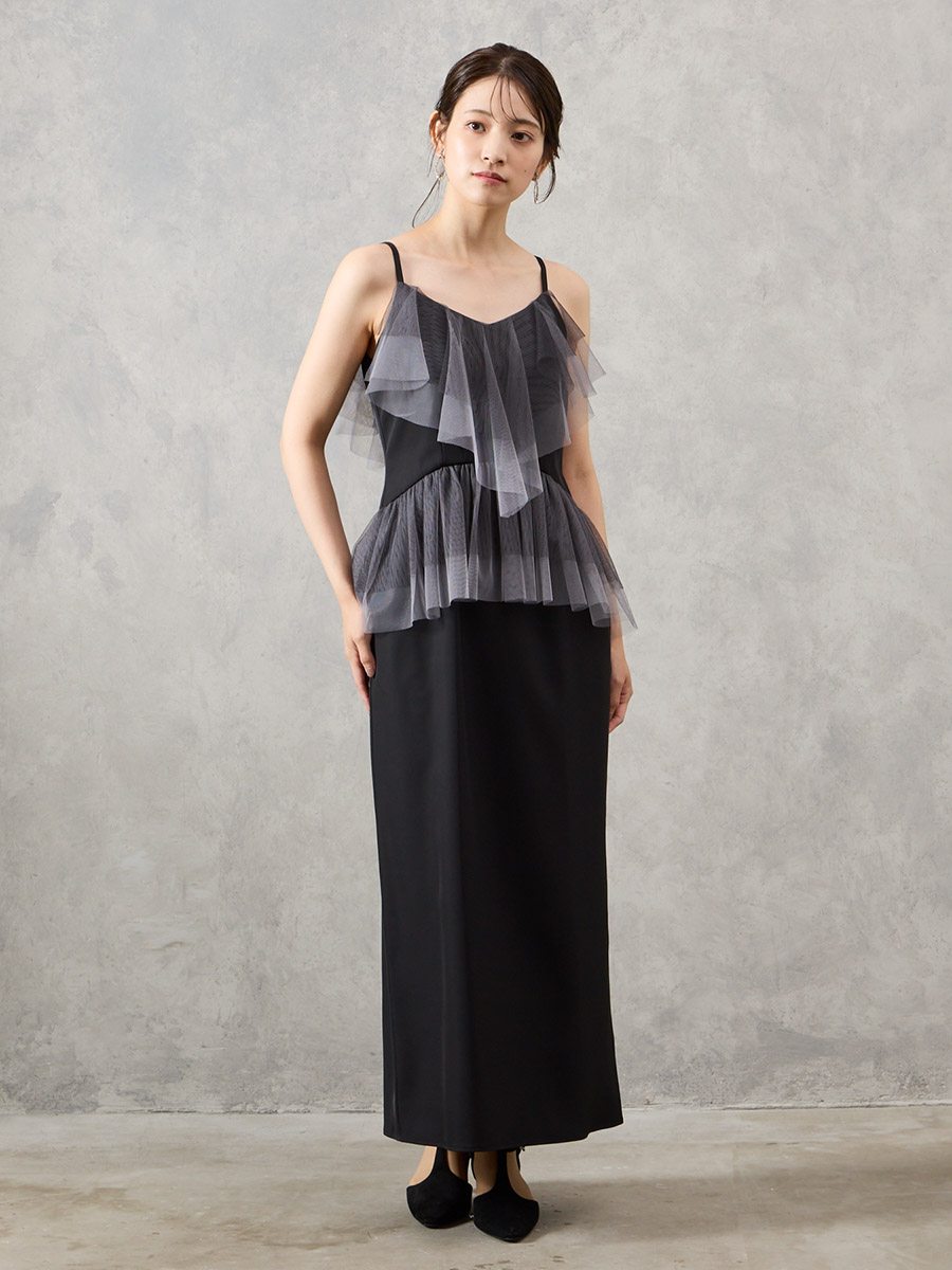 【WEB限定】チュールブラウス×配色フリルIラインドレス2点セット