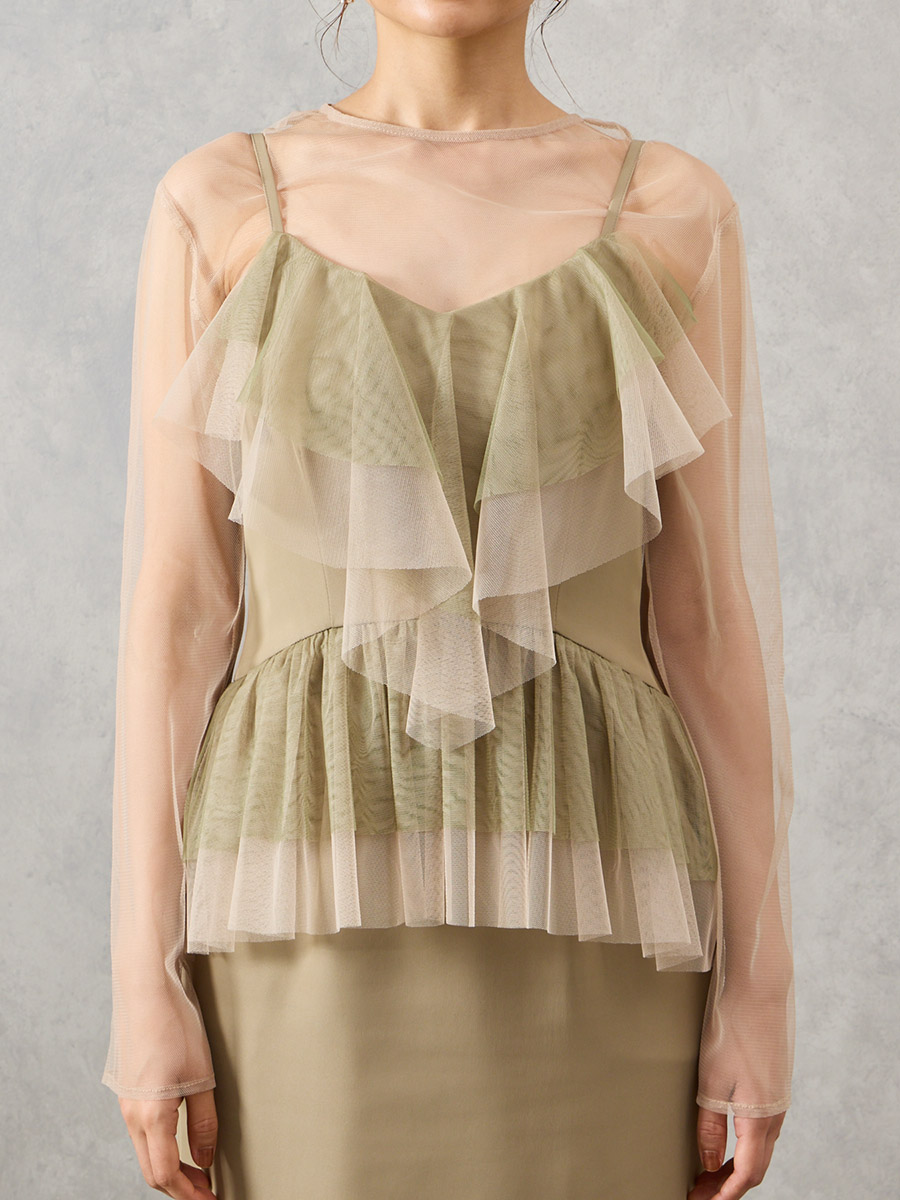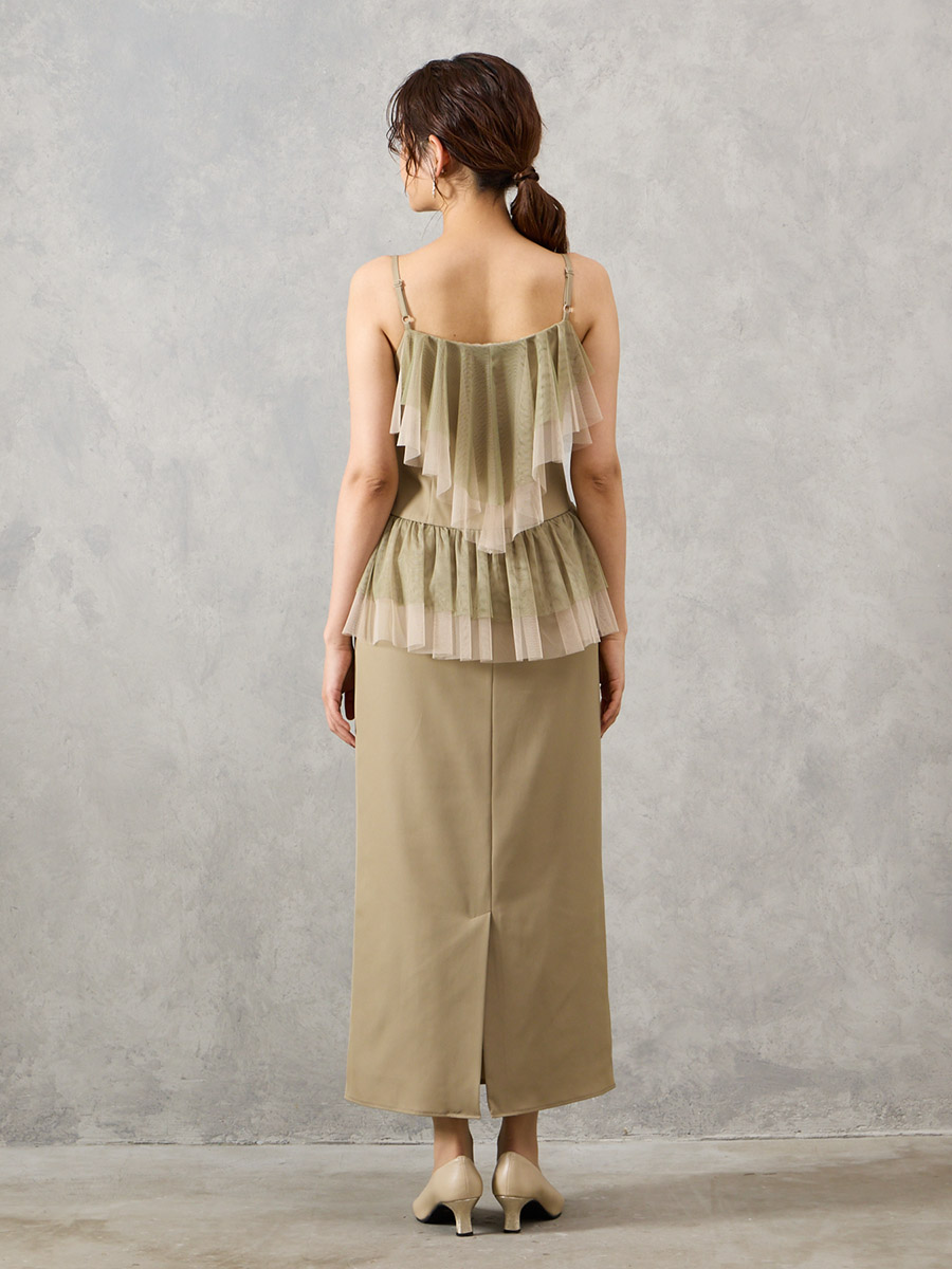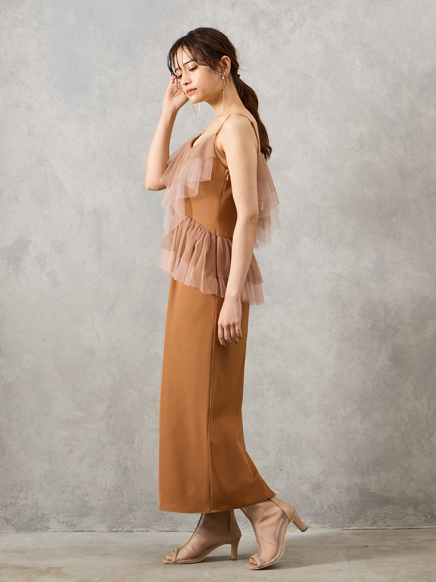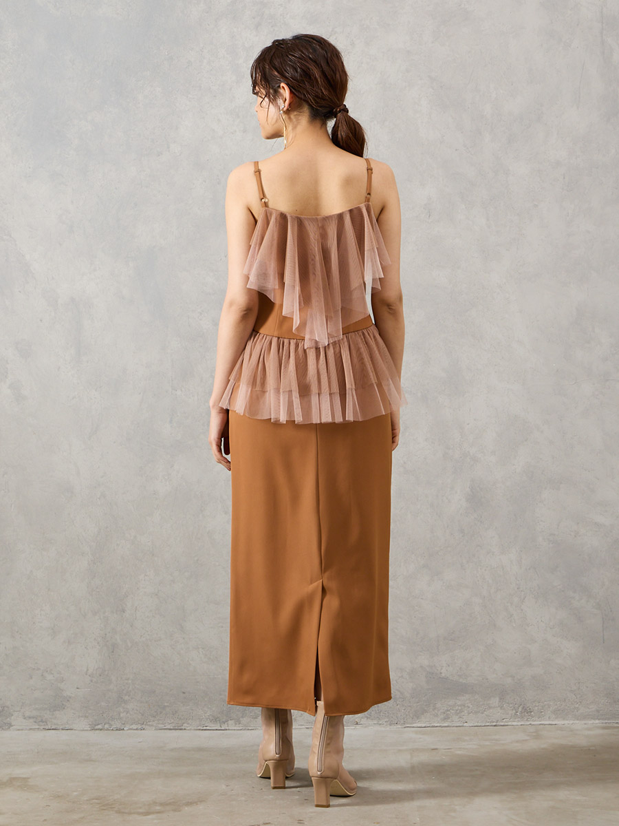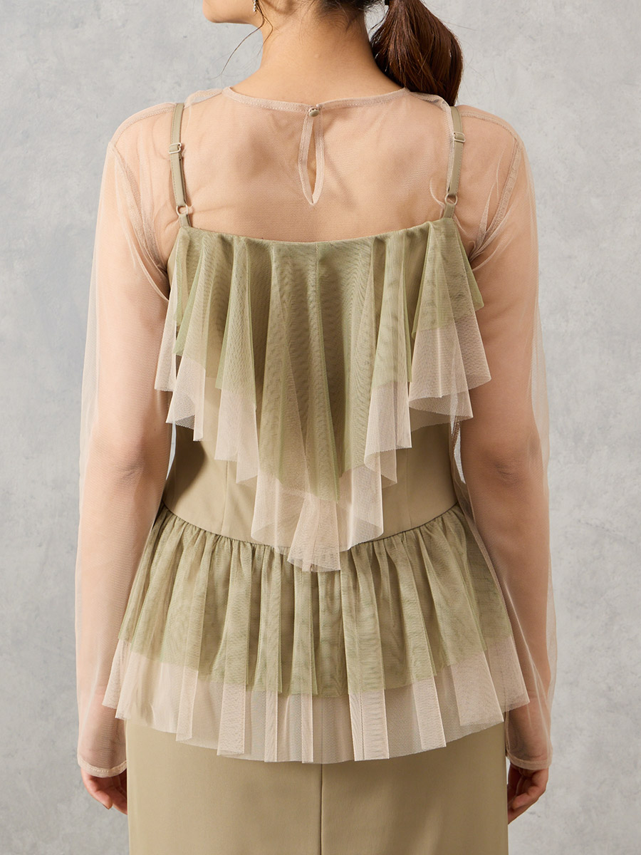 【WEB限定】チュールブラウス×配色フリルIラインドレス2点セット