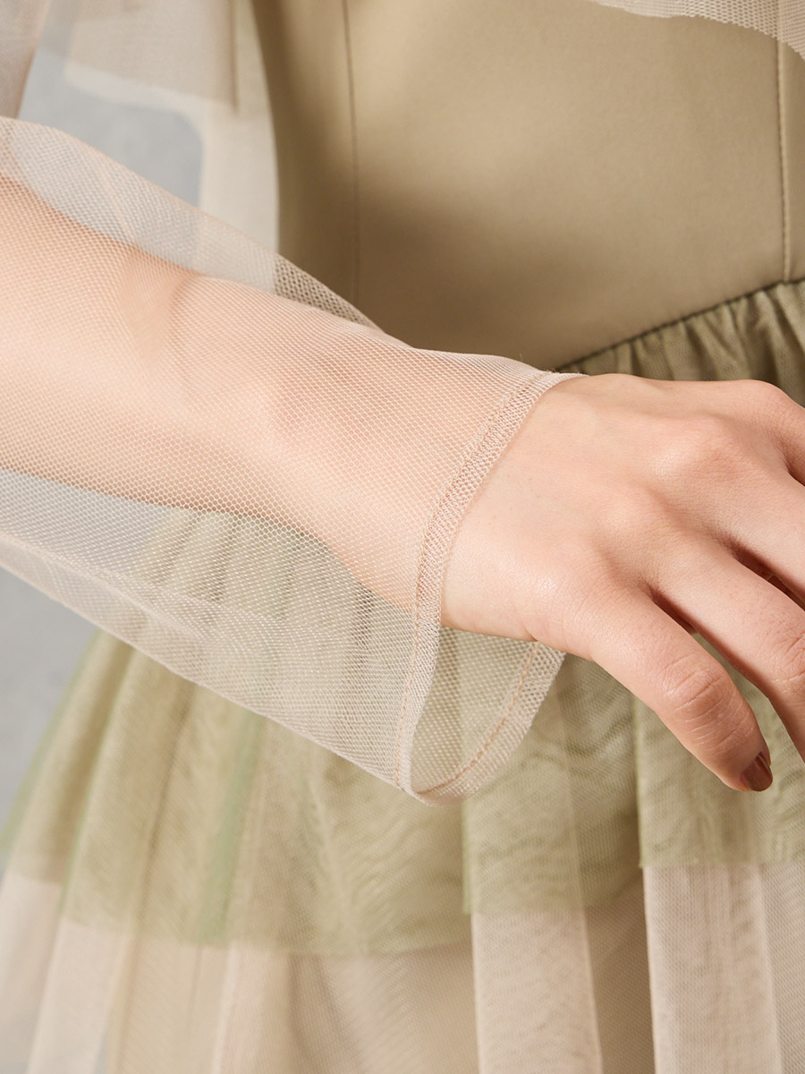 チュールブラウスはドレスに使用したチュールと同じチュールを使用しています。