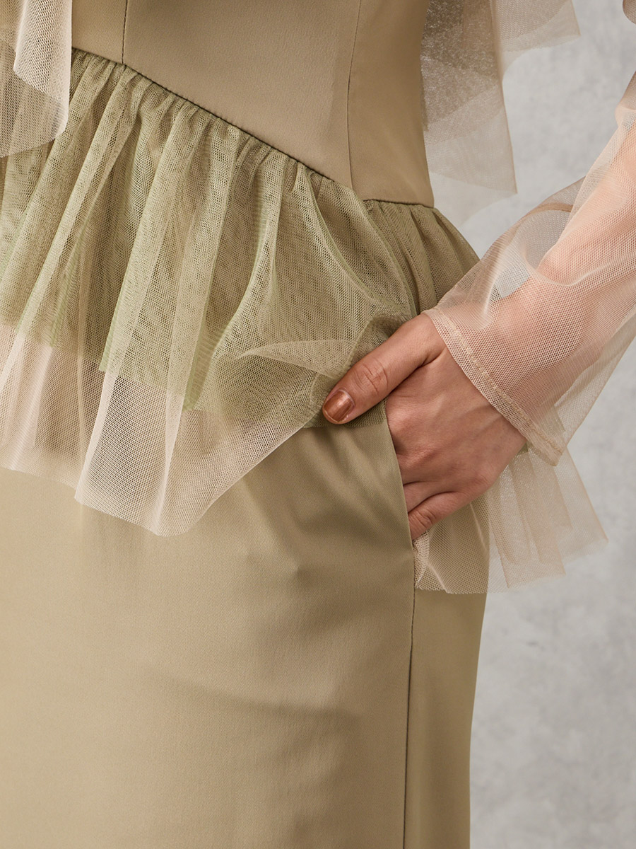 微配色になるようチュールを重ねて立体感を出したフリルデザインがトレンド感をプラスしてくれます。