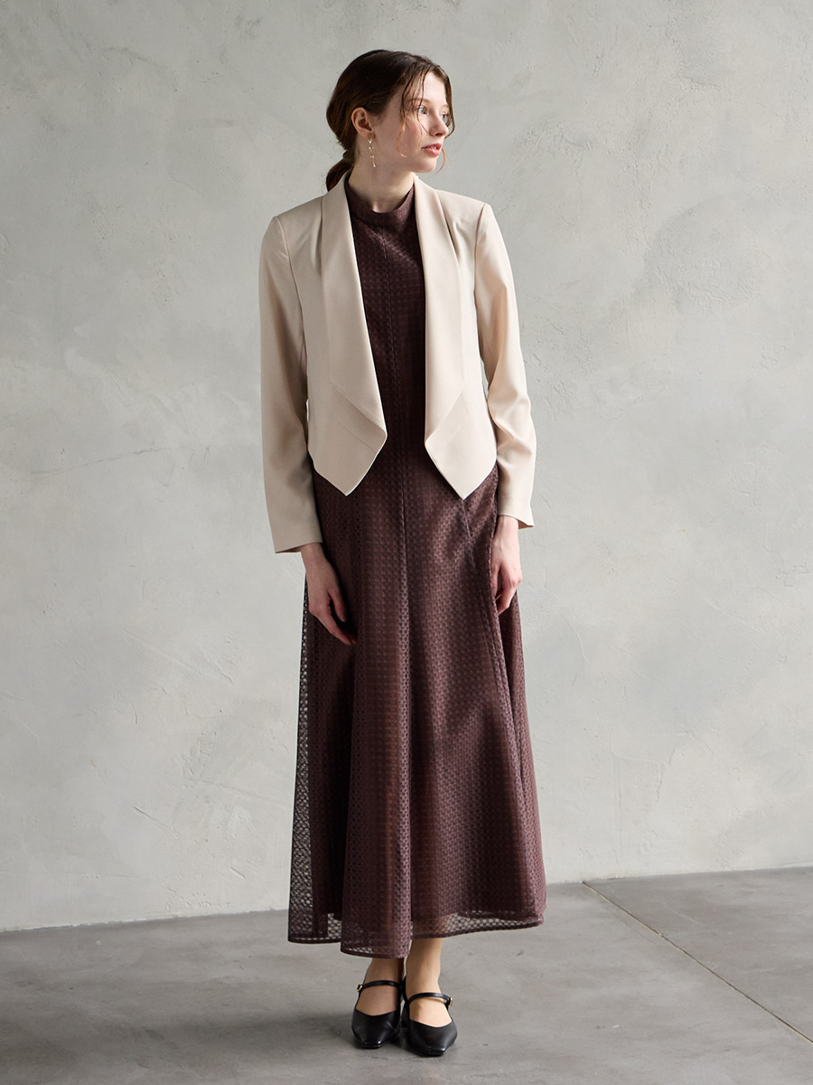 細身過ぎないソフトAラインのシルエットでウエストには切り替えを入れていないのでスラリと見せてくれます。