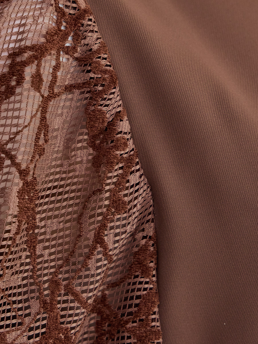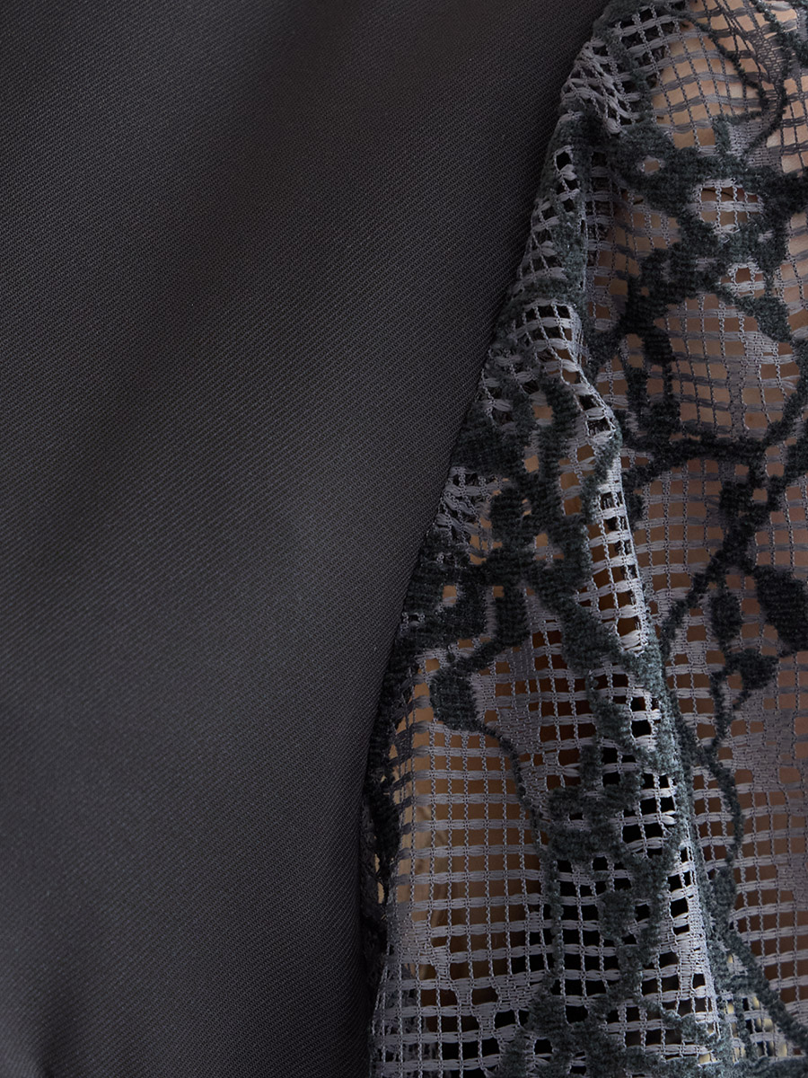 ・袖には幾何柄が浮き上がるモール刺繍を使用