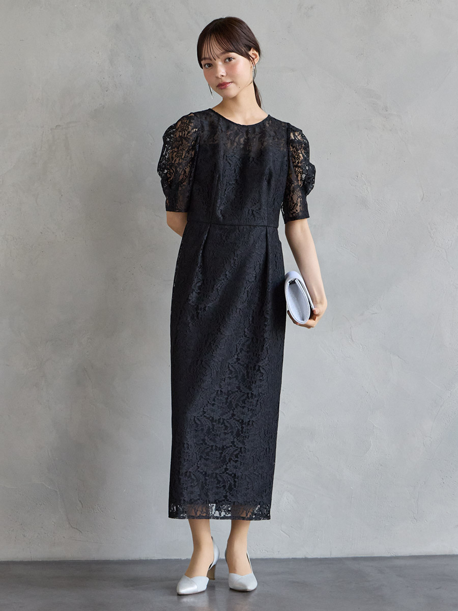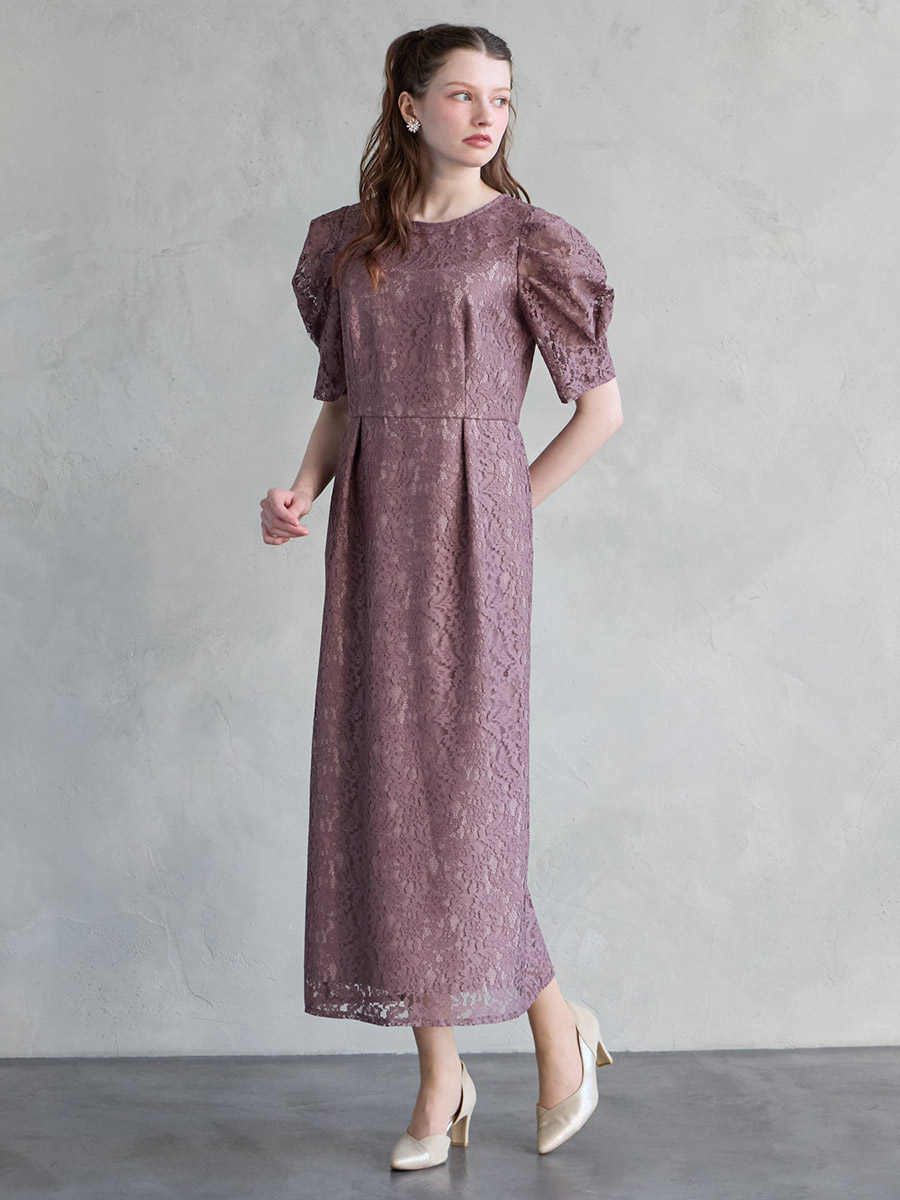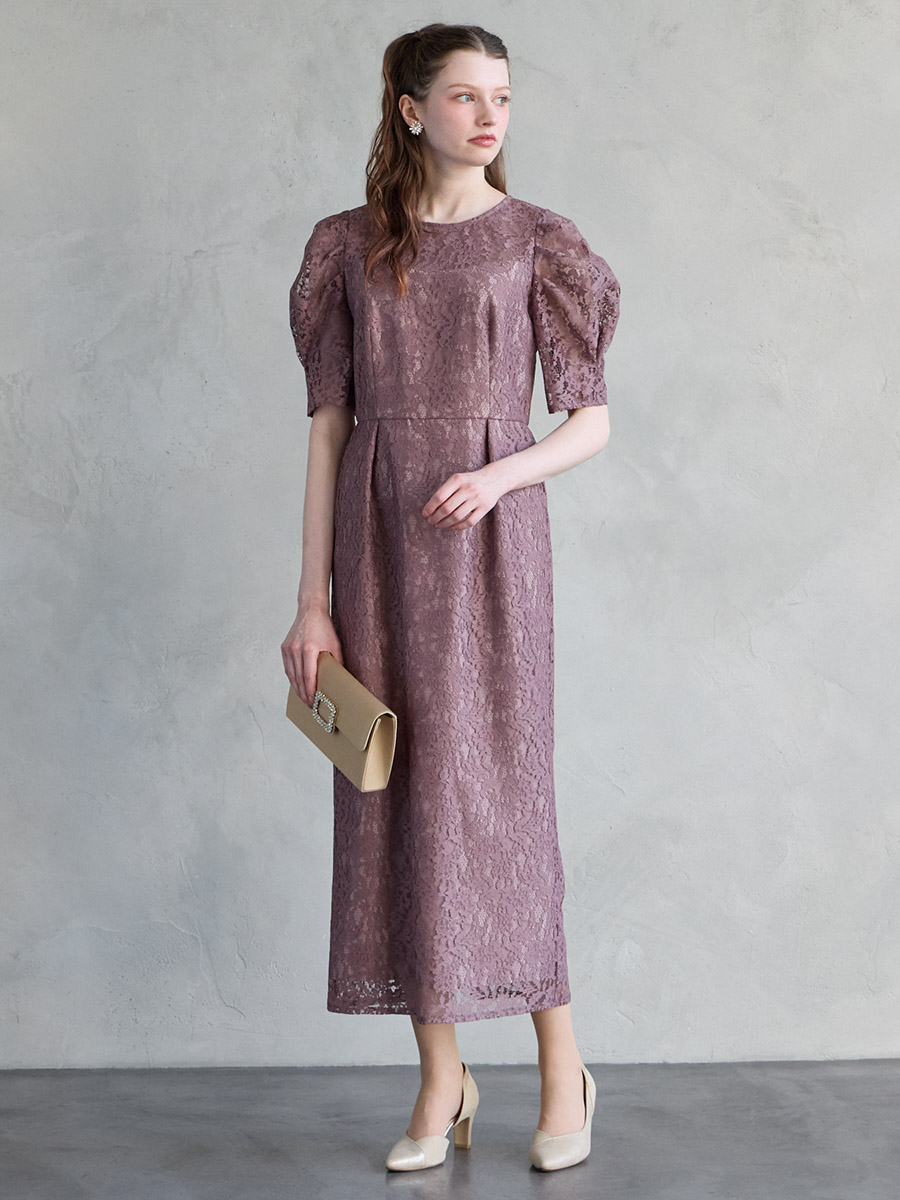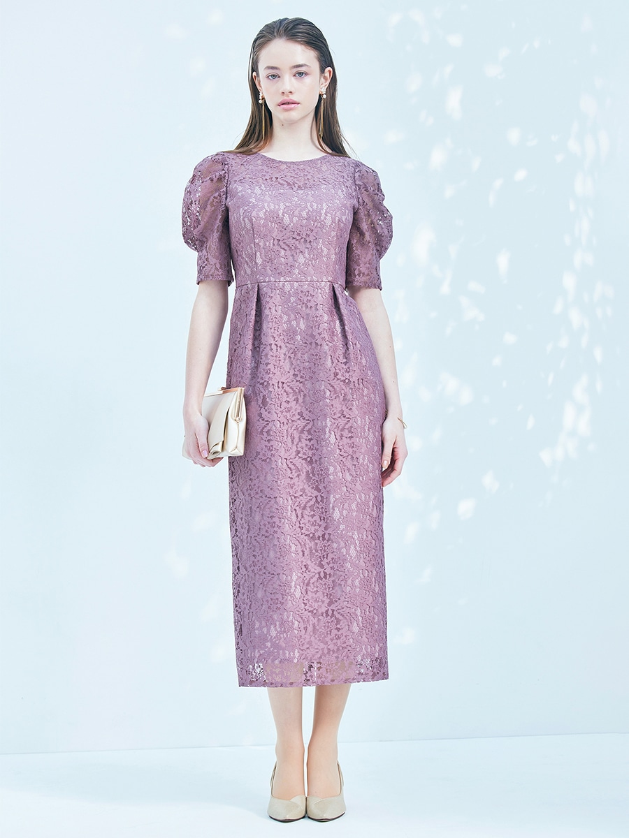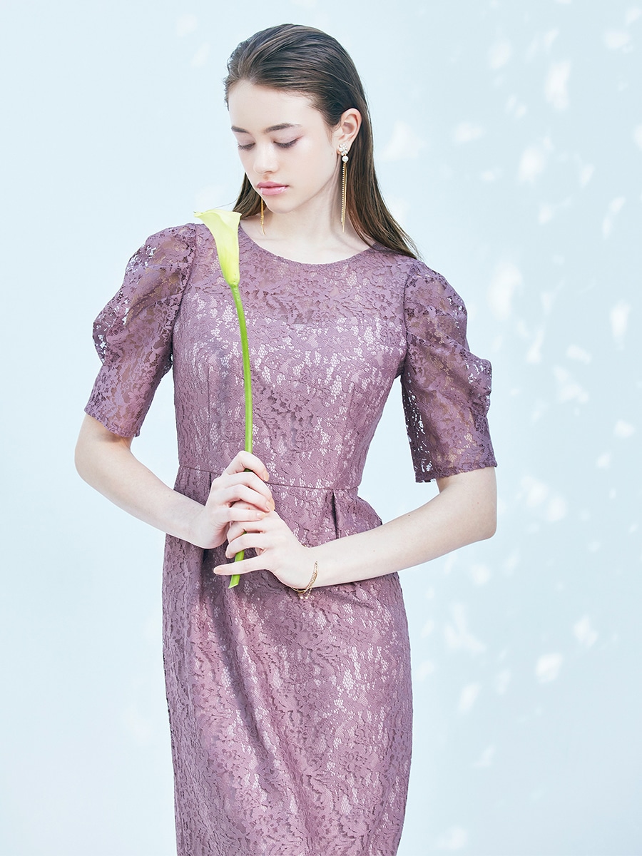 総レースでクラシカルな印象もありながら、ボリュームスリーブでトレンド感をプラスした美スタイルを叶えるレディドレス。
