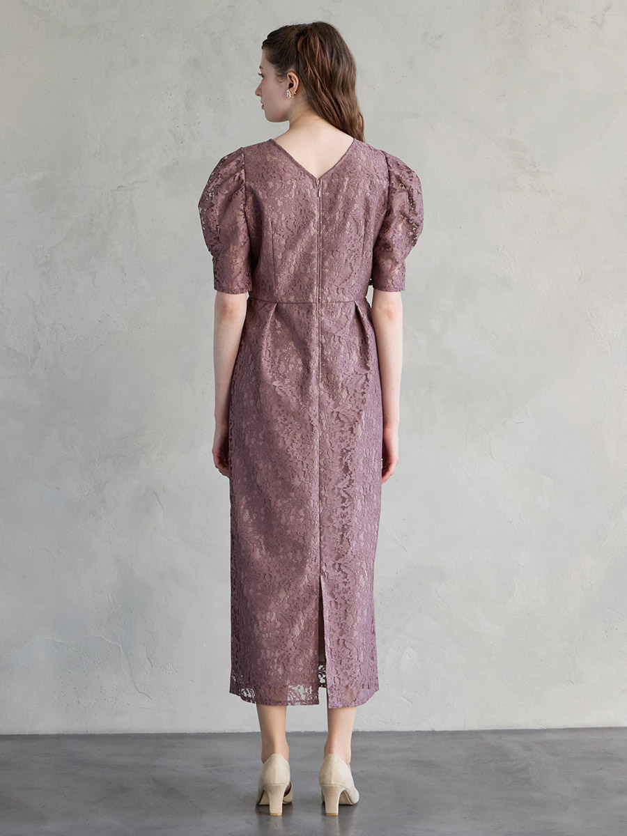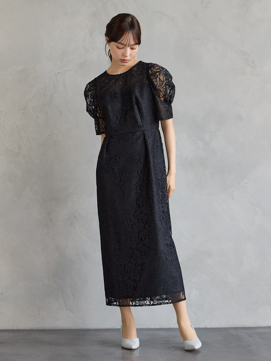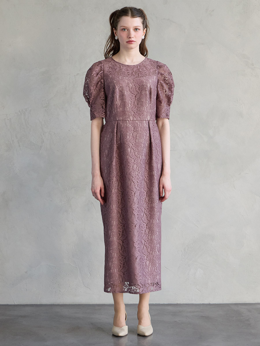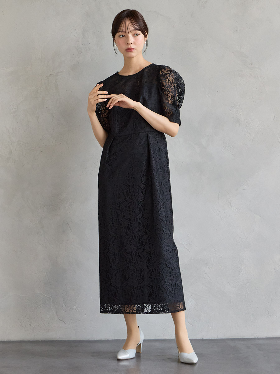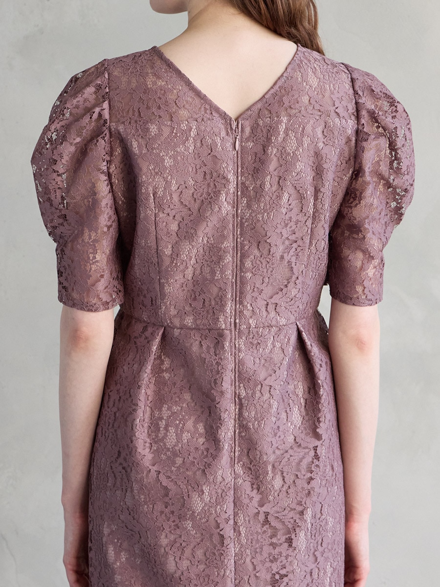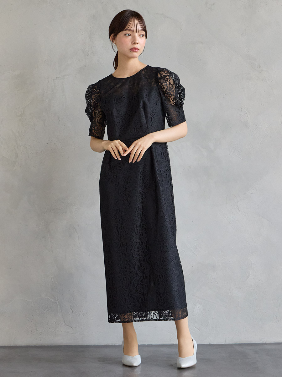 総レースでクラシカルな印象もありながら、ボリュームスリーブでトレンド感をプラスした美スタイルを叶えるレディドレス。