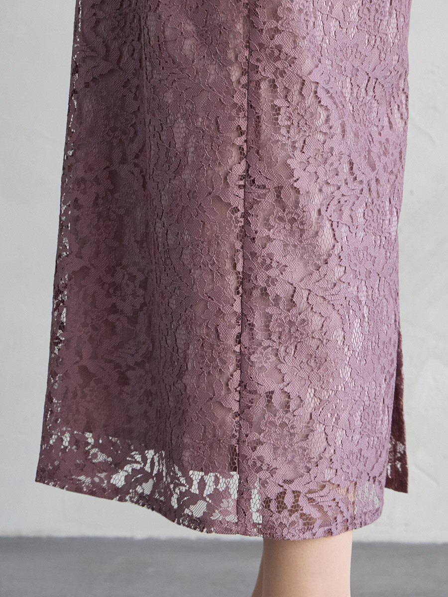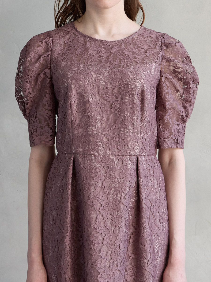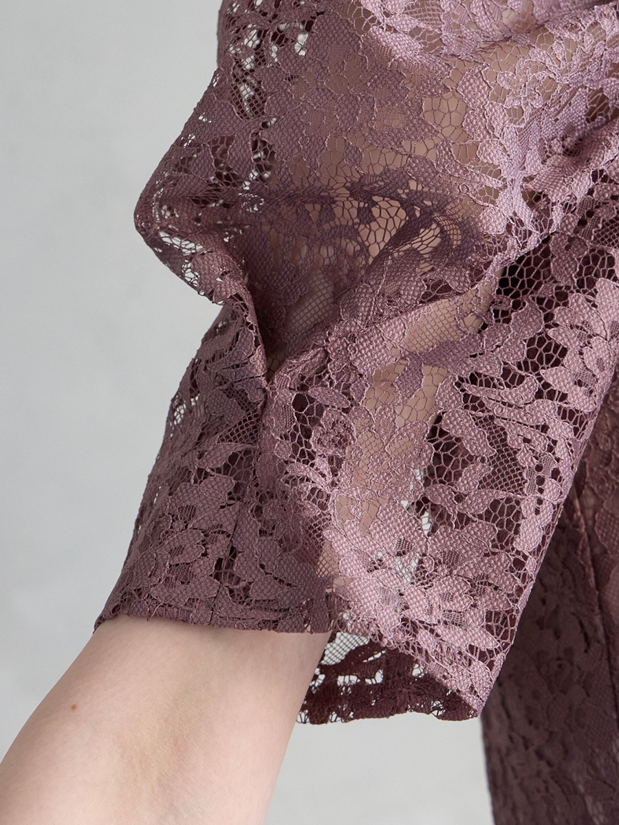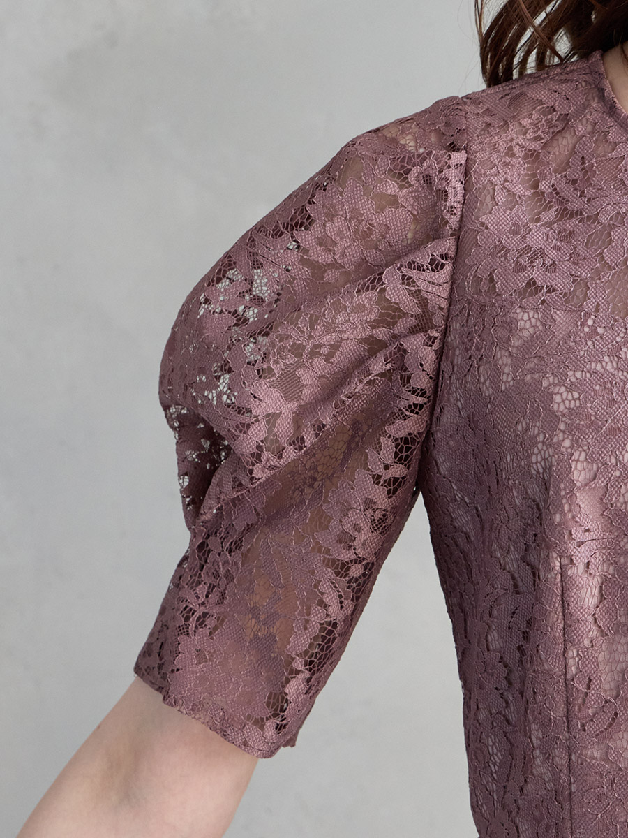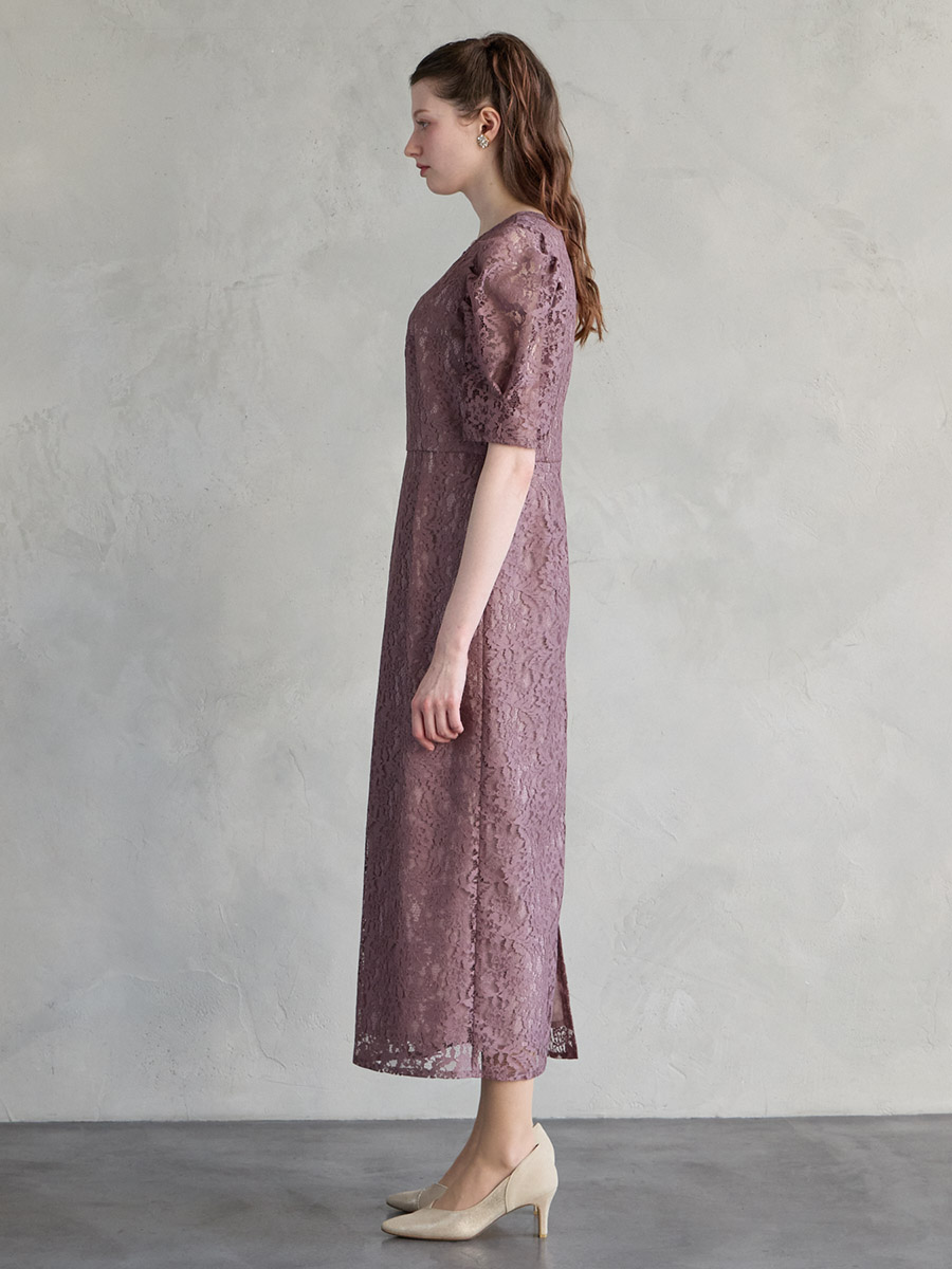 総レースでクラシカルな印象もありながら、ボリュームスリーブでトレンド感をプラスした美スタイルを叶えるレディドレス。
