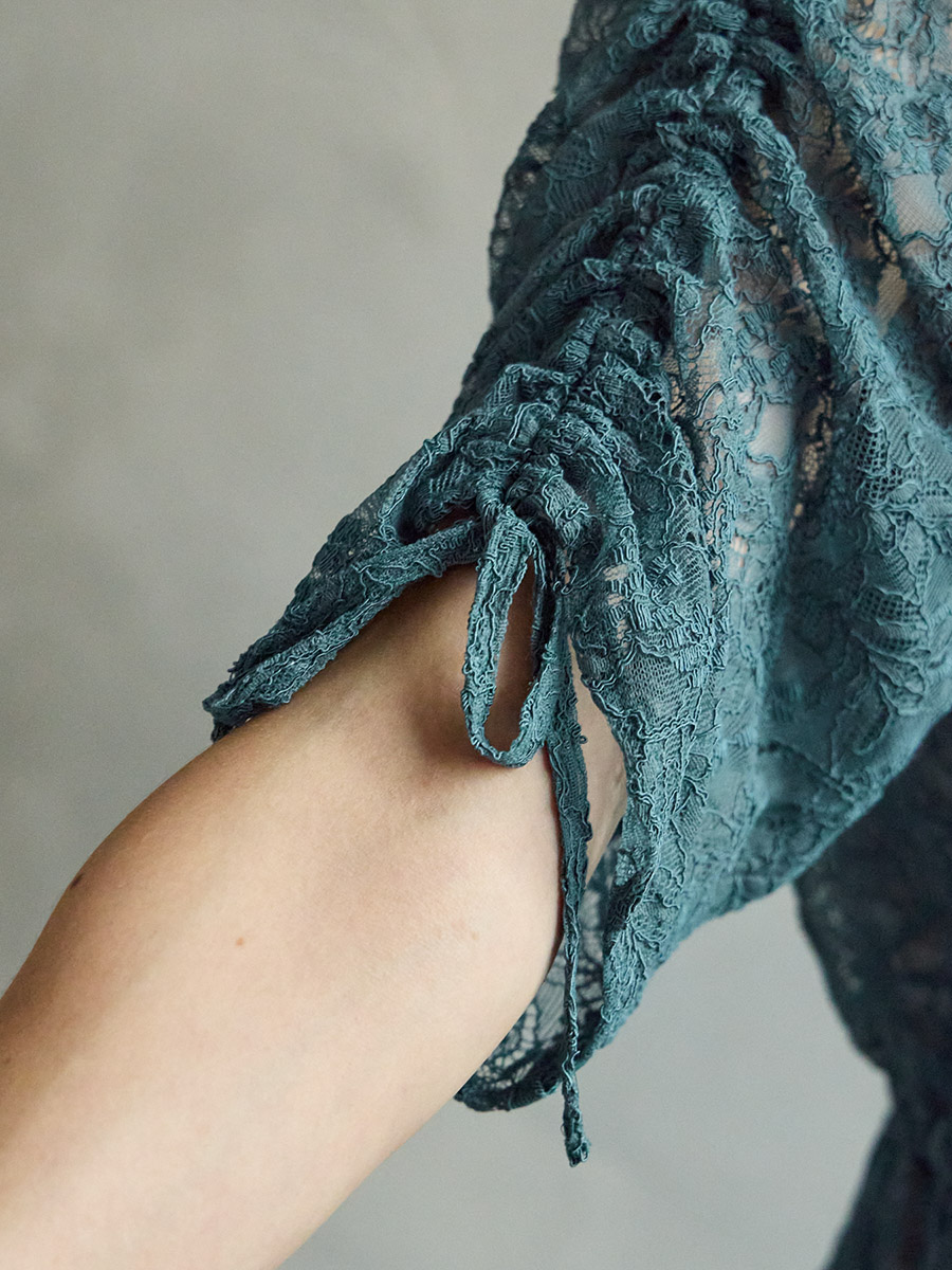 袖はドロスト仕様で、クシュっと寄せて華やかなギャザースリーブにも、伸ばして落ち着いた着こなしにもアレンジ可能です。