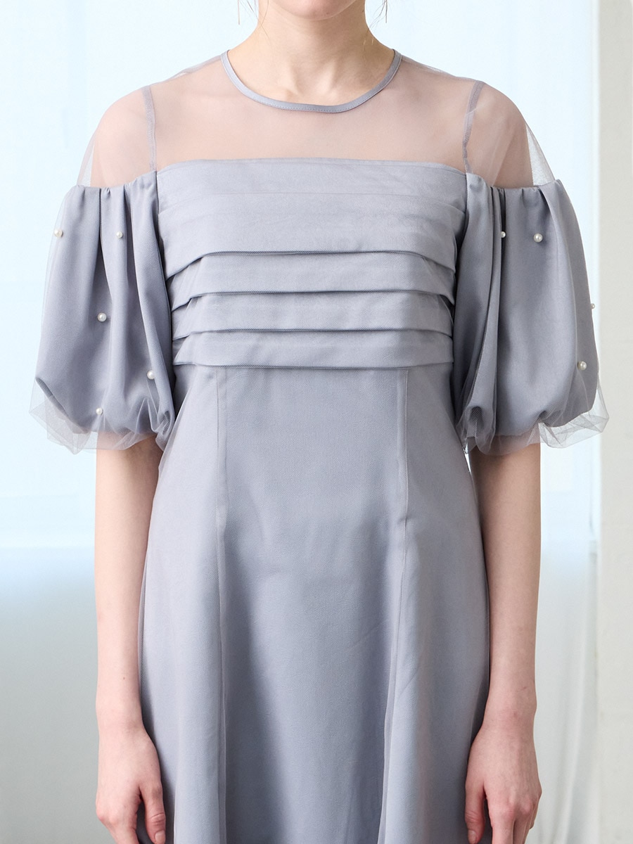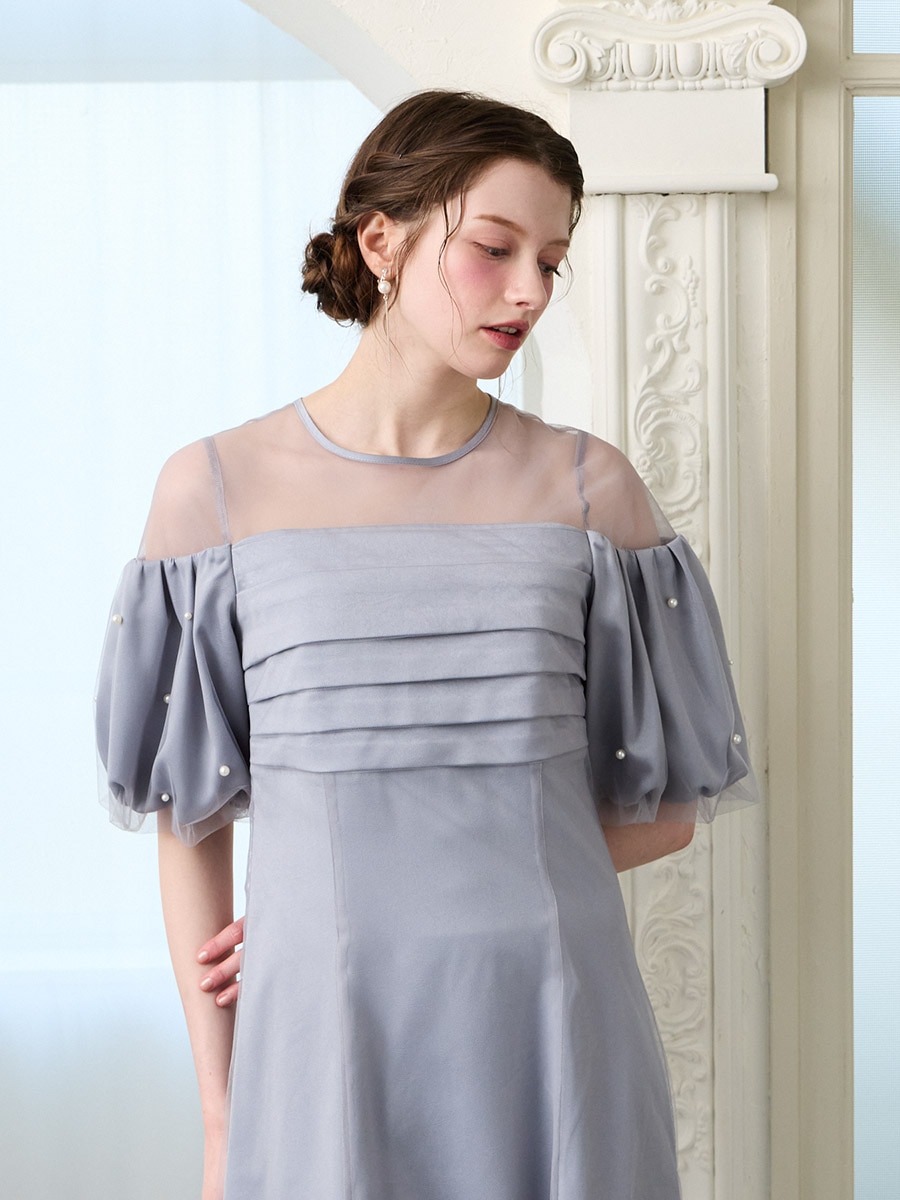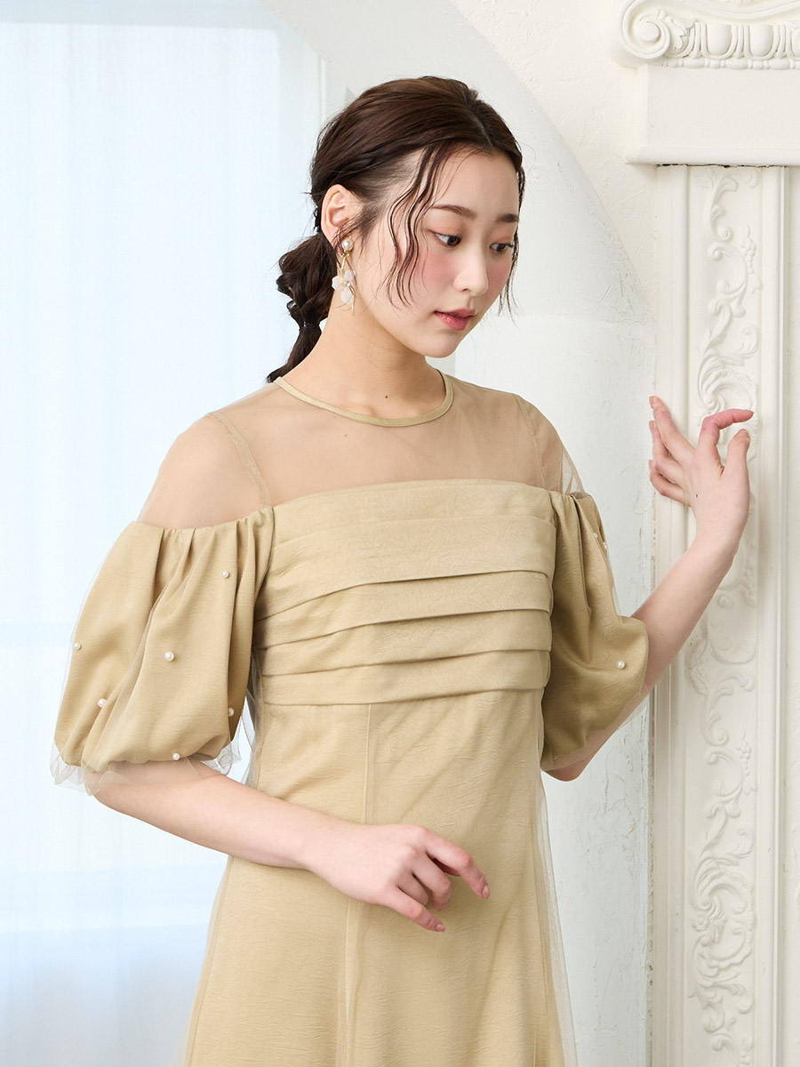 ・ふんわり膨らむパフスリーブに散りばめたパールが、動くたび印象的な輝きに