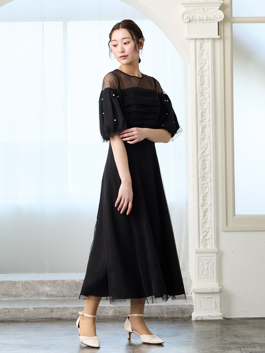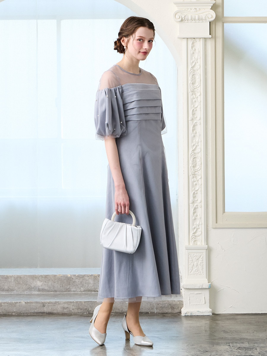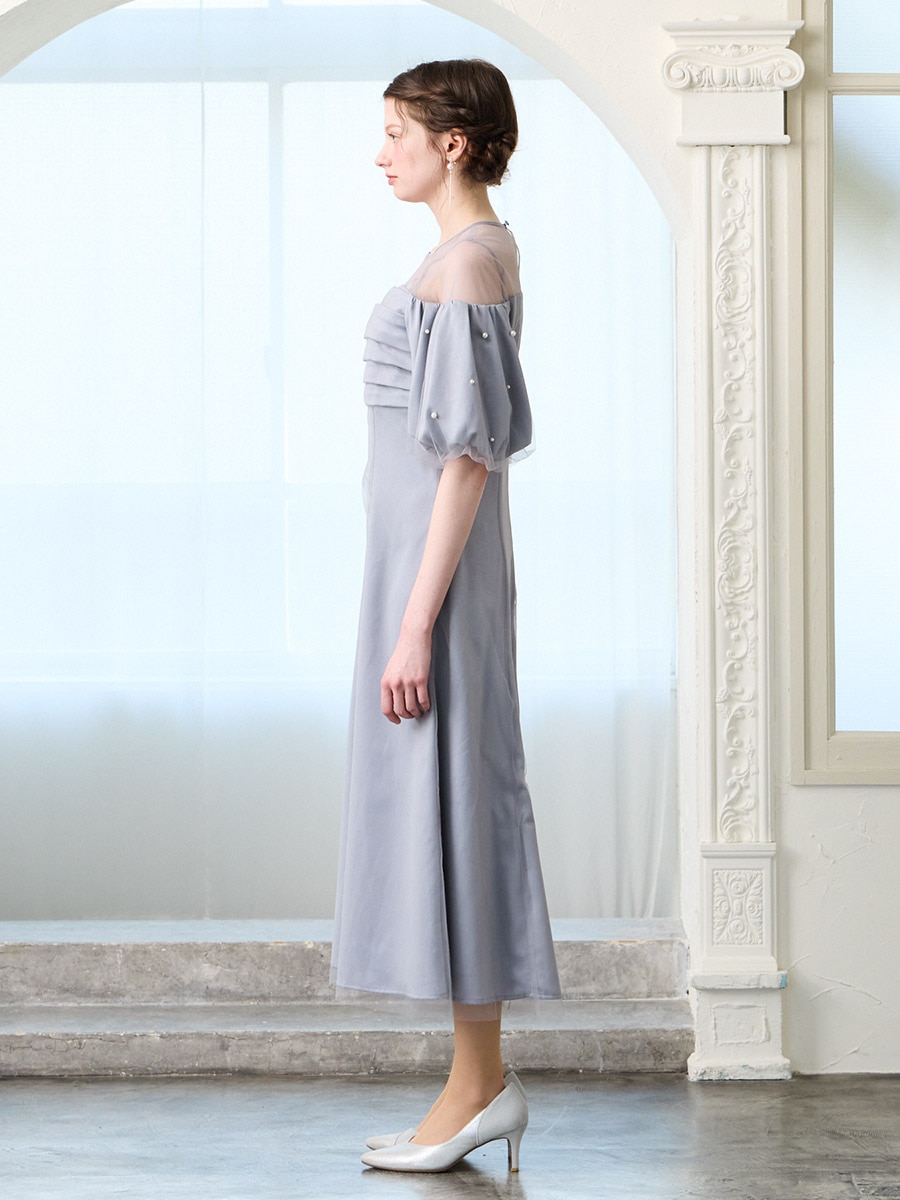 ・ふんわり膨らむパフスリーブに散りばめたパールが、動くたび印象的な輝きに