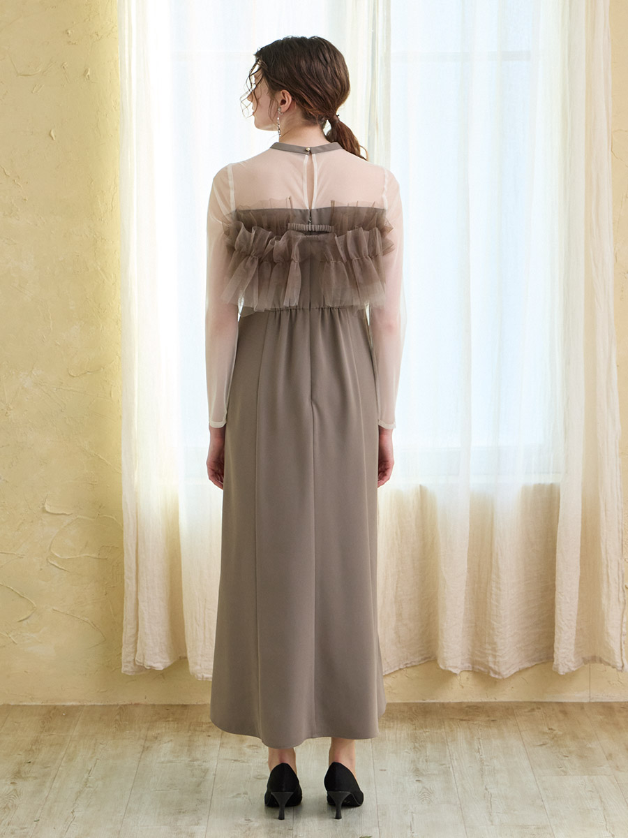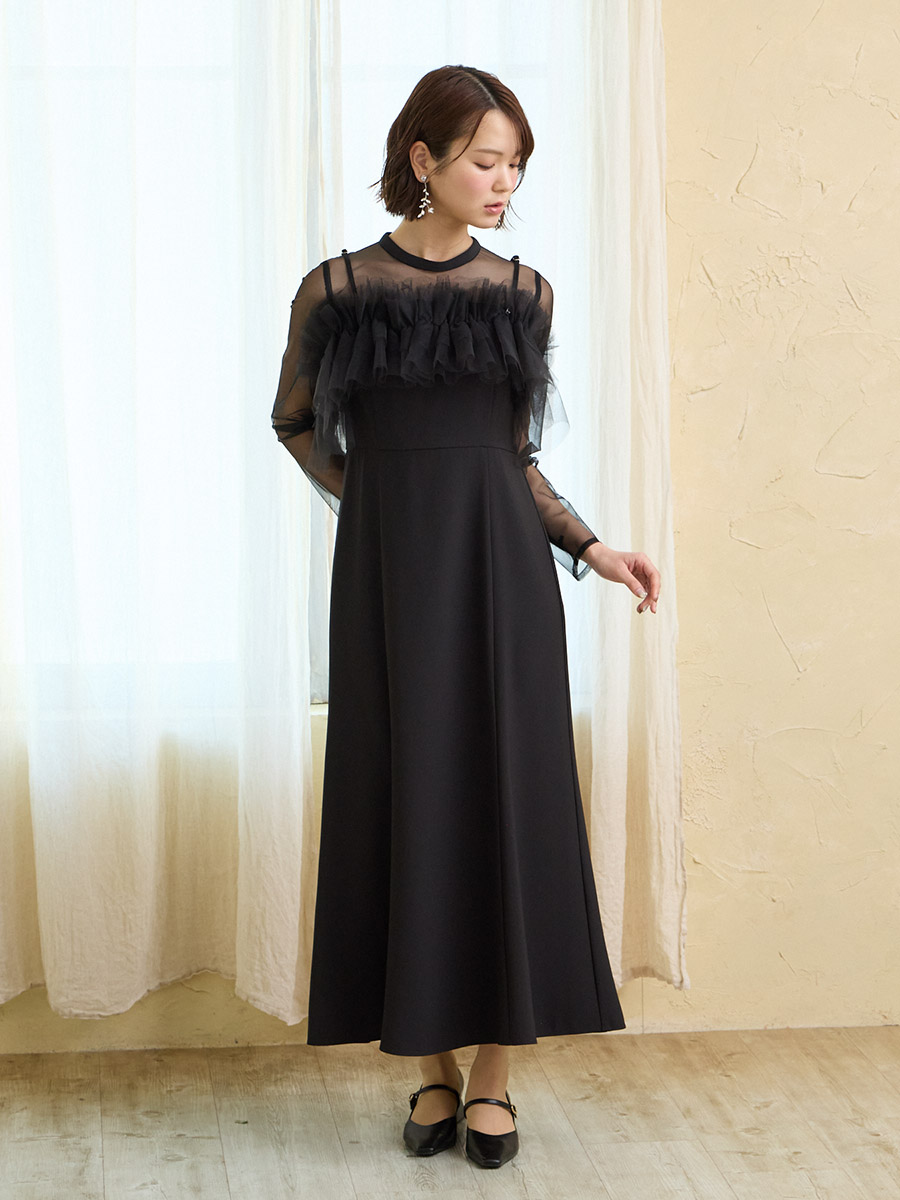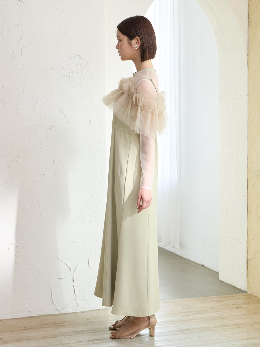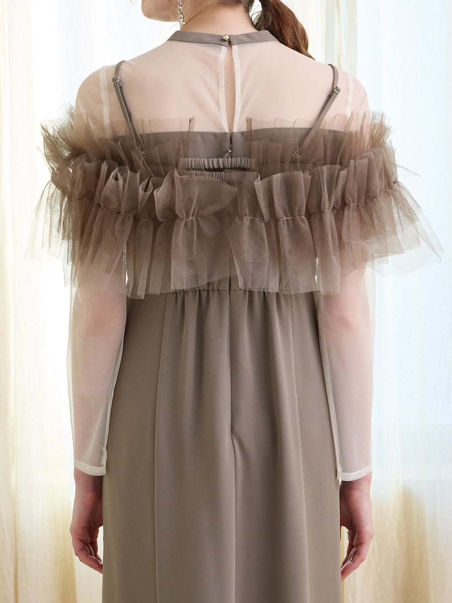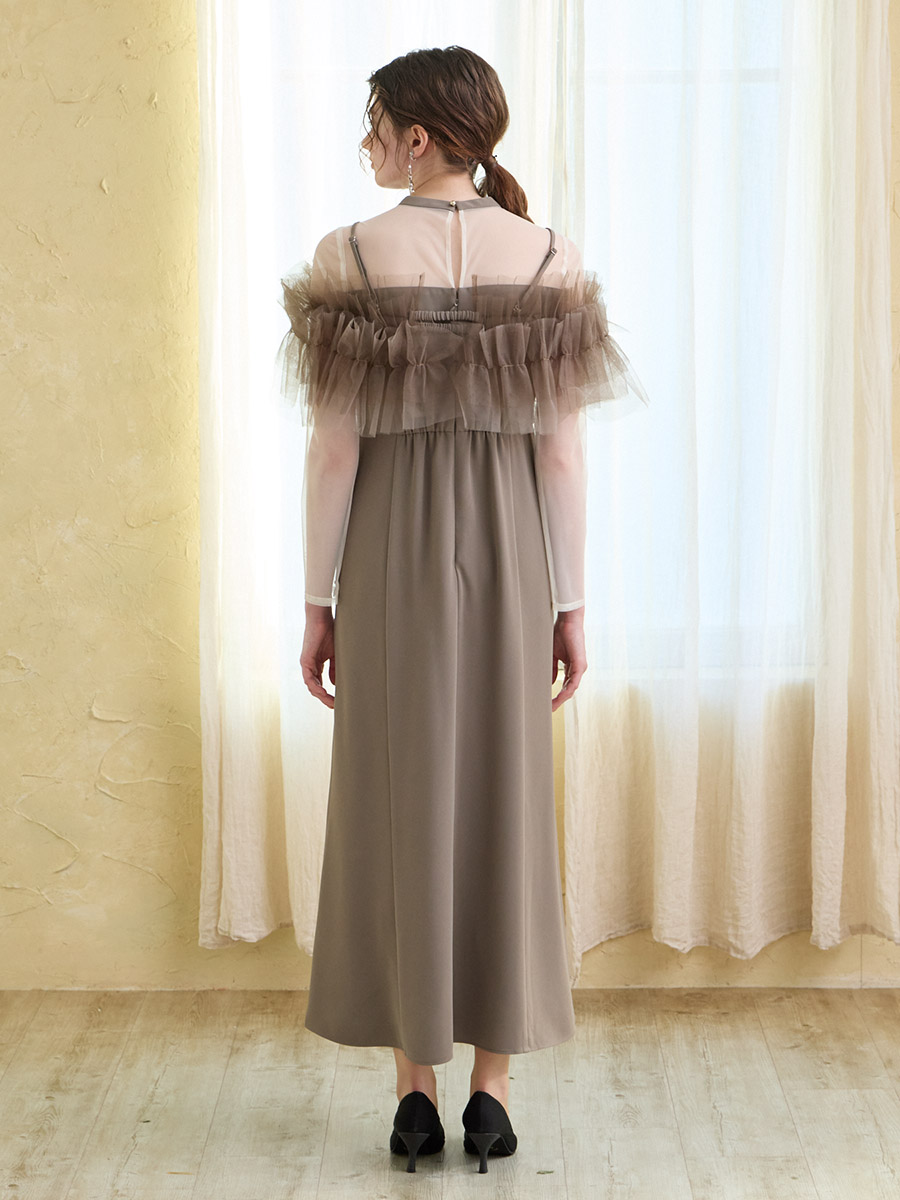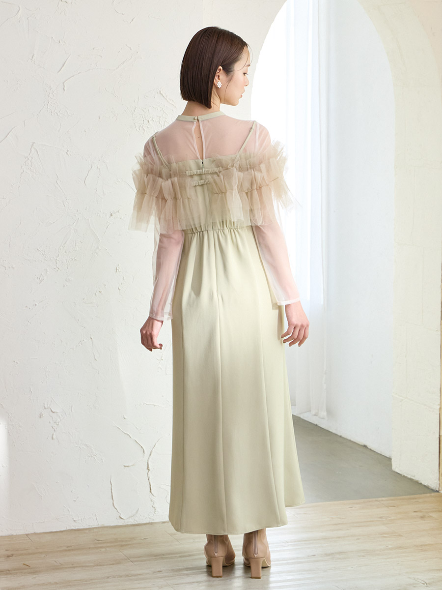 チュールフリルビスチェ×ロングスリーブワンピース2点セットドレス