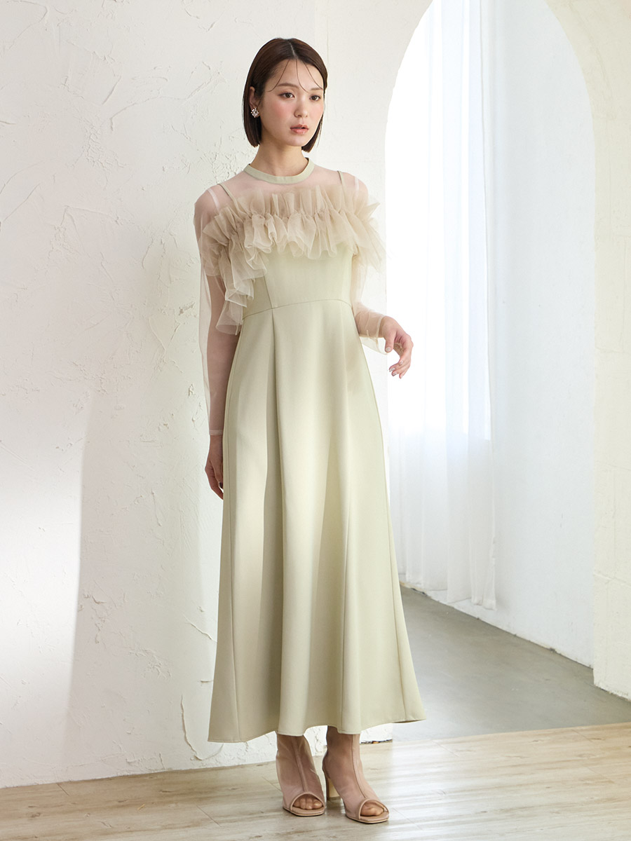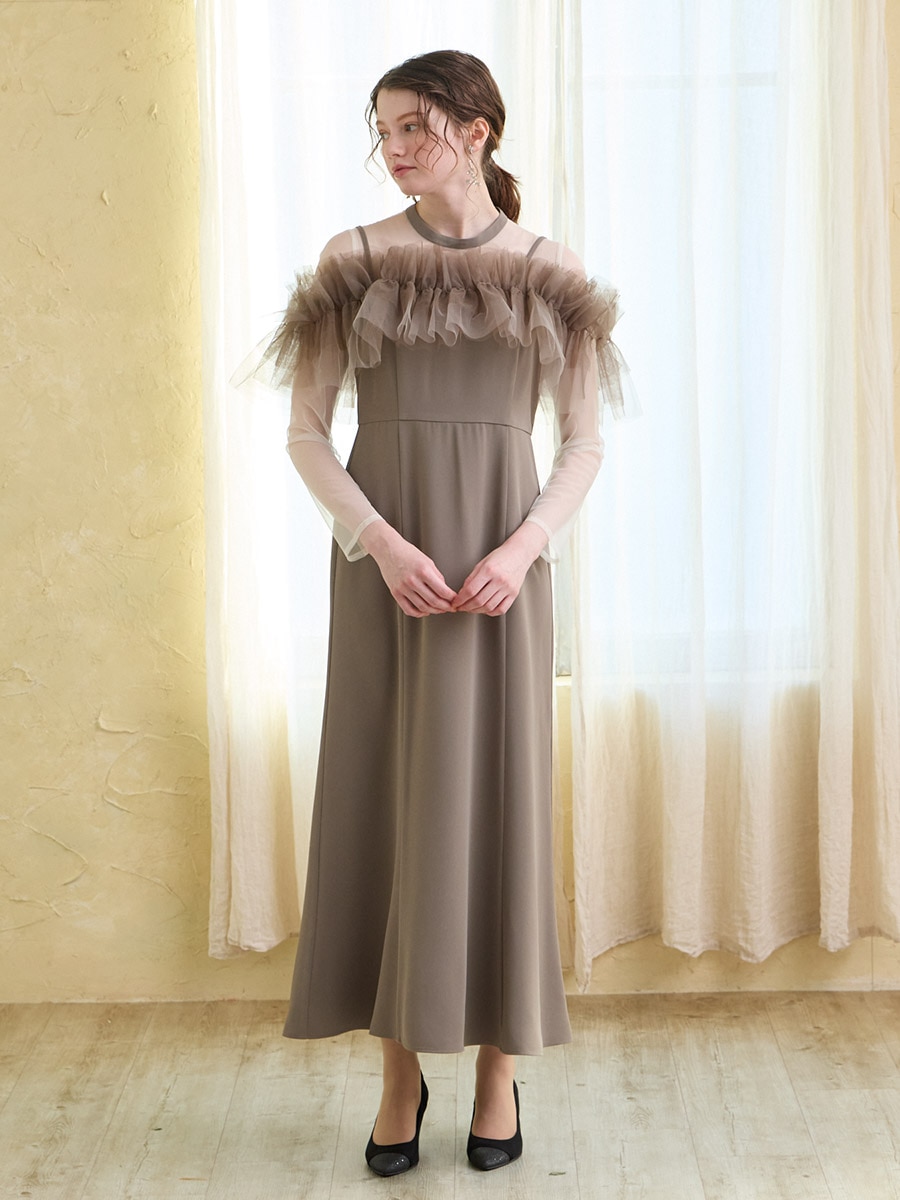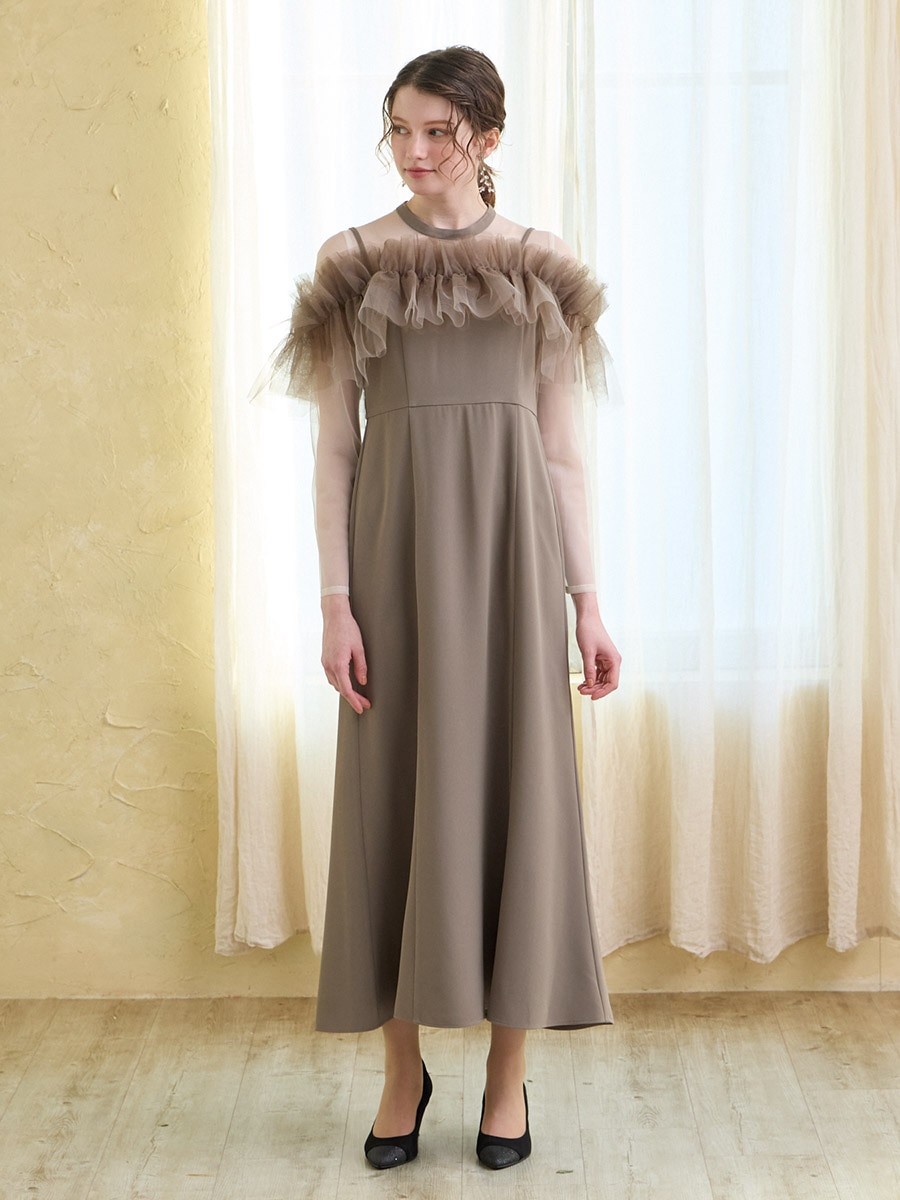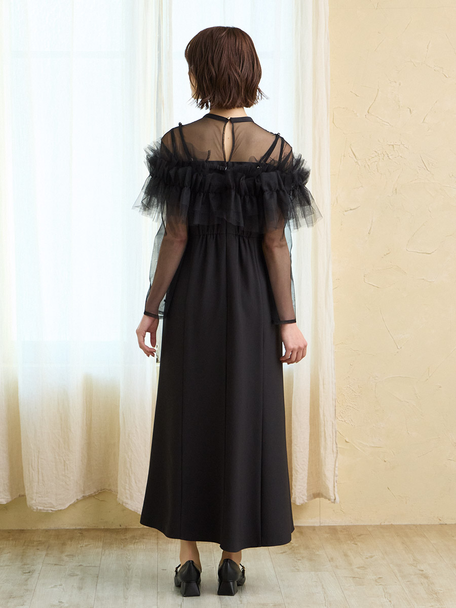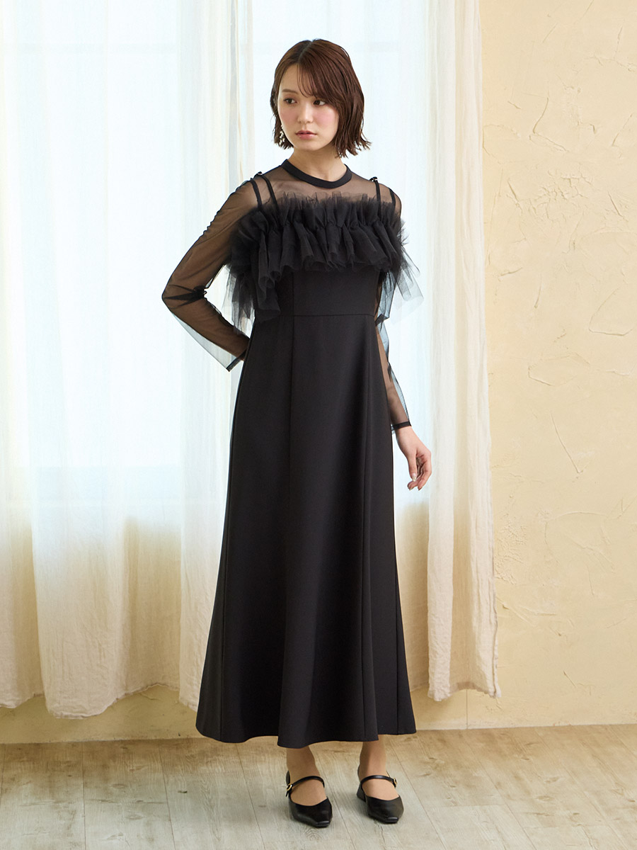 チュールフリルビスチェ×ロングスリーブワンピース2点セットドレス