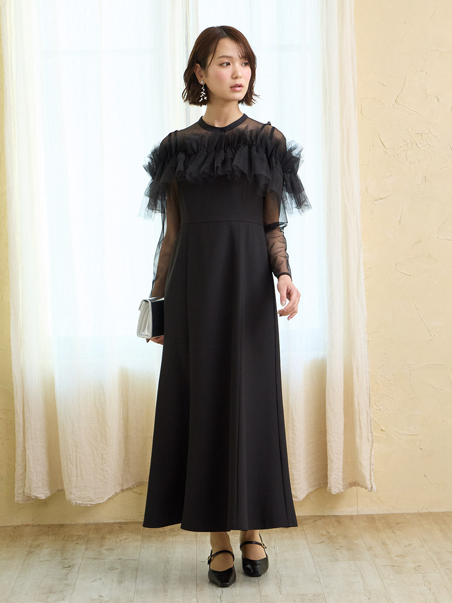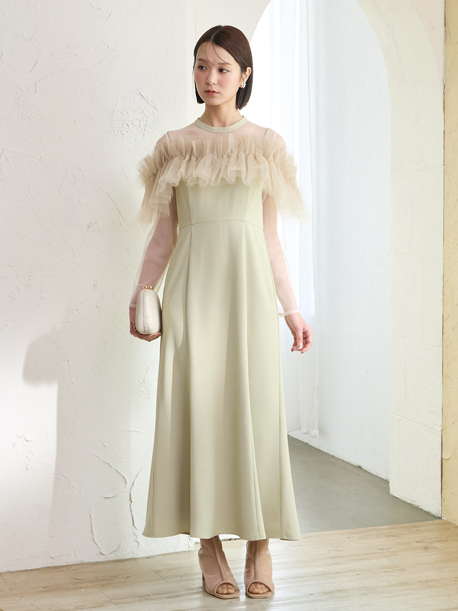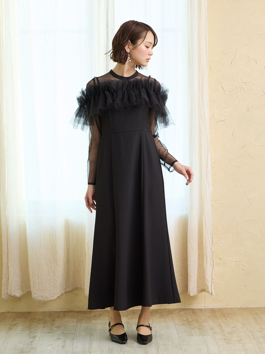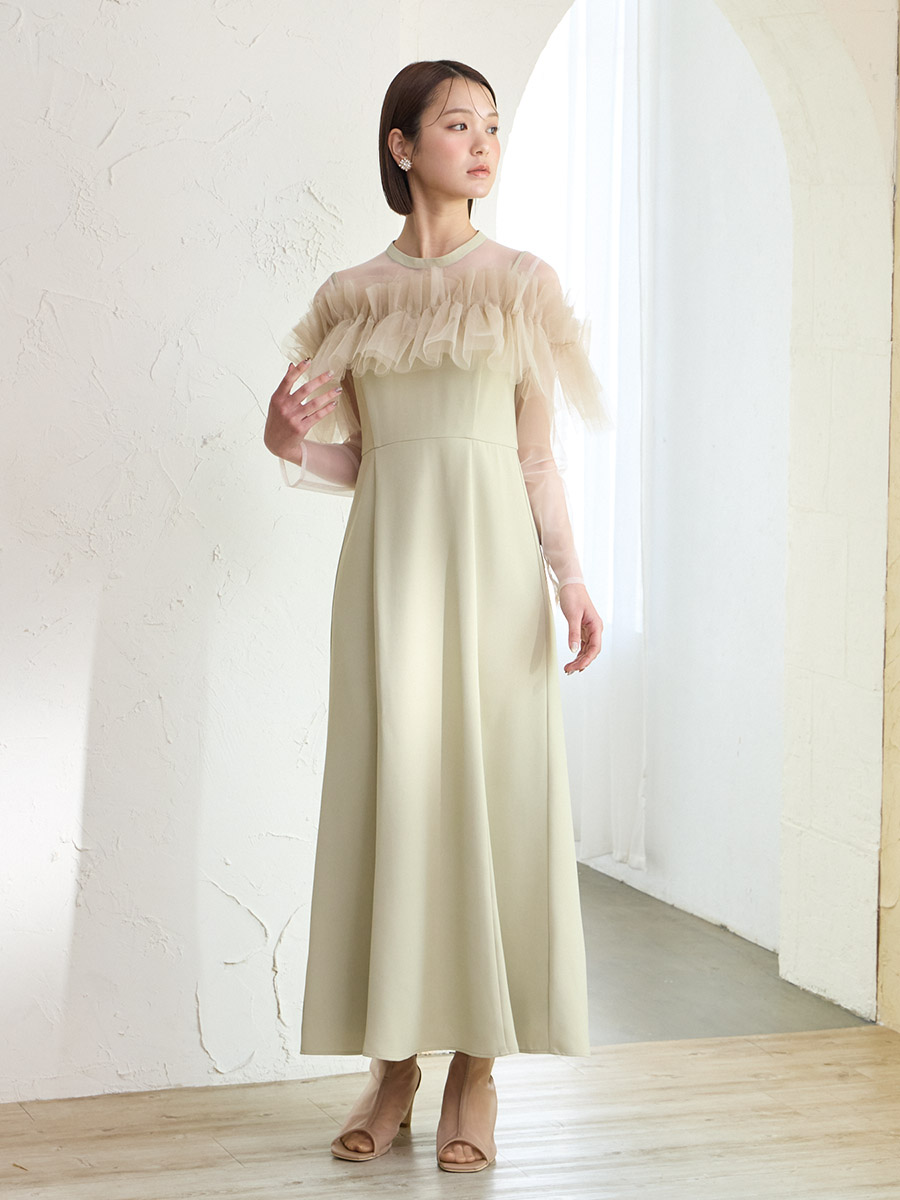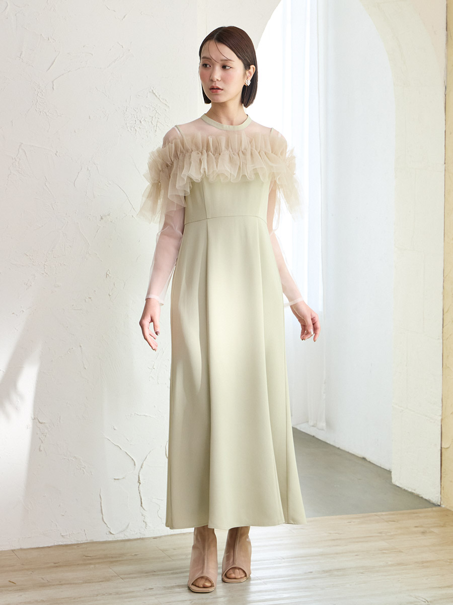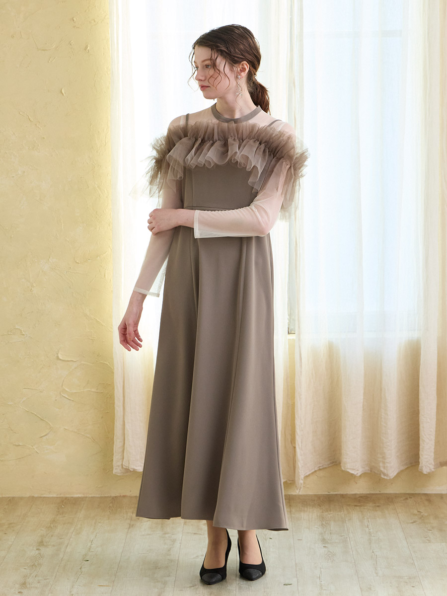 チュールフリルビスチェ×ロングスリーブワンピース2点セットドレス