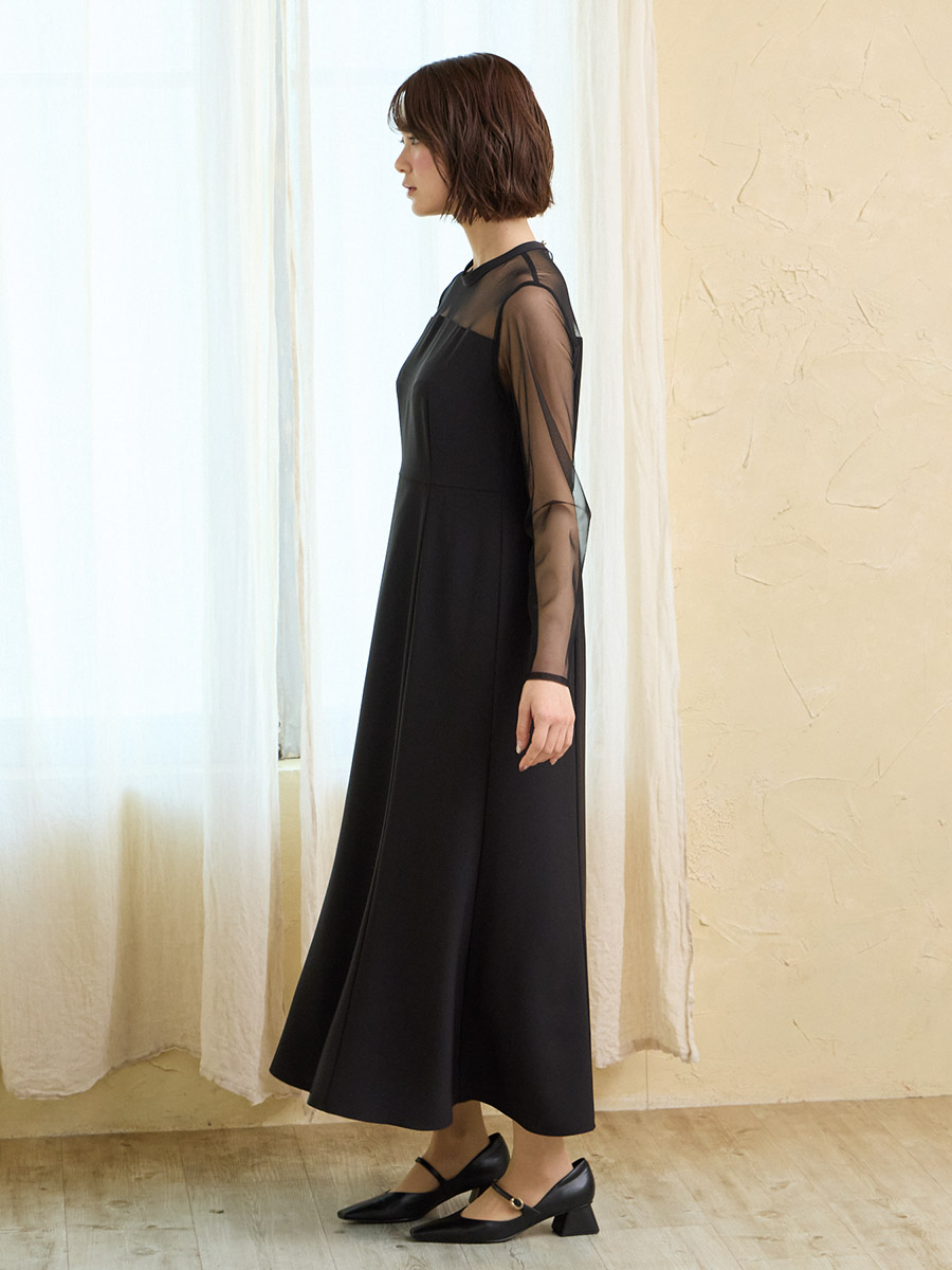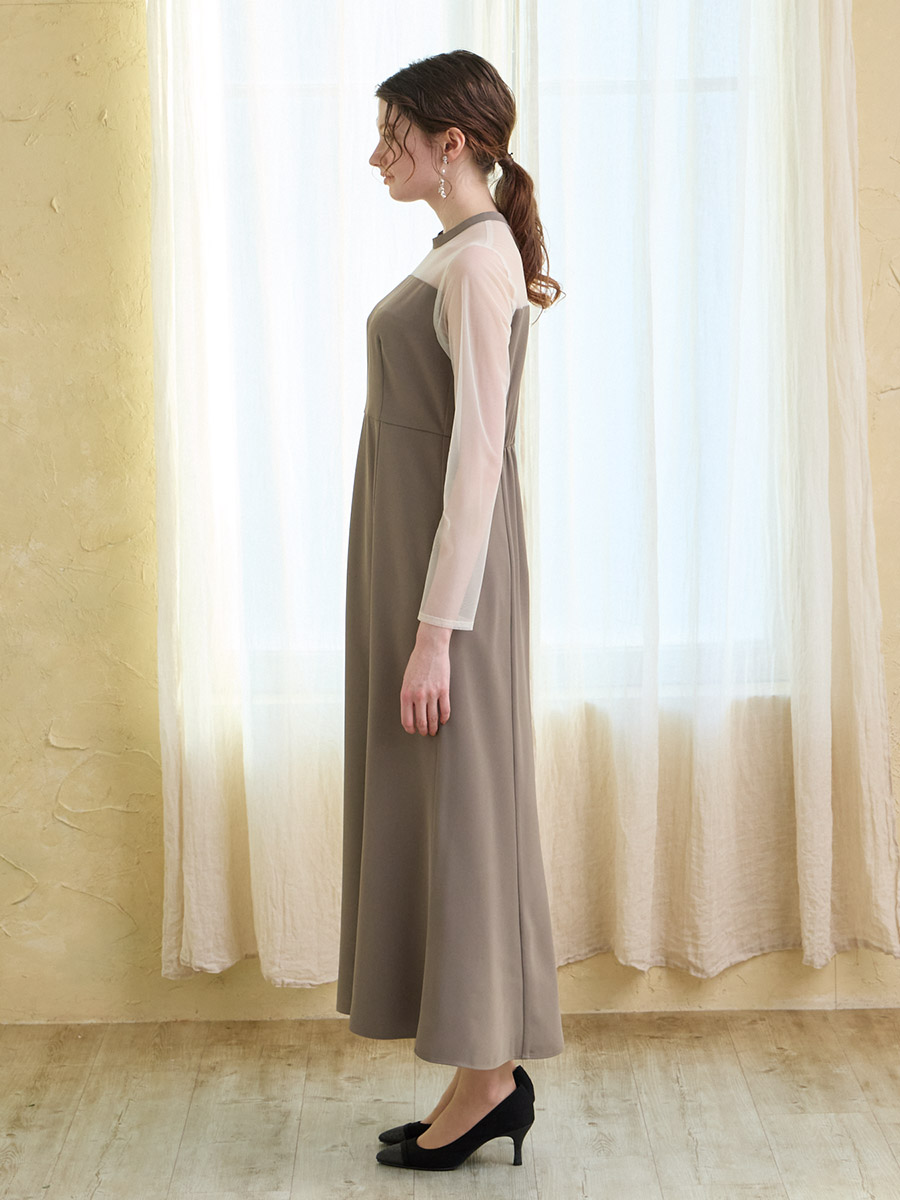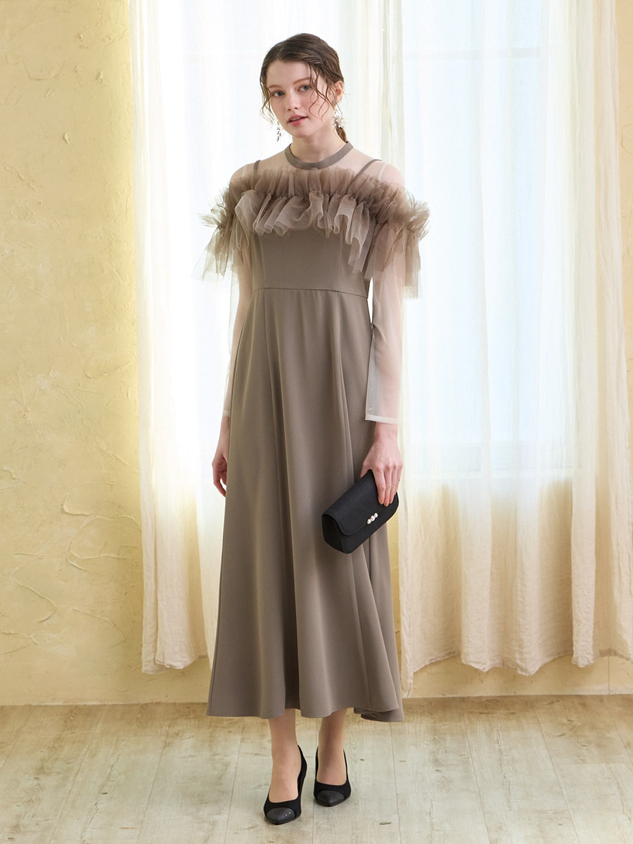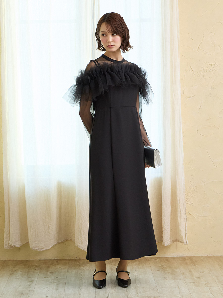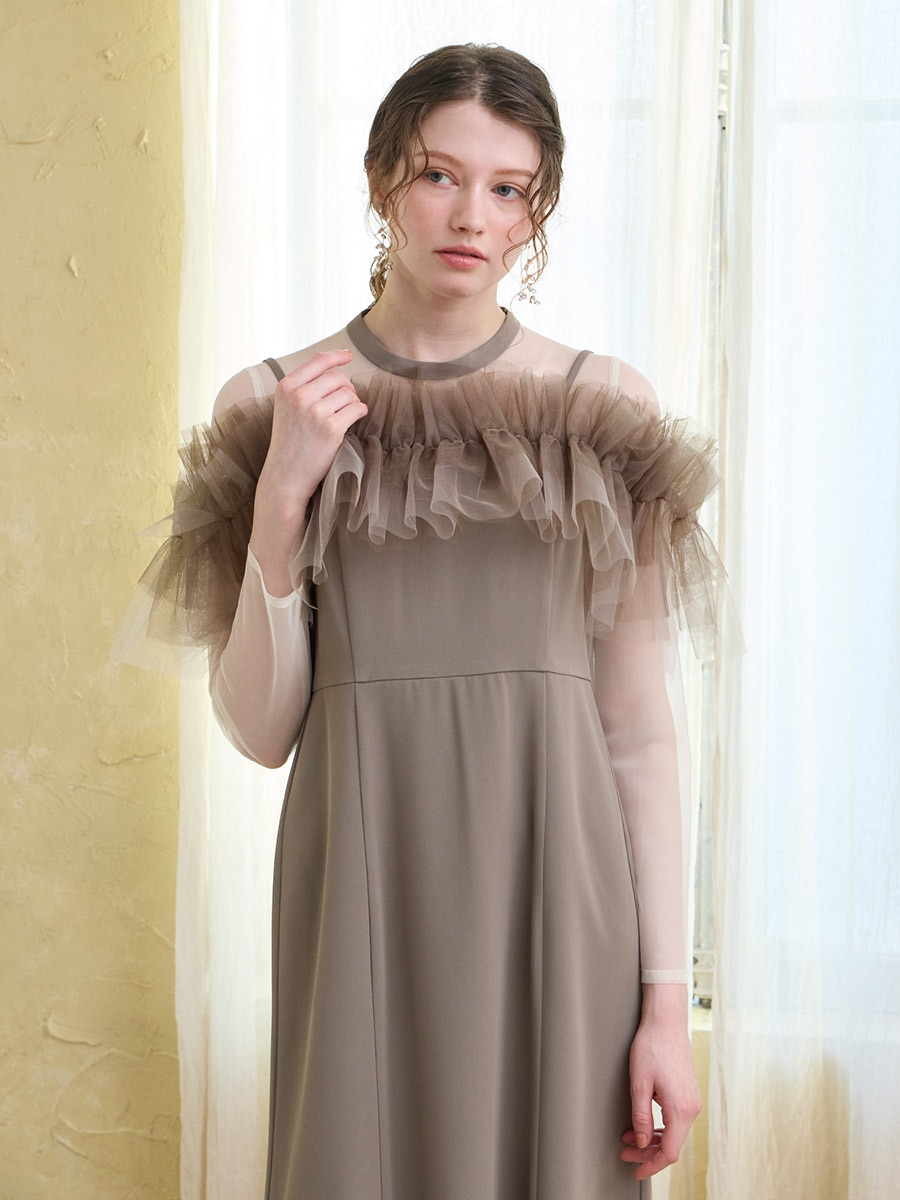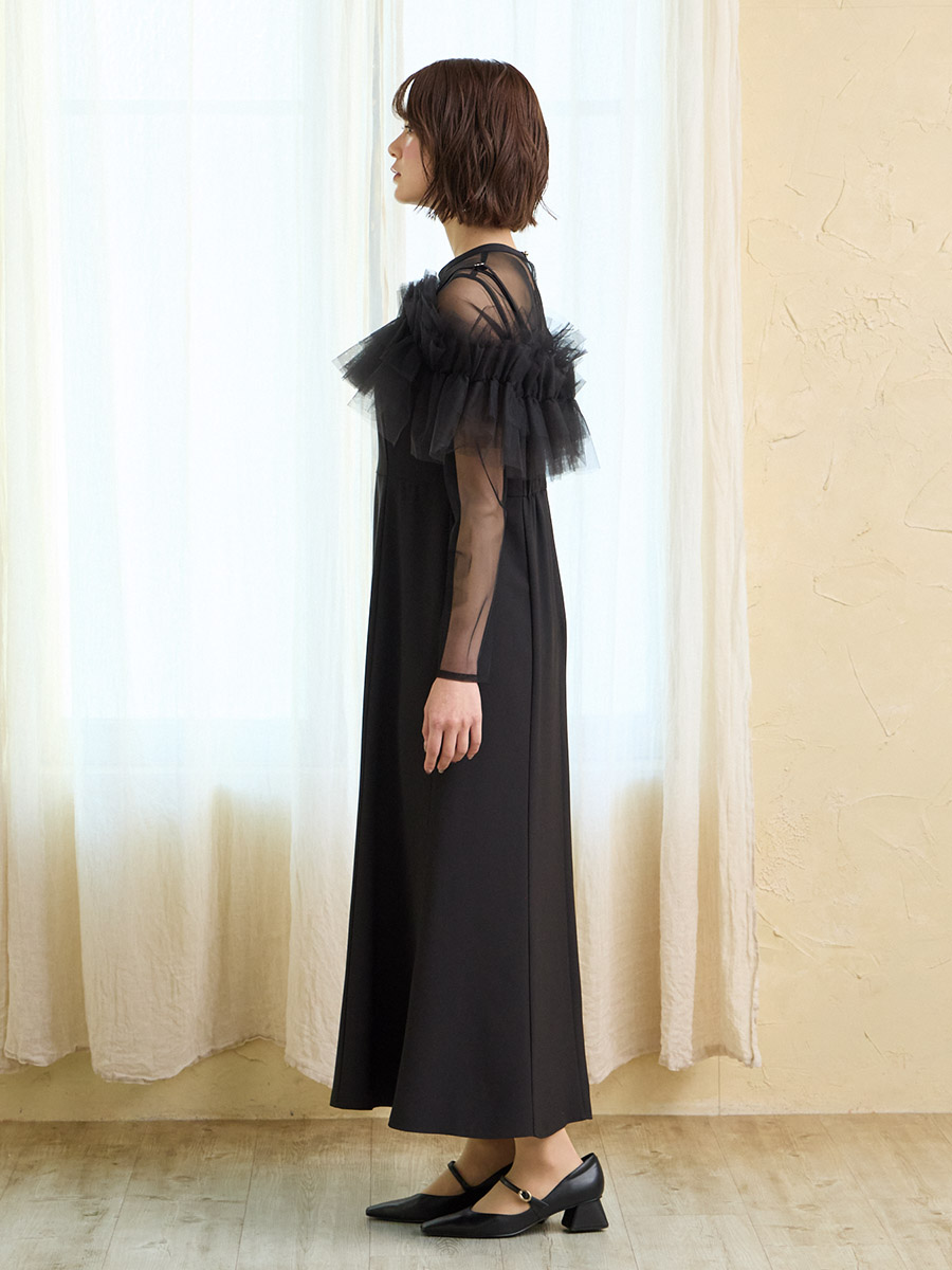 チュールフリルビスチェ×ロングスリーブワンピース2点セットドレス