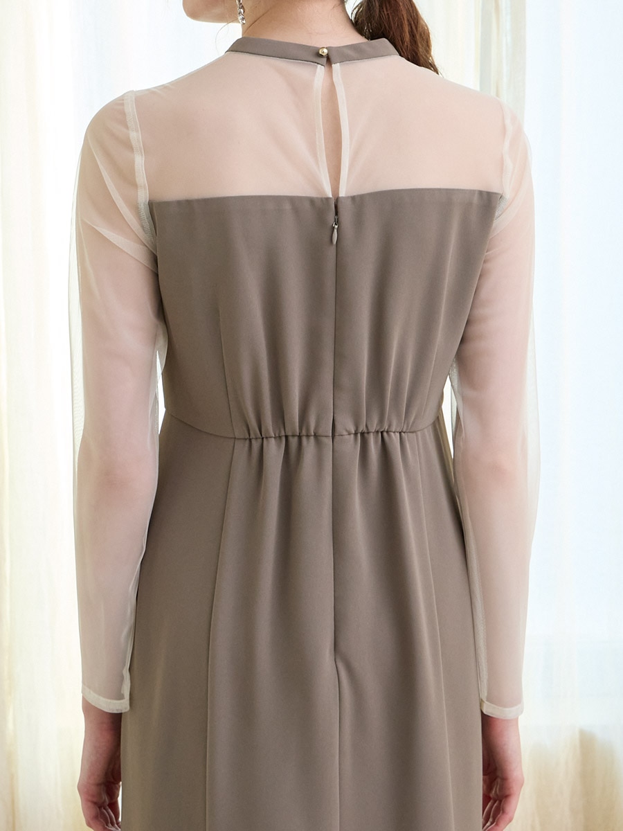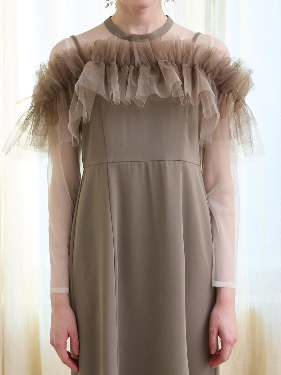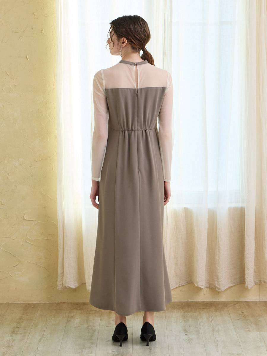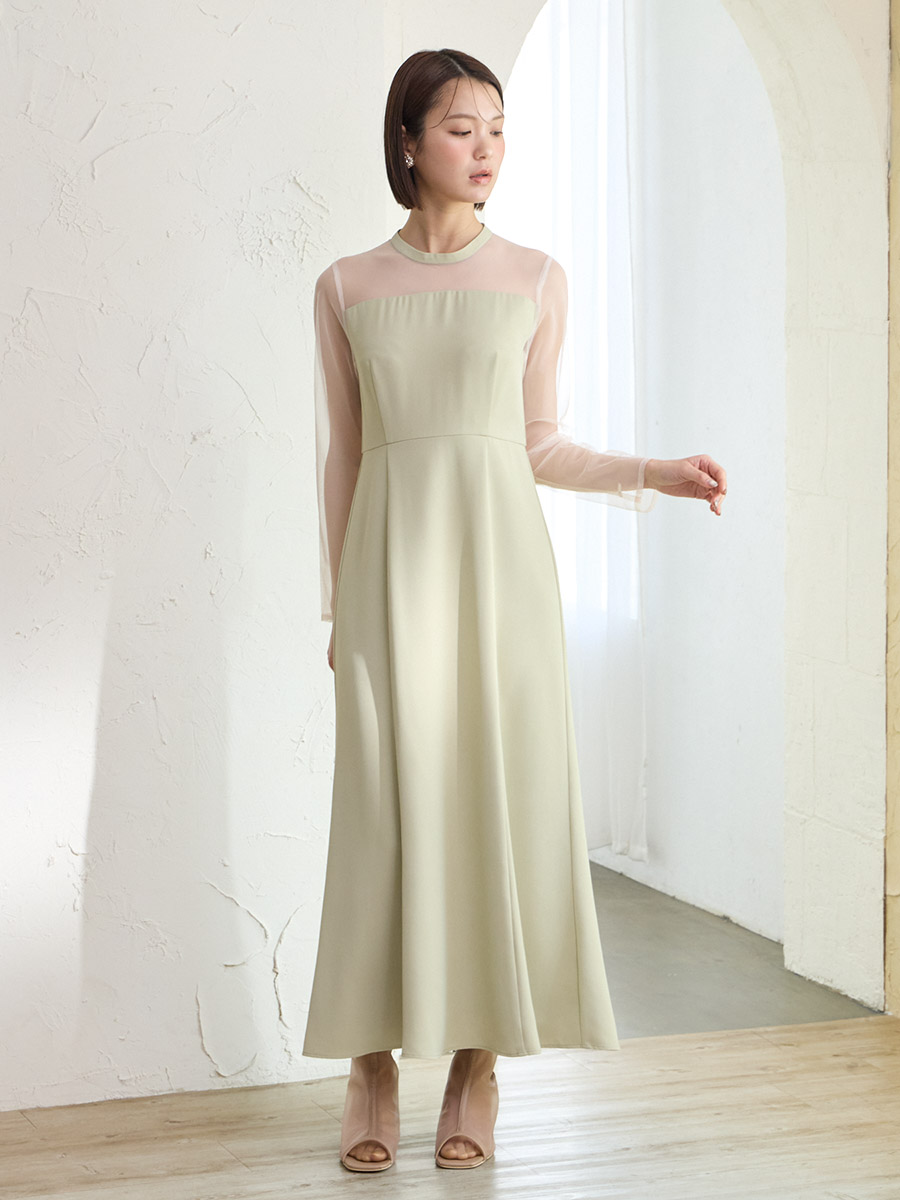 ・ドレス胸元と袖には高密度チュールを使用し、長袖でも抜け感のある仕上がりに