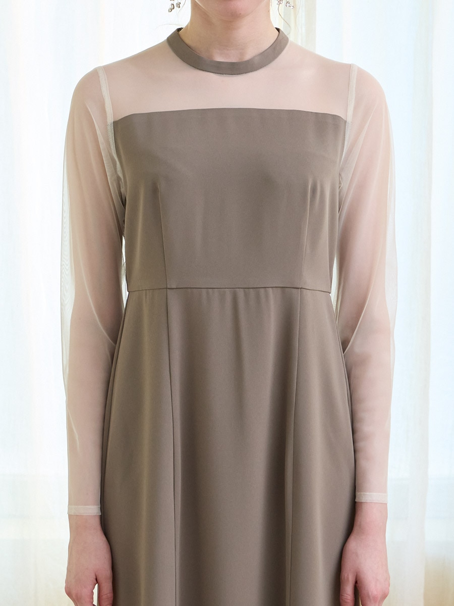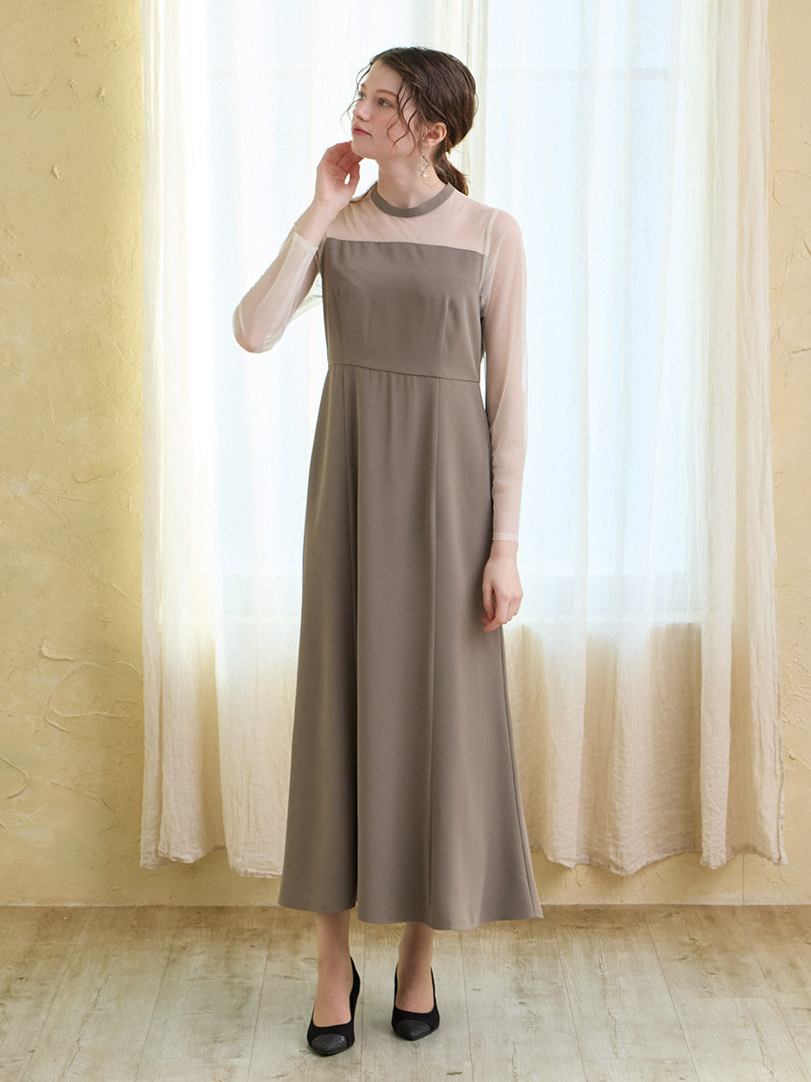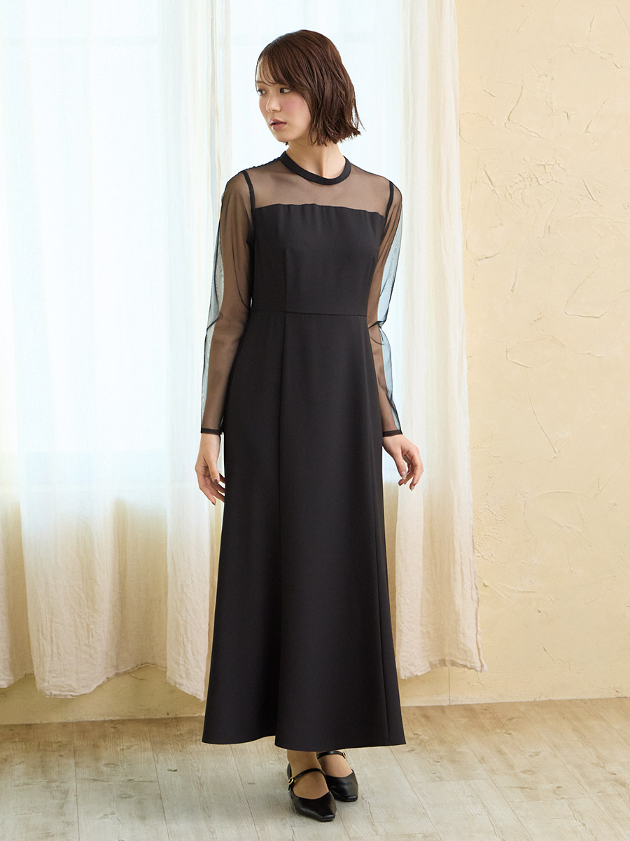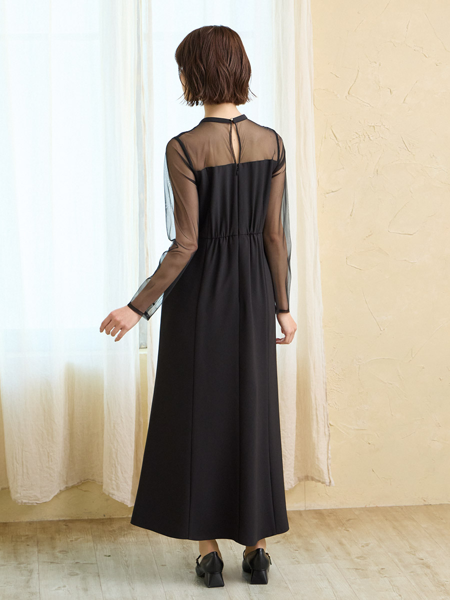 ・ドレス胸元と袖には高密度チュールを使用し、長袖でも抜け感のある仕上がりに