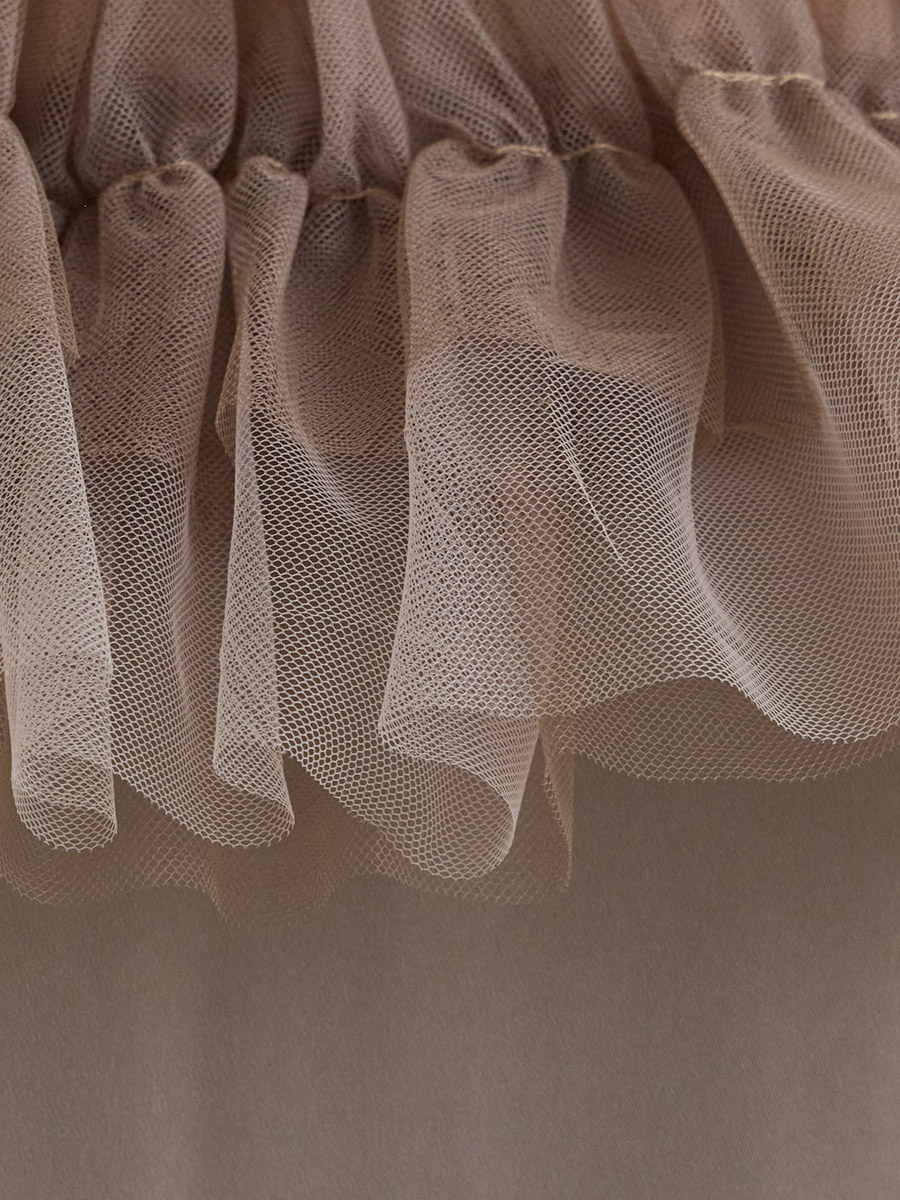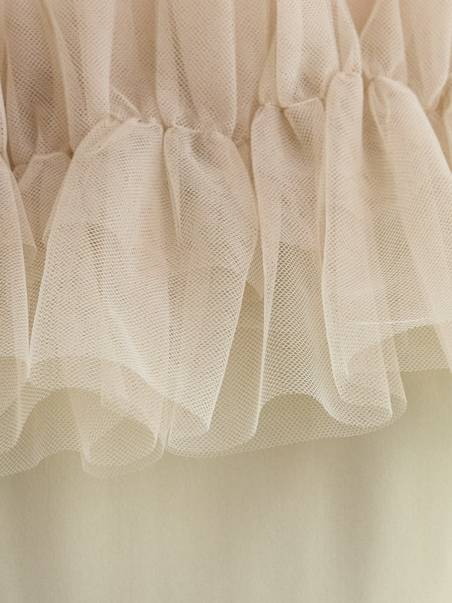 ・ビスチェにはハリのあるチュール素材を2色重ね、奥行きと透明感のある印象に