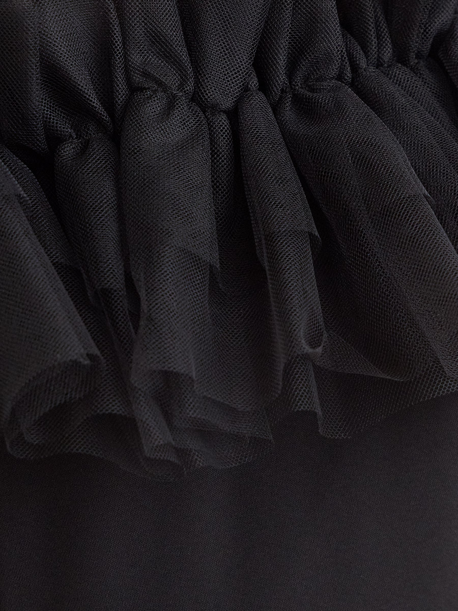 ・チュールフリルビスチェは着脱可能で、着こなし次第でトレンドからベーシックまで様々なスタイリングが楽しめるマルチWAYデザイン