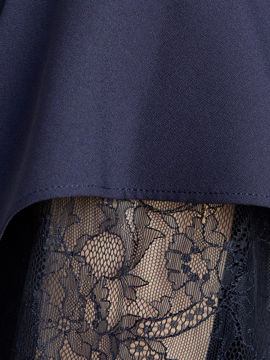 身頃は柔らかいバックサテンジョーゼットを使用し、袖はレースと組み合わせたダブルスリーブがポイントです。