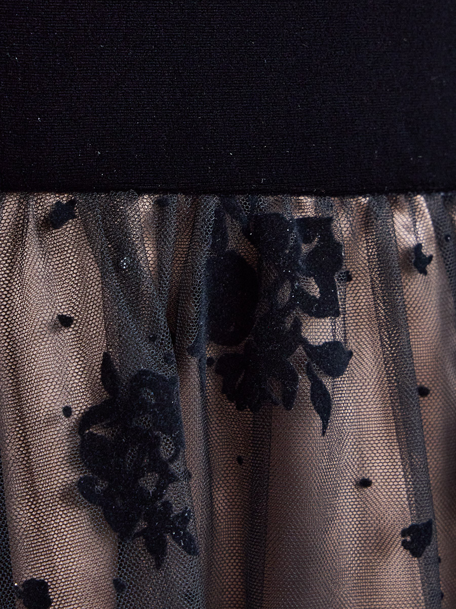 ・スカートは華やかなラメフロッキー加工したチュール生地