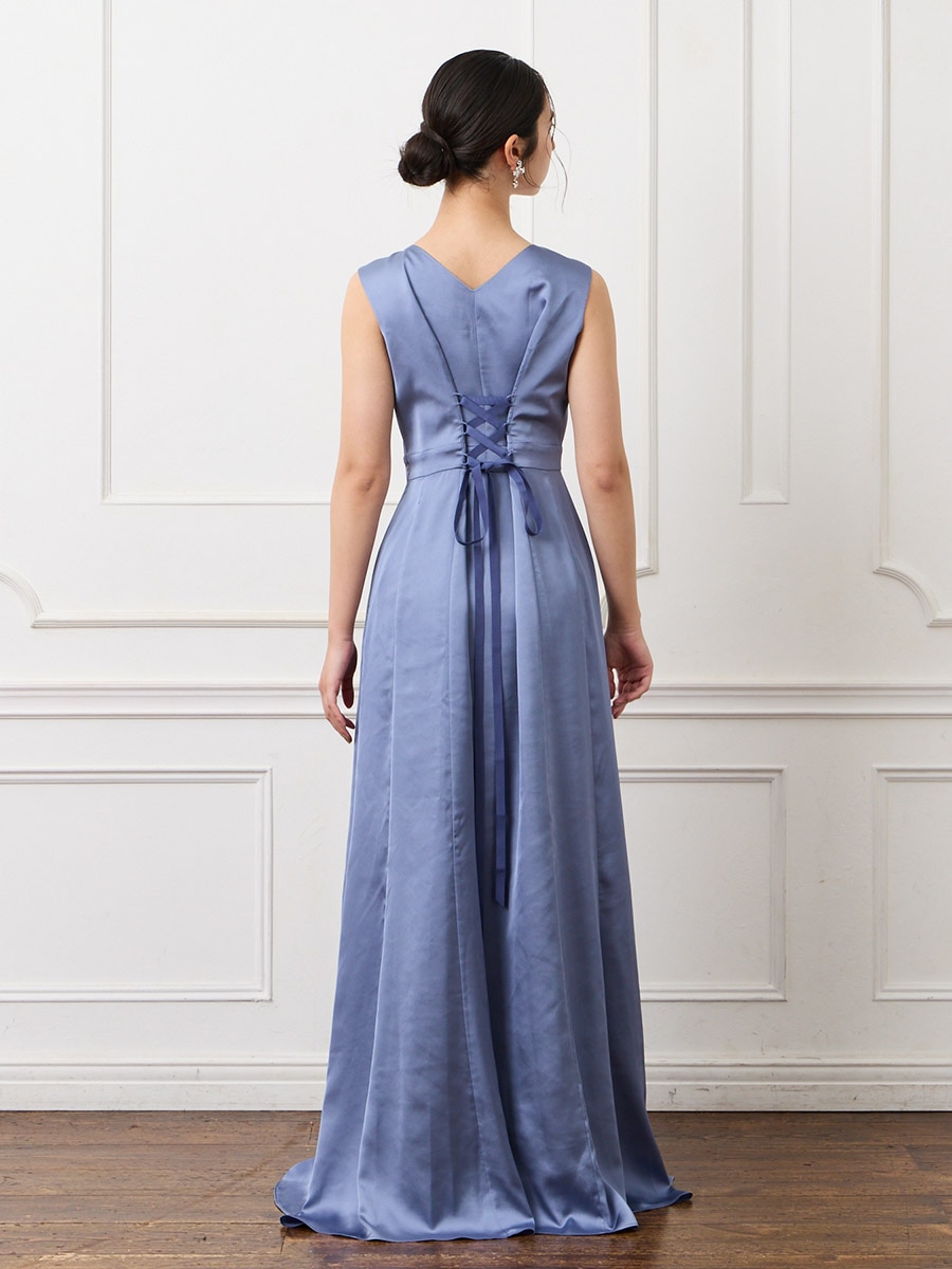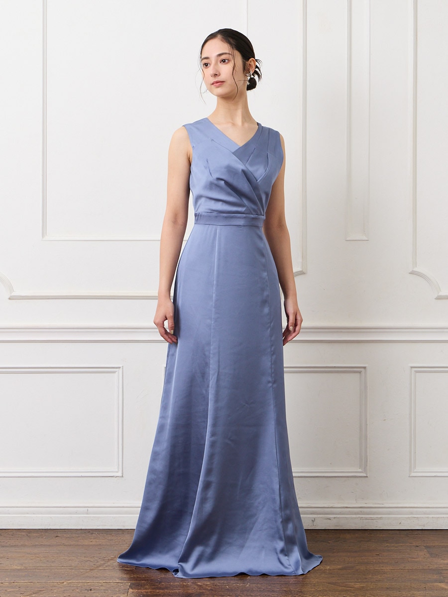 タックデザインサテンロングドレス