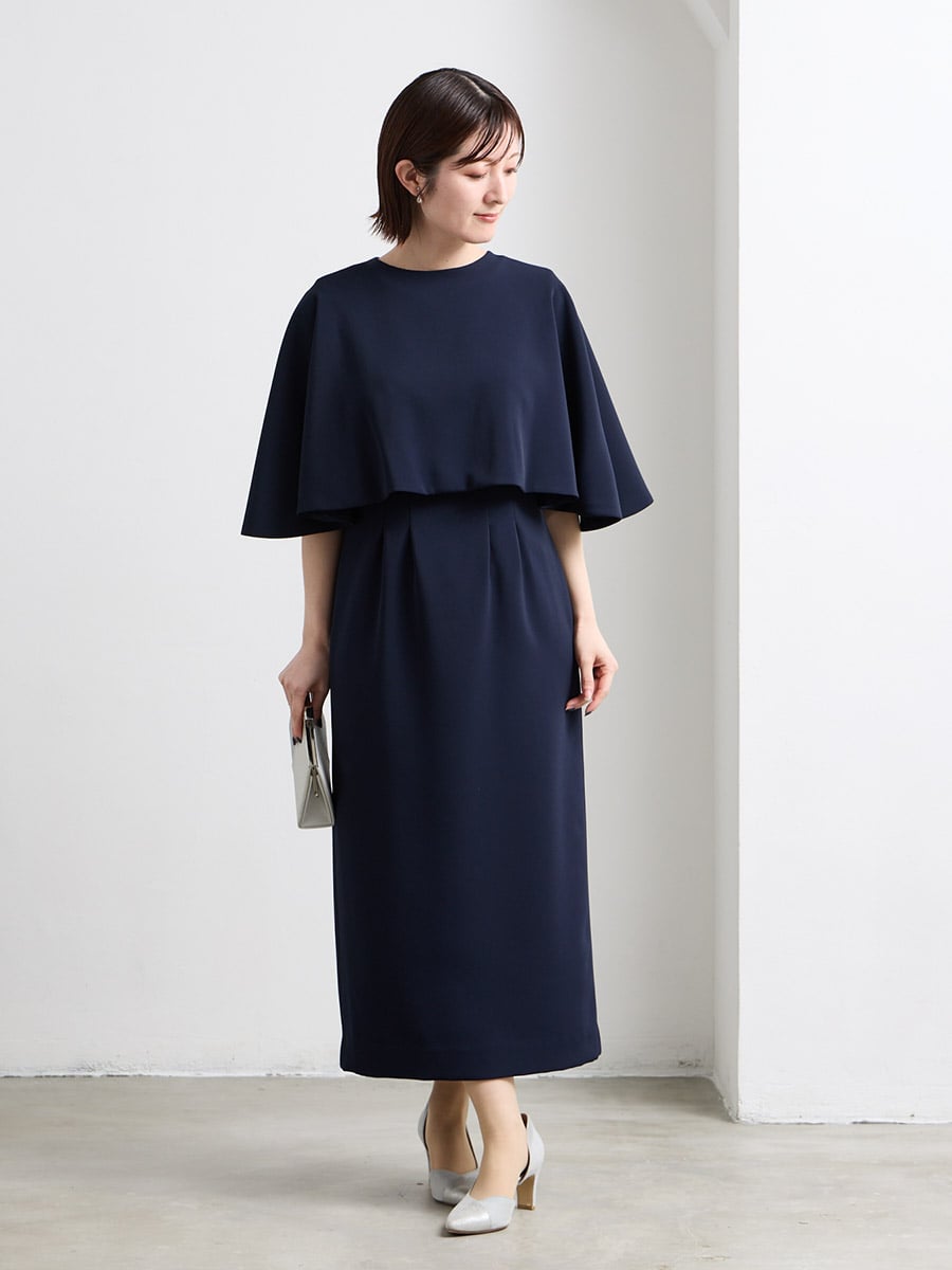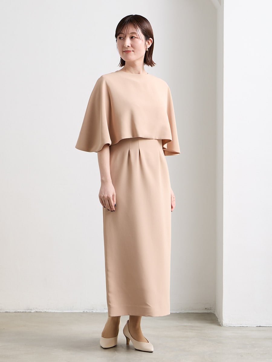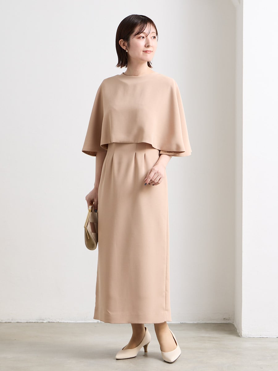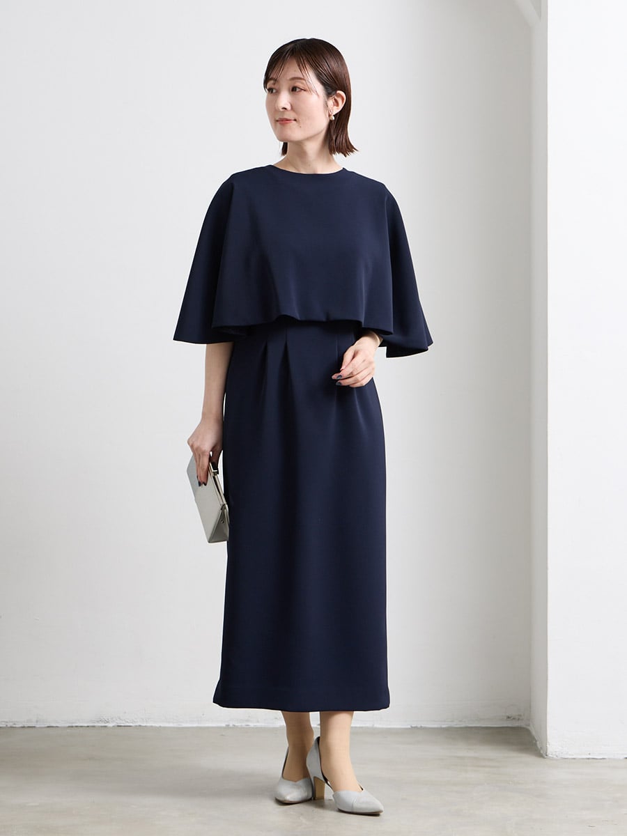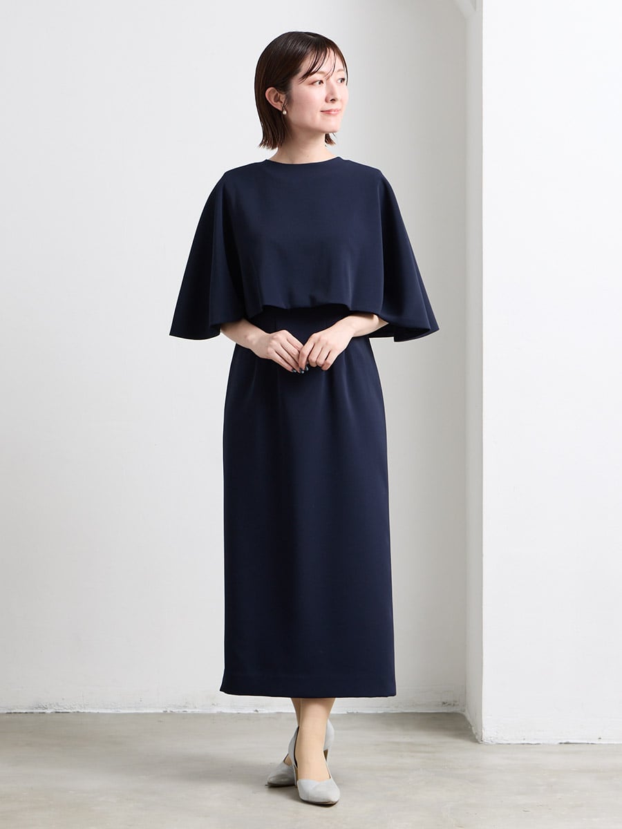 ワンピースは程よく身体に沿うIラインシルエットでスタイルアップ効果も◎。