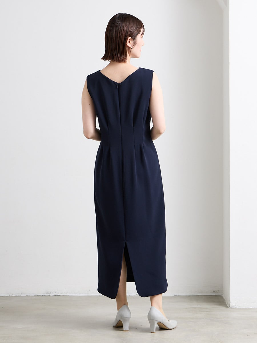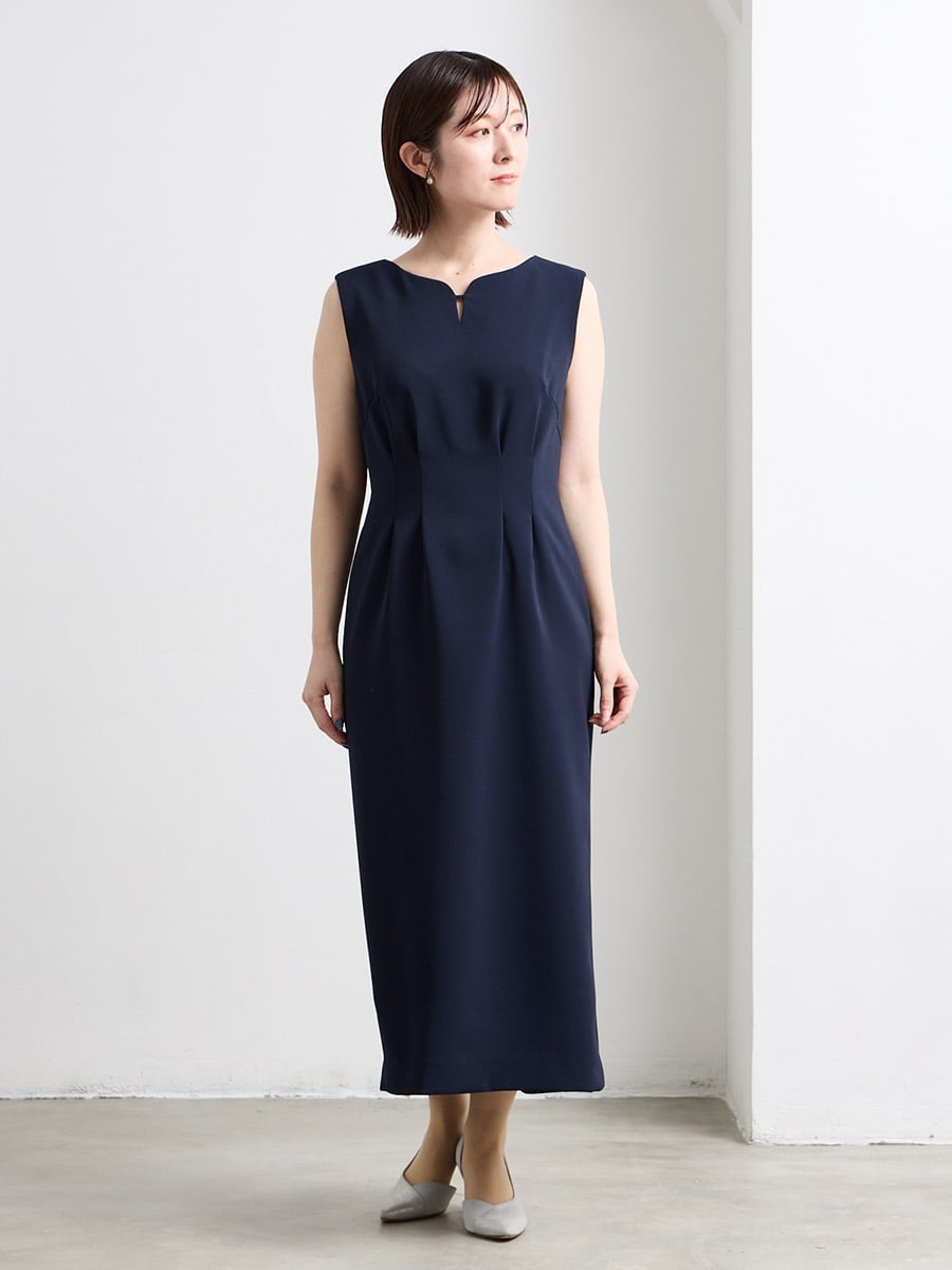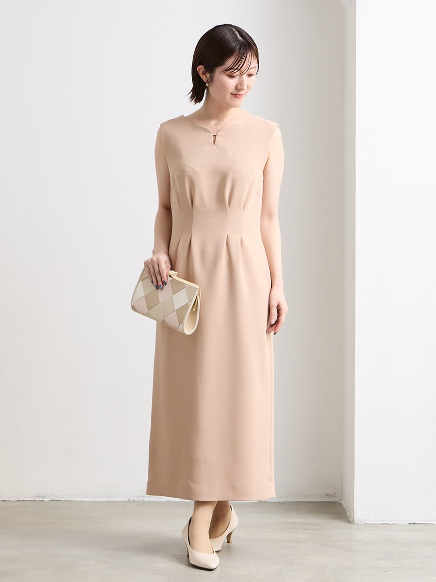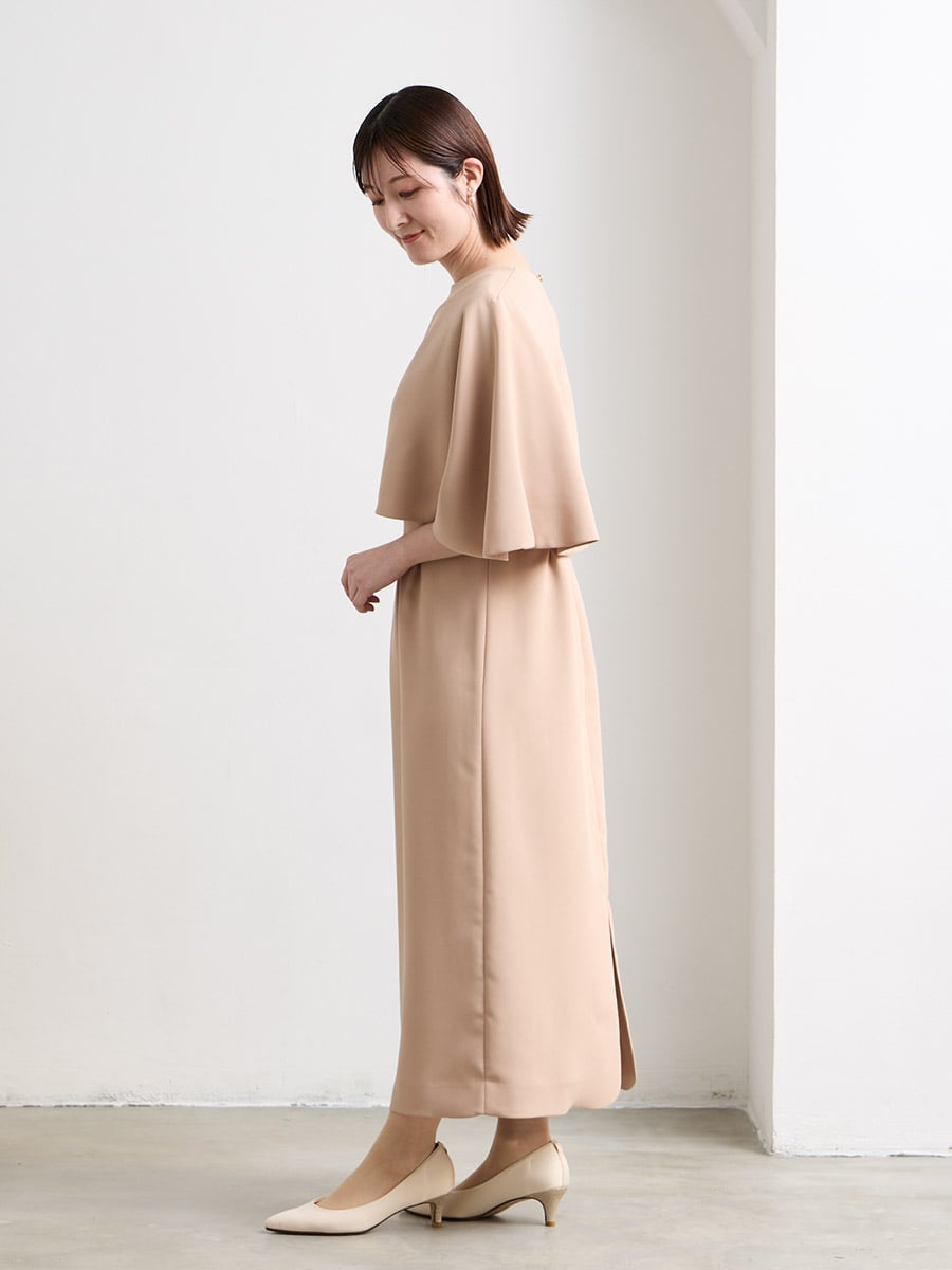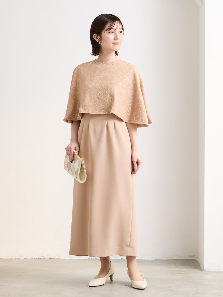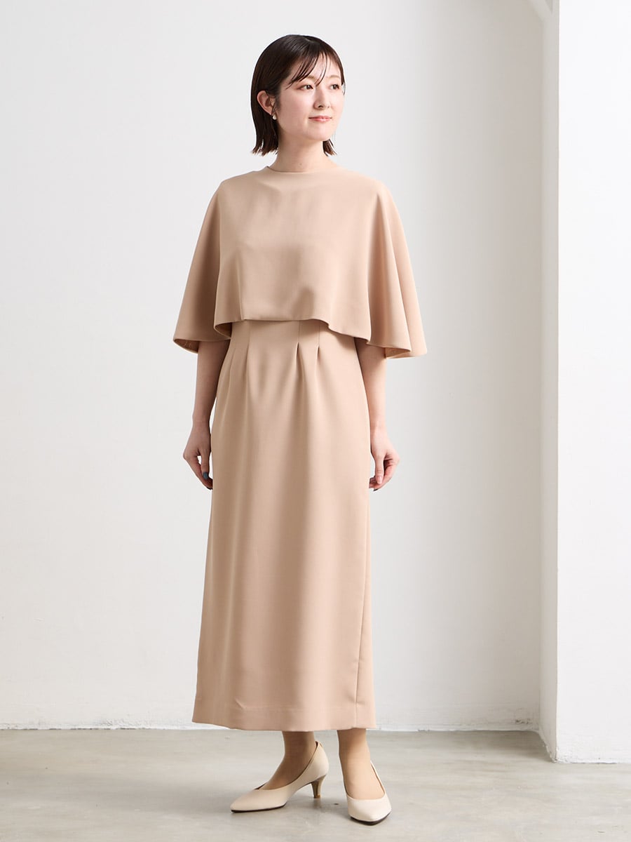 ワンピースは程よく身体に沿うIラインシルエットでスタイルアップ効果も◎。