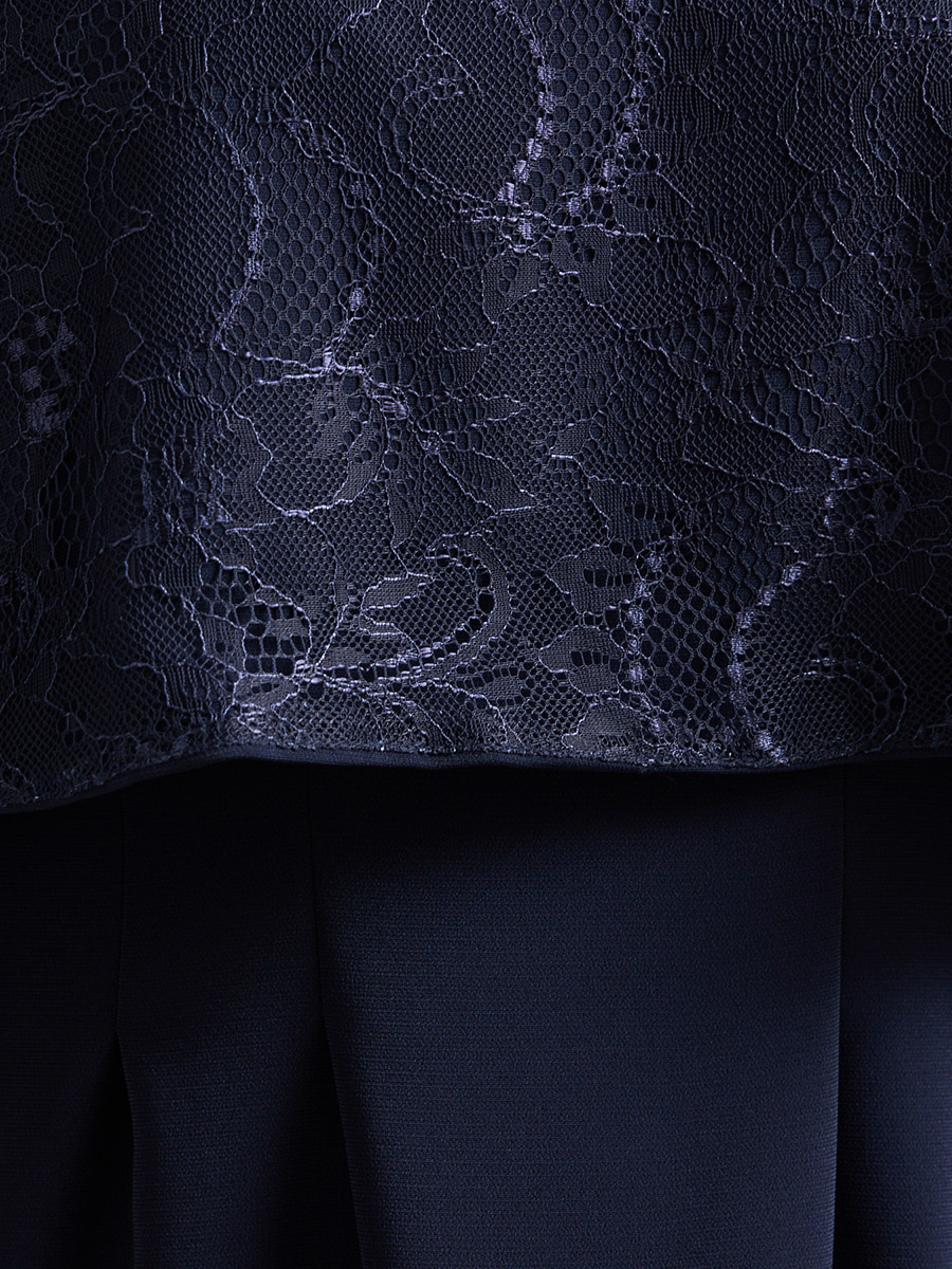 ケープは表と裏で無地とレースデザインを配しどちらでも着られる仕様に。