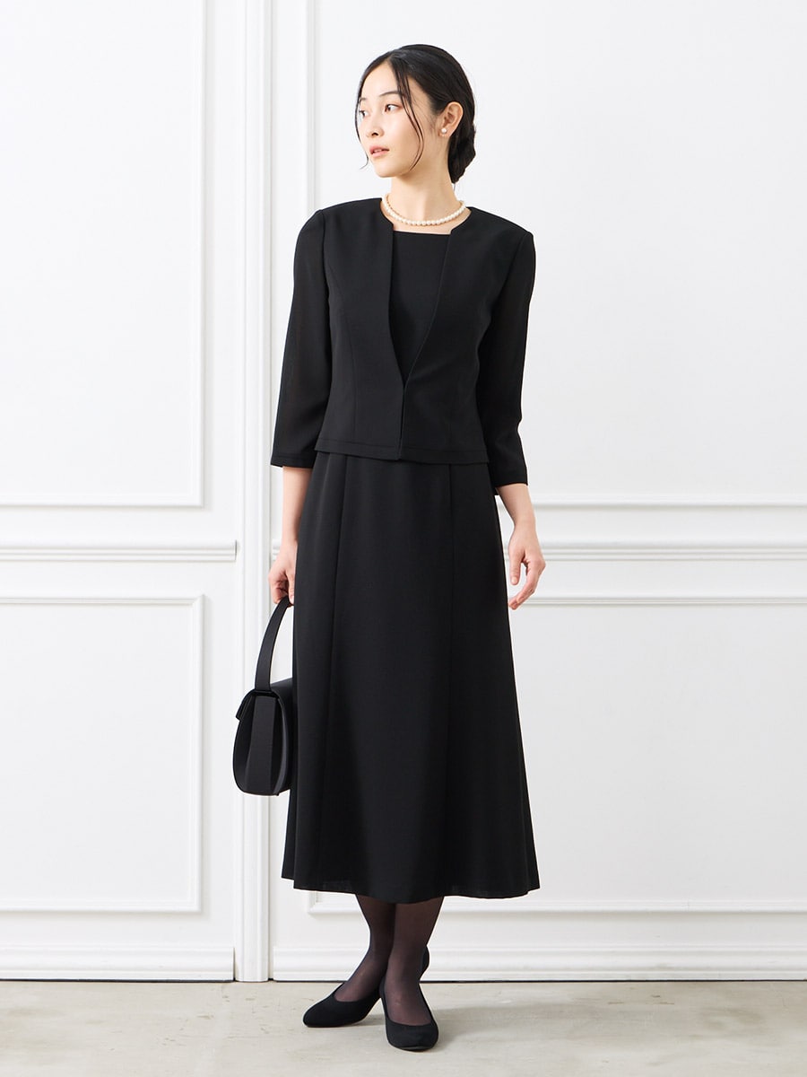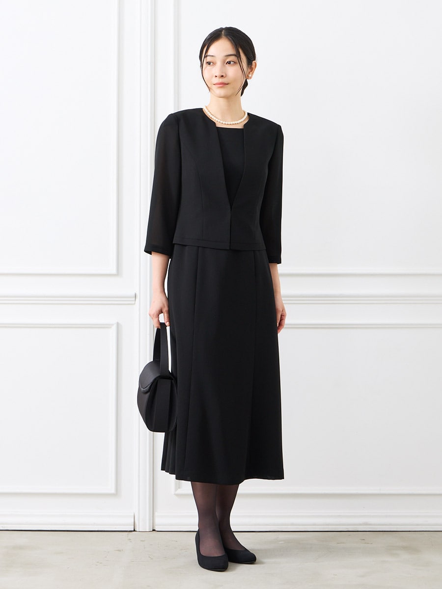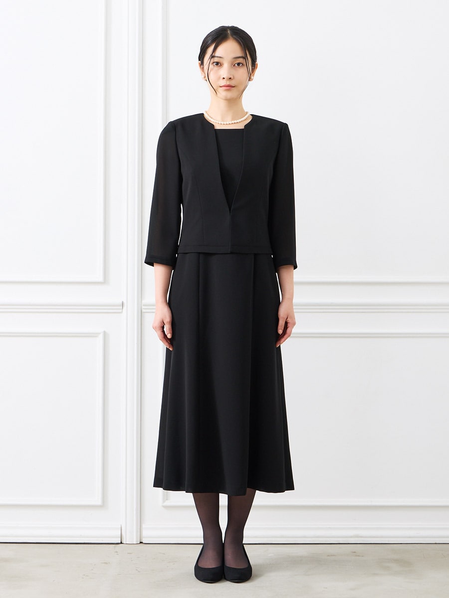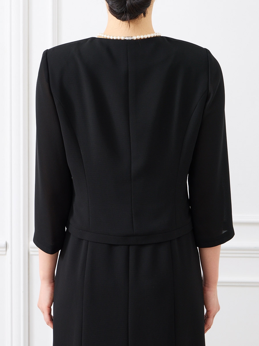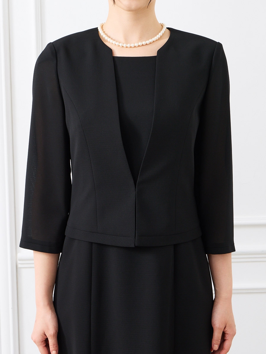 【喪服・礼服】【夏用喪服】【ウォッシャブル】Vネックジャケットデザイン前開きロングワンピース