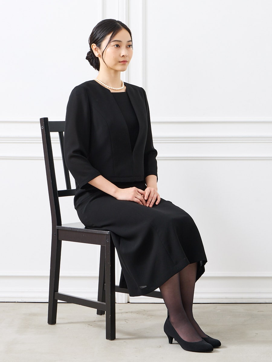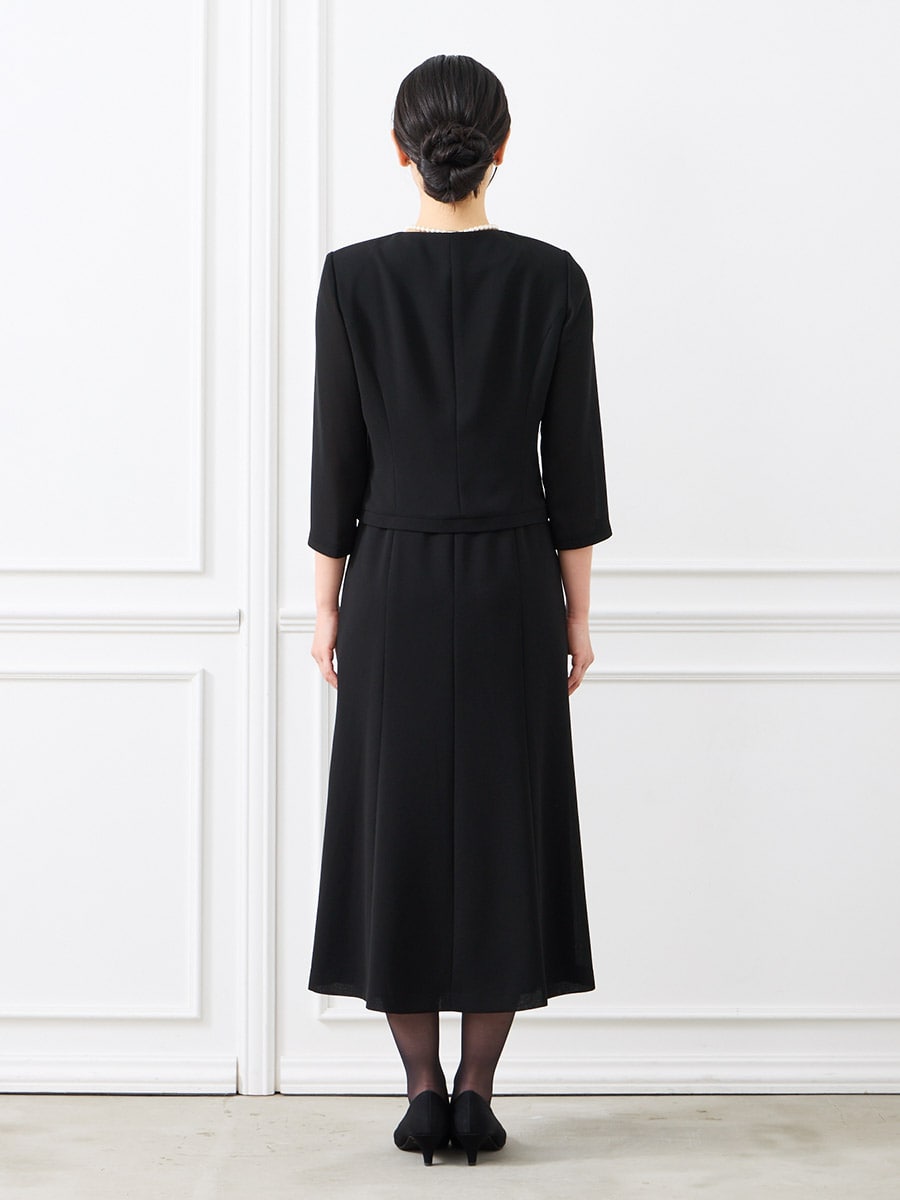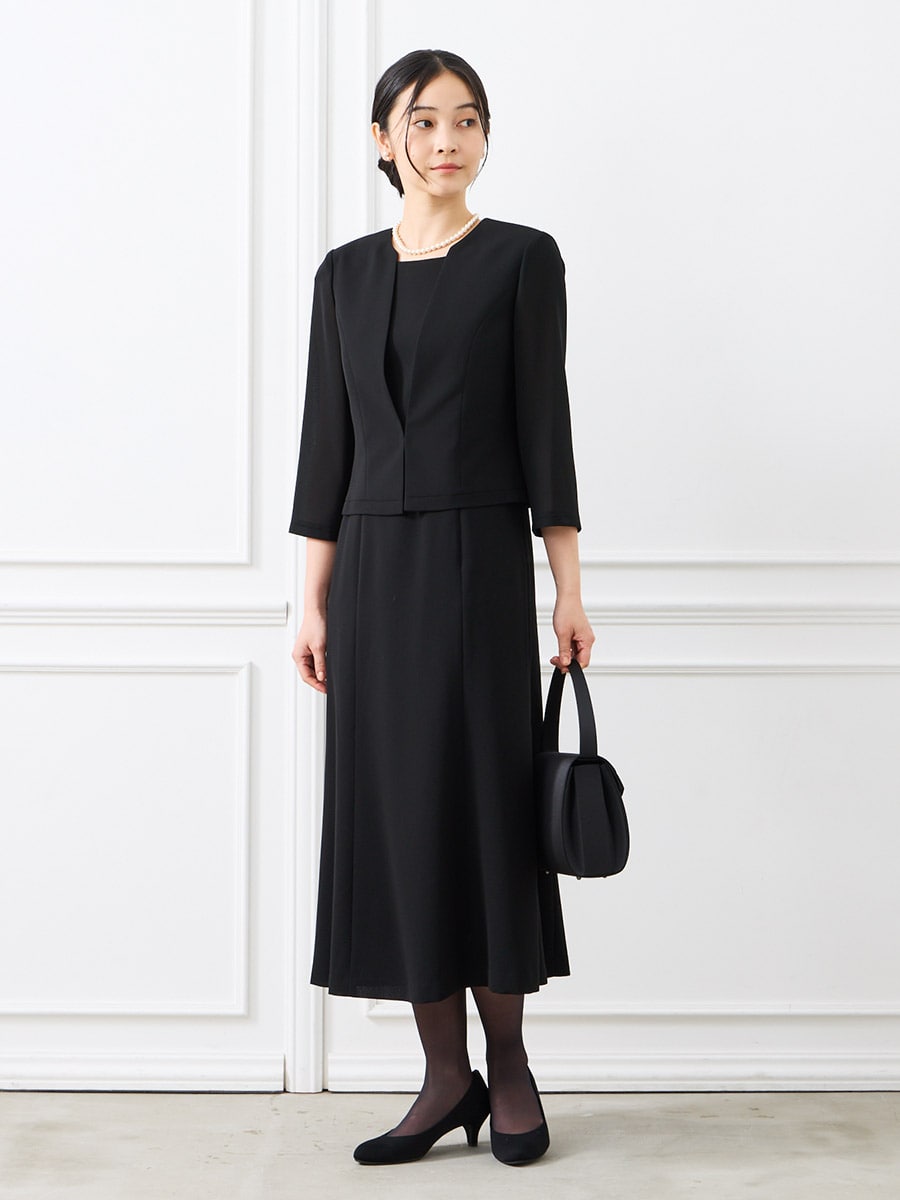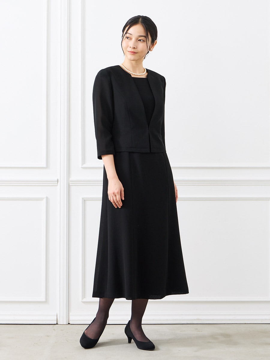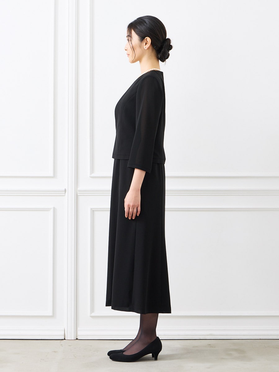 【喪服・礼服】【夏用喪服】【ウォッシャブル】Vネックジャケットデザイン前開きロングワンピース