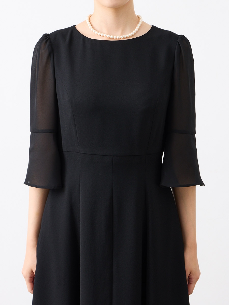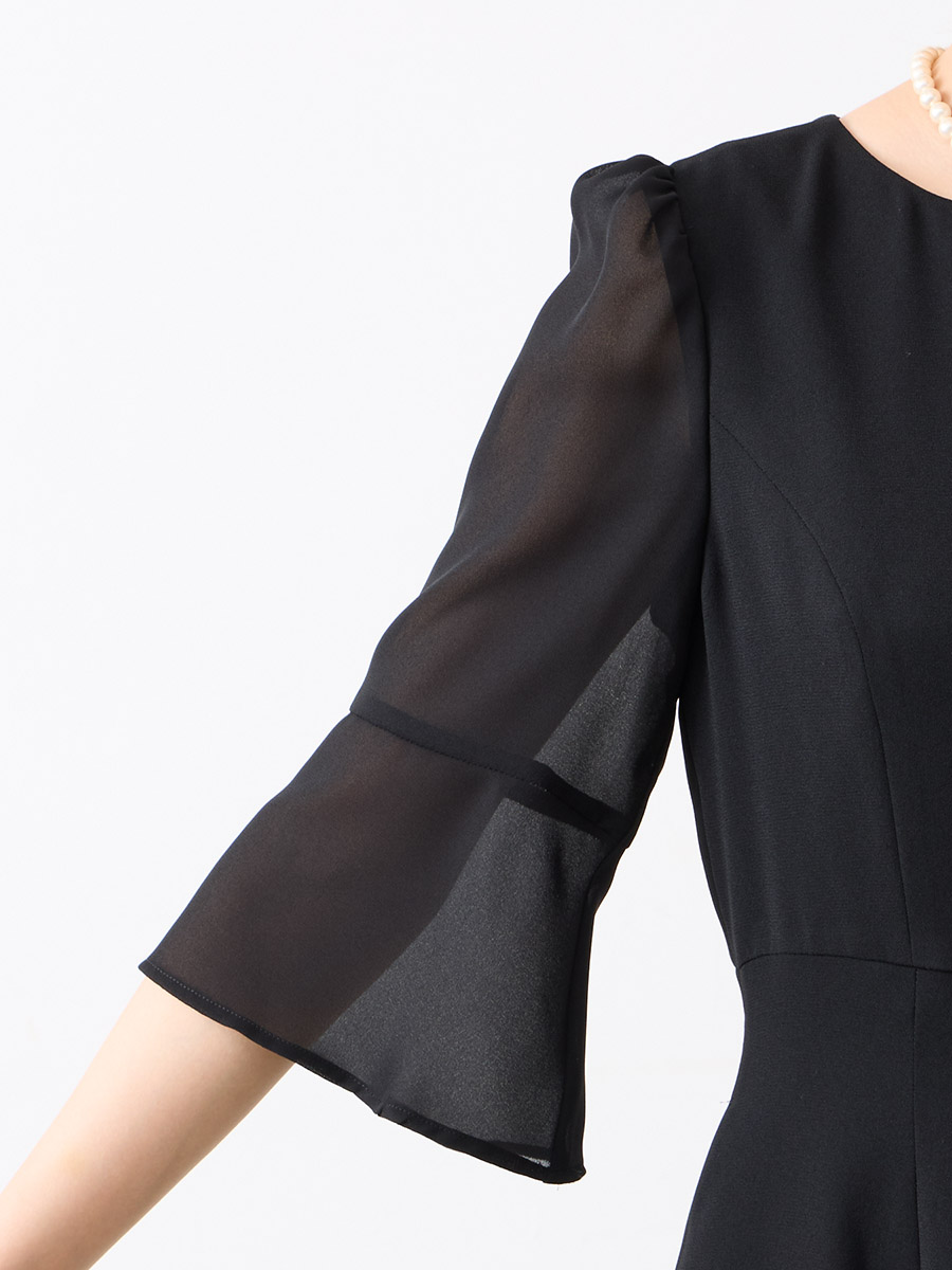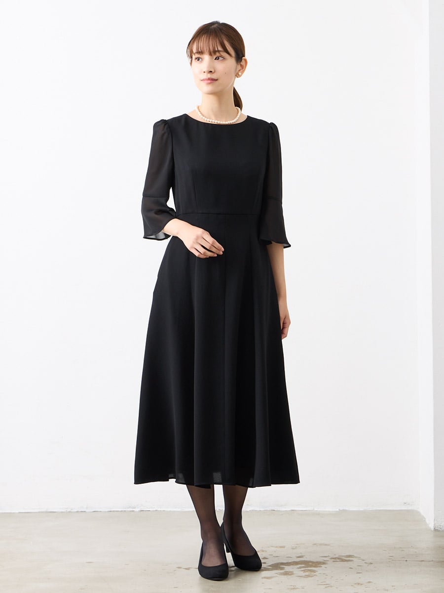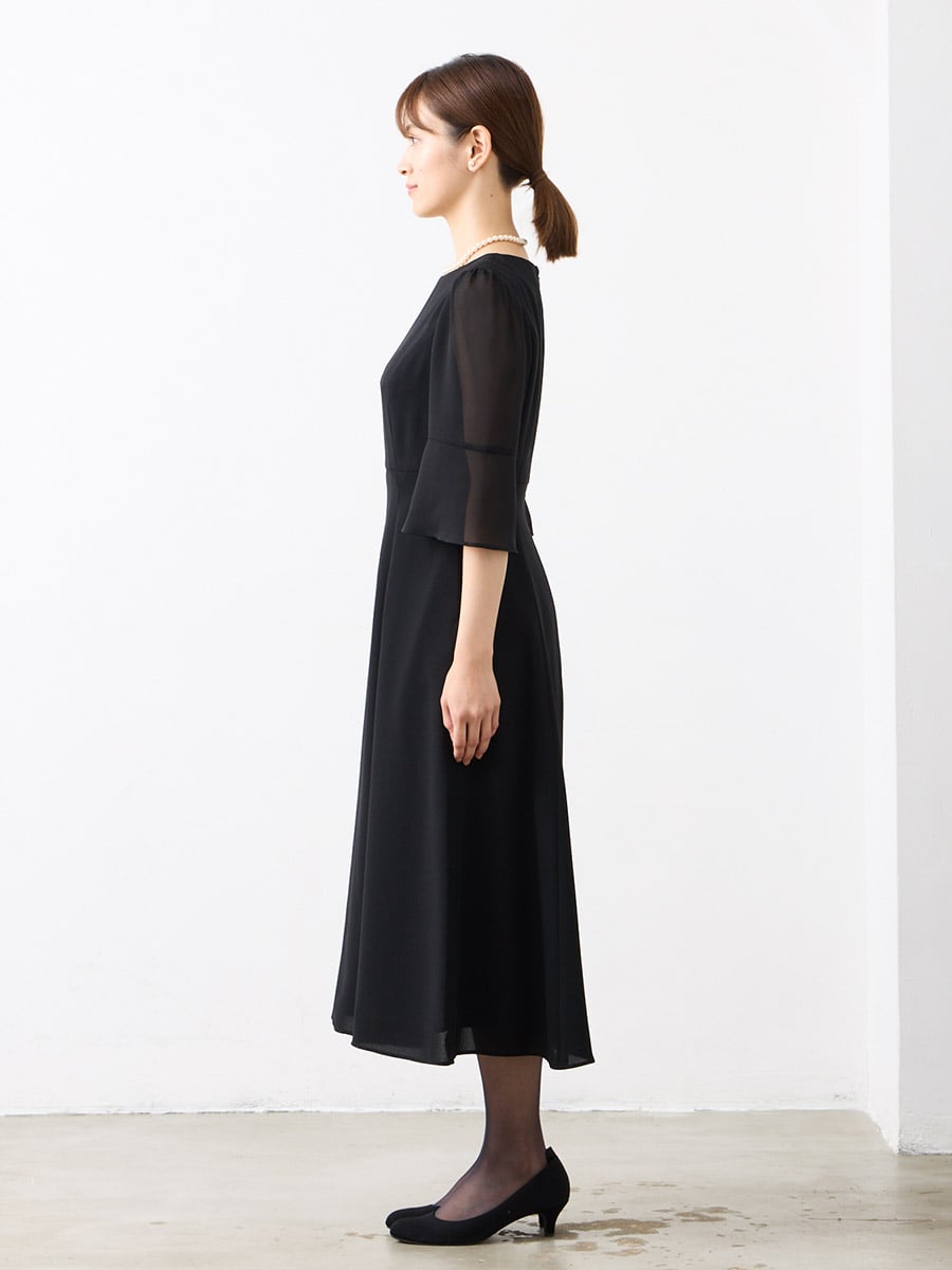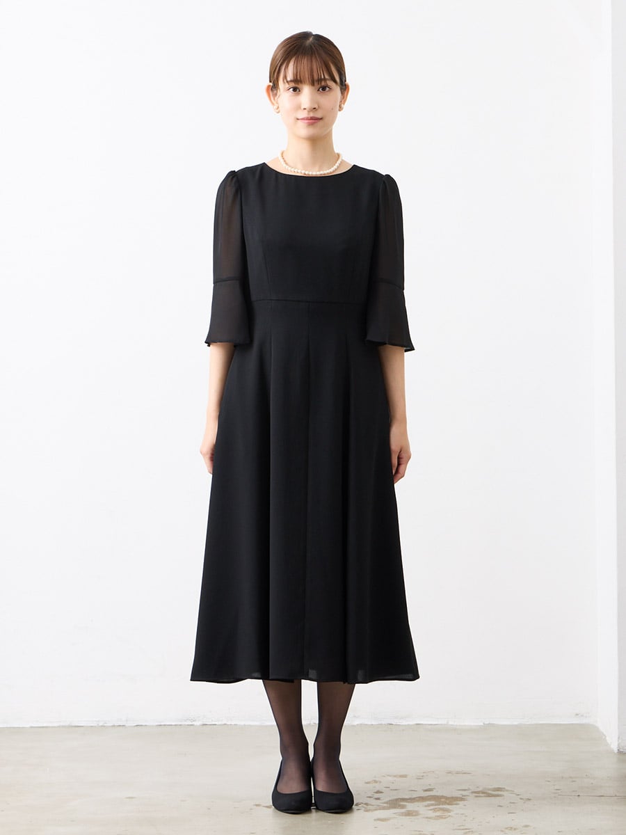 【喪服・礼服】【夏用喪服】【マシンウォッシャブル】フレアスリーブフィット&フレアブラックワンピース