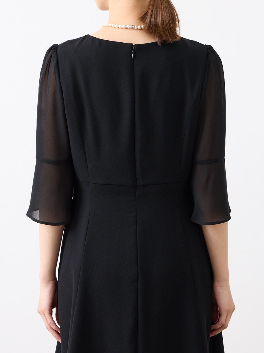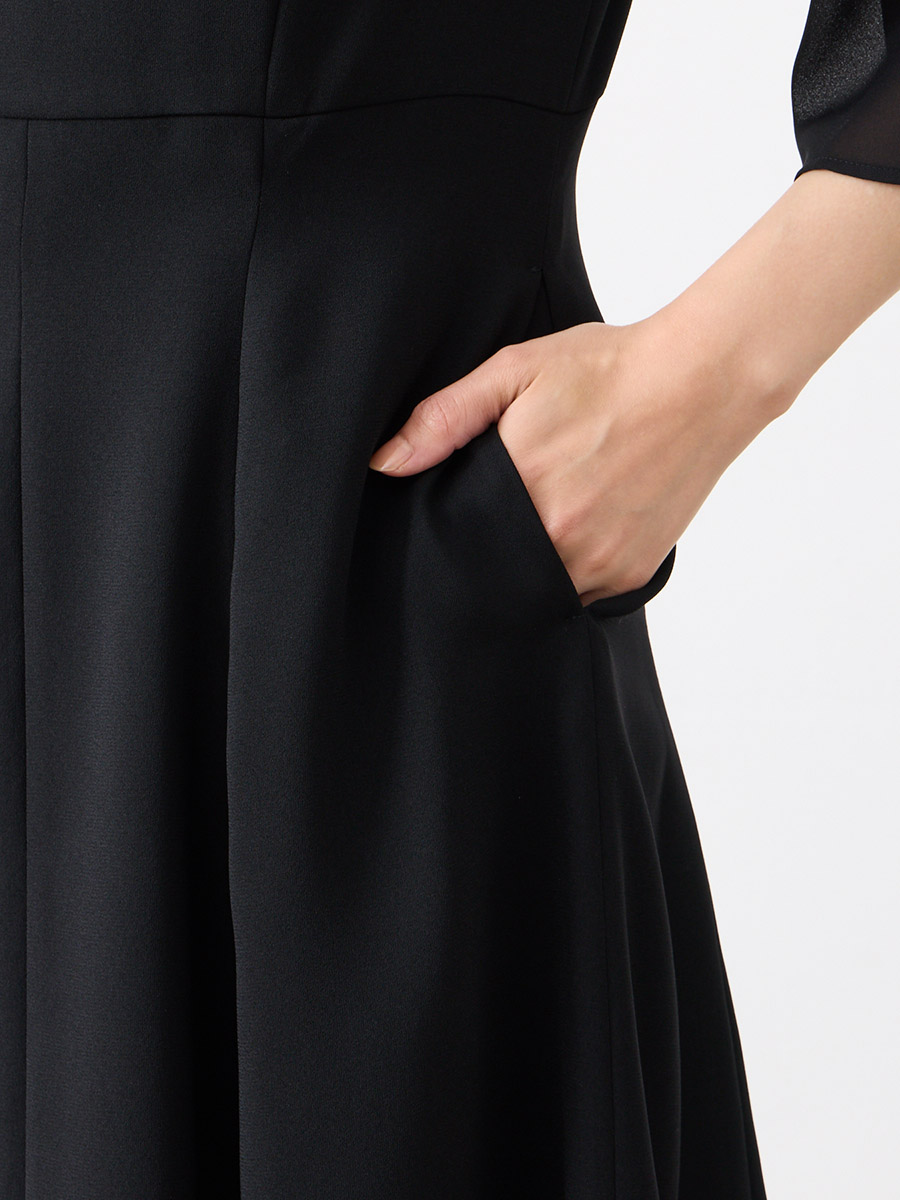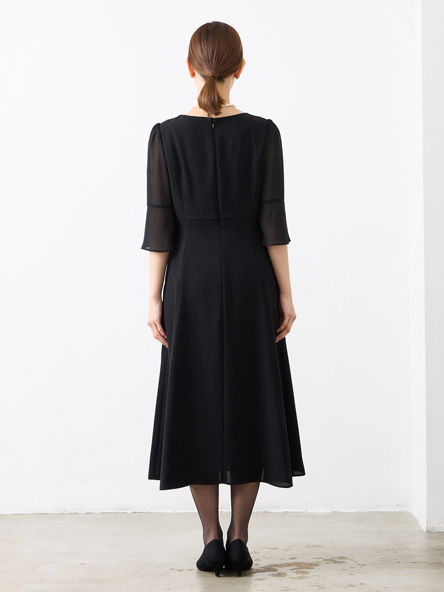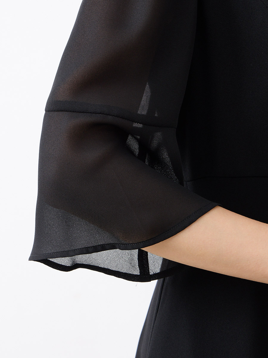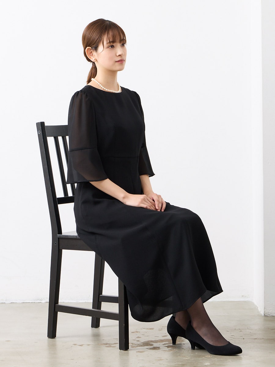 【喪服・礼服】【夏用喪服】【マシンウォッシャブル】フレアスリーブフィット&フレアブラックワンピース