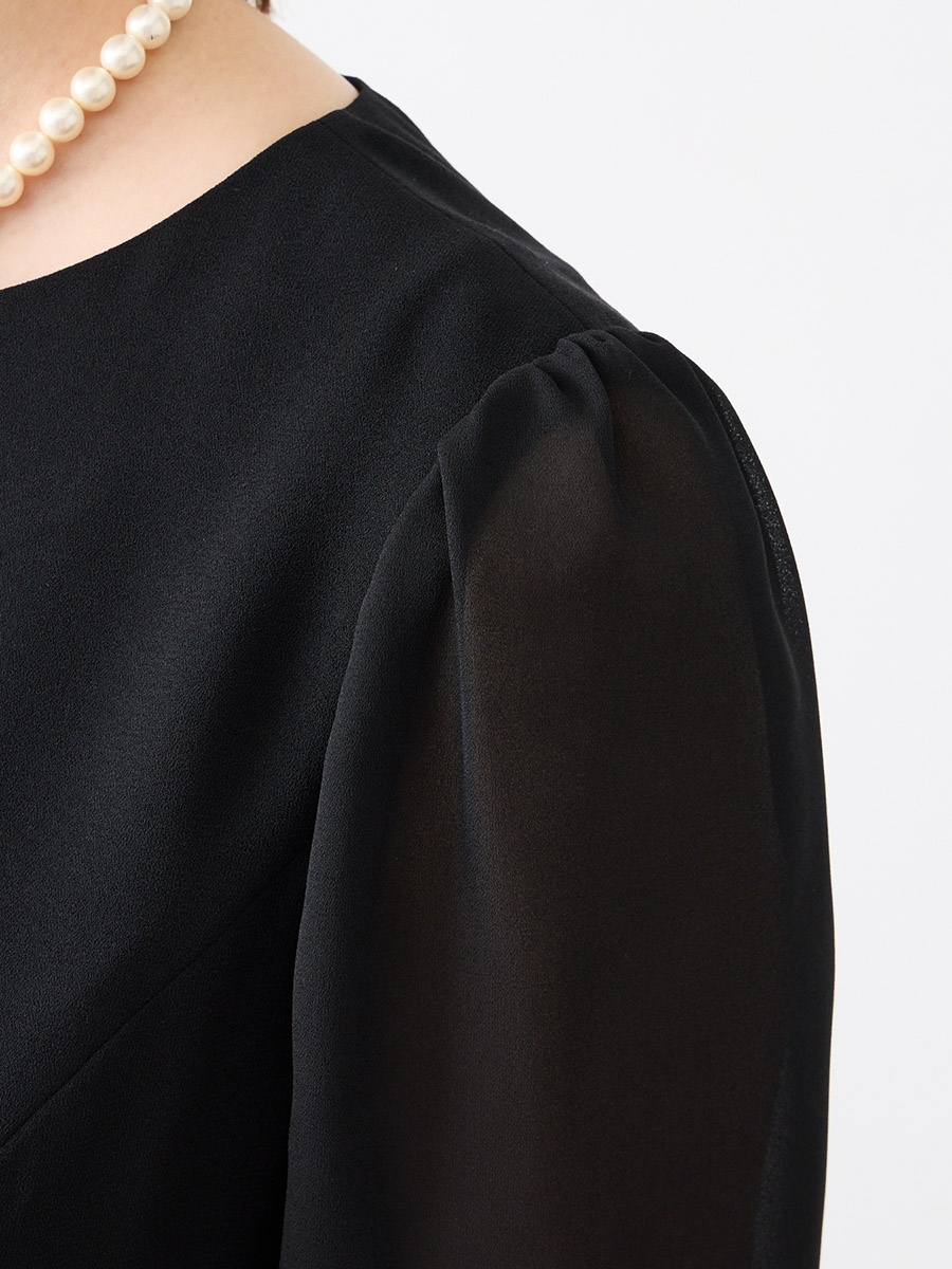 ・オールシーズン着用可能なジョーゼット生地なので、夏以外の着用も可能です。同素材のジャケット(0332-5-31500)を合わせてアンサンブルとして揃えておくのもおすすめです。