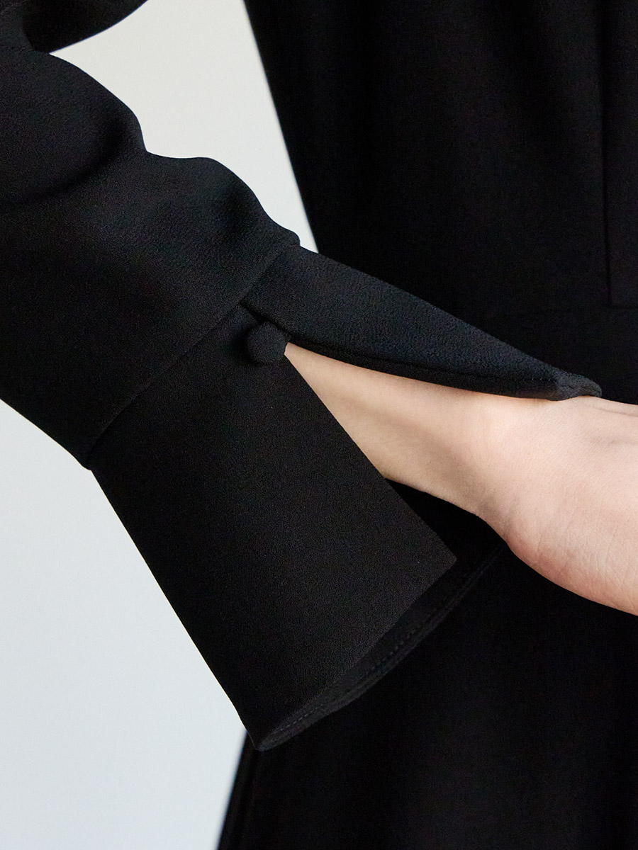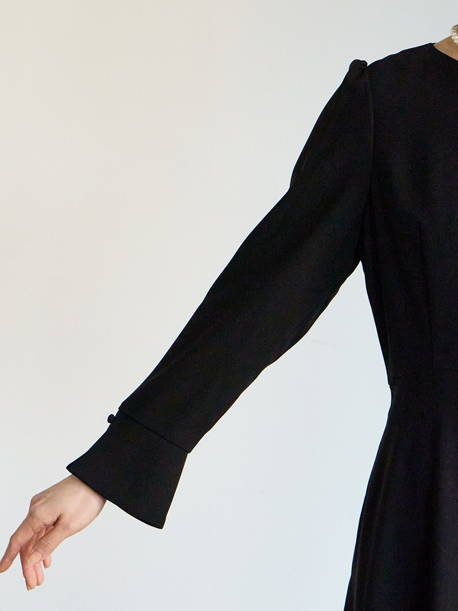 ・長袖のカフススリーブはくるみボタンをあしらい上品に、袖口はスリット入りですっきりとした印象です。