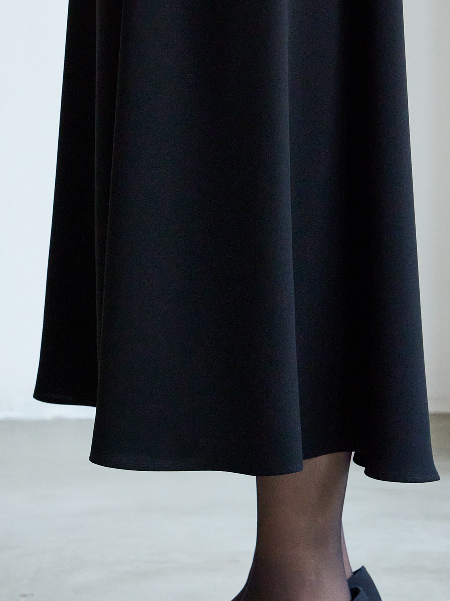 ・腰回りのボリュームを抑えたAラインスカート、裾にかけてフレアを入れ、揺れ感のあるエレガントな印象です