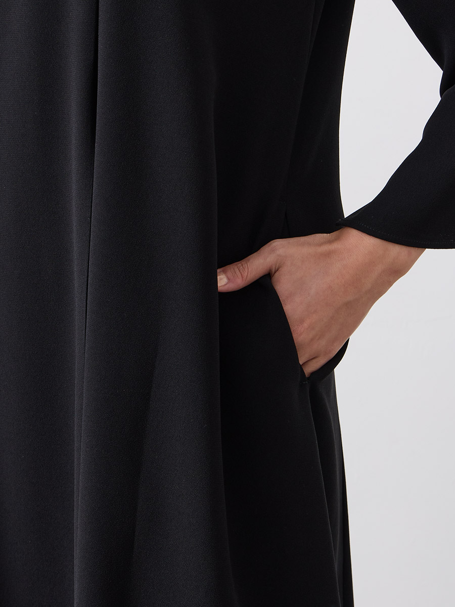 【喪服・礼服】【ウォッシャブル】アシンメトリータックテントラインブラックワンピース
