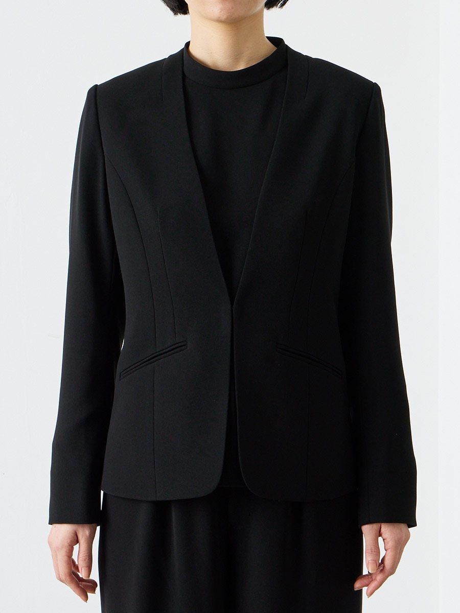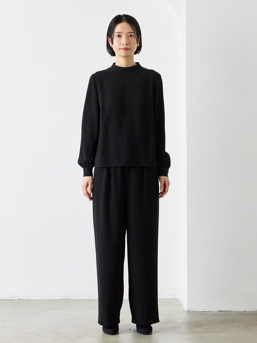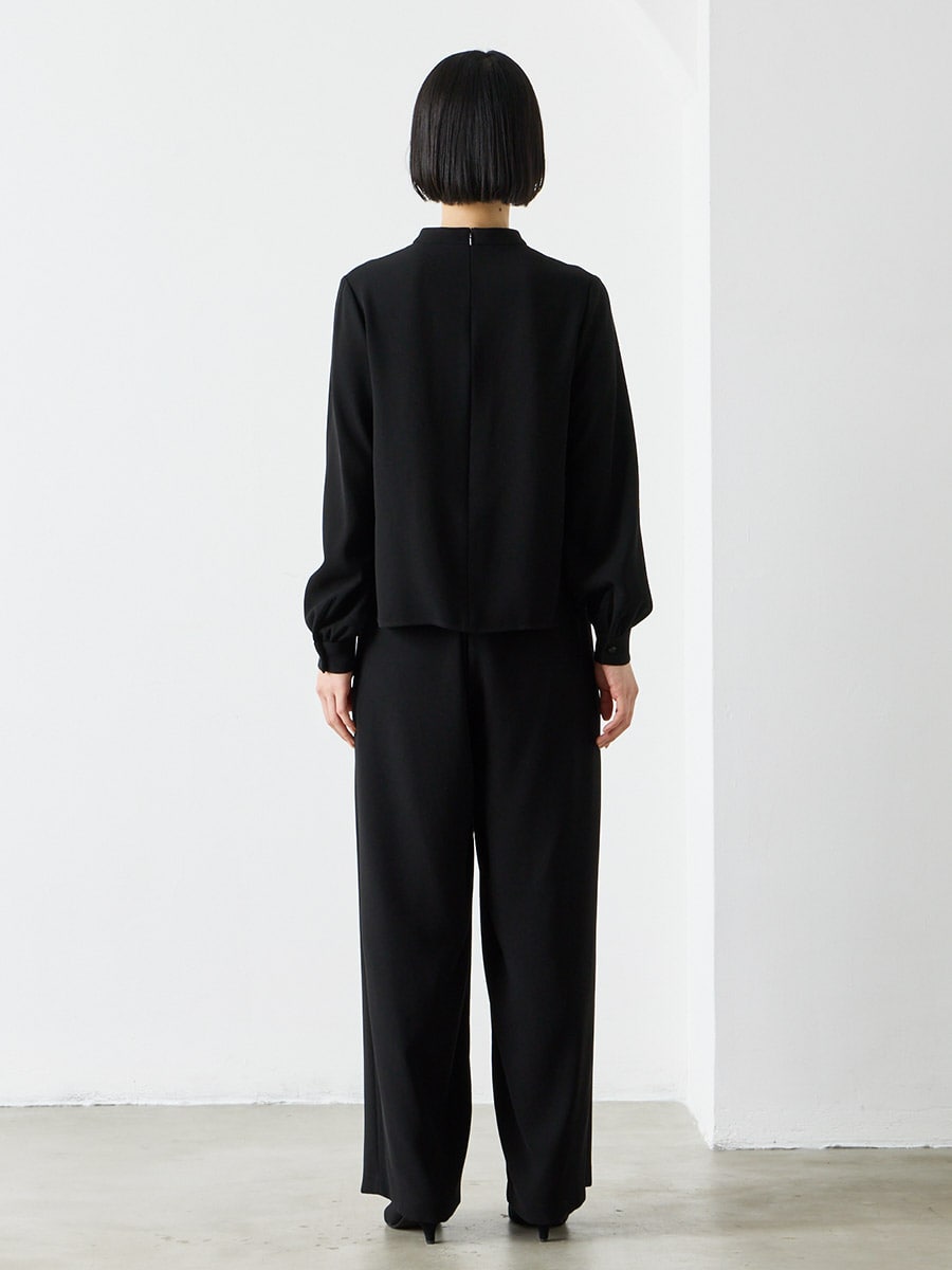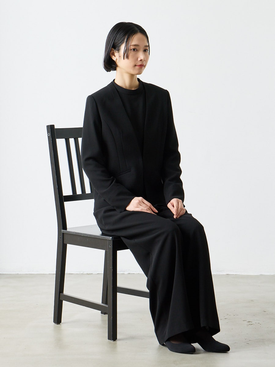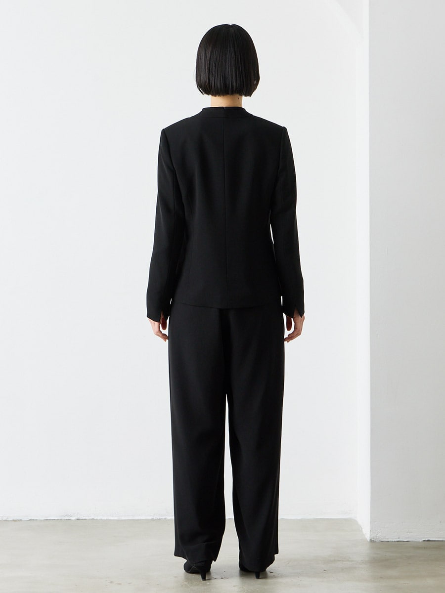 【喪服・礼服】【WEB限定】【マシンウォッシャブル】パンツタイプ3点セットブラックアンサンブル(ノーカラージャケット・スタンドネックブラウス・タック入りワイドパンツ)