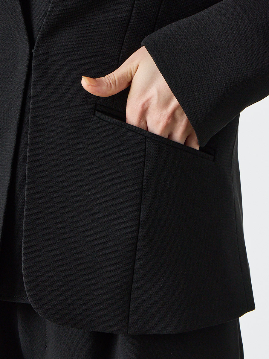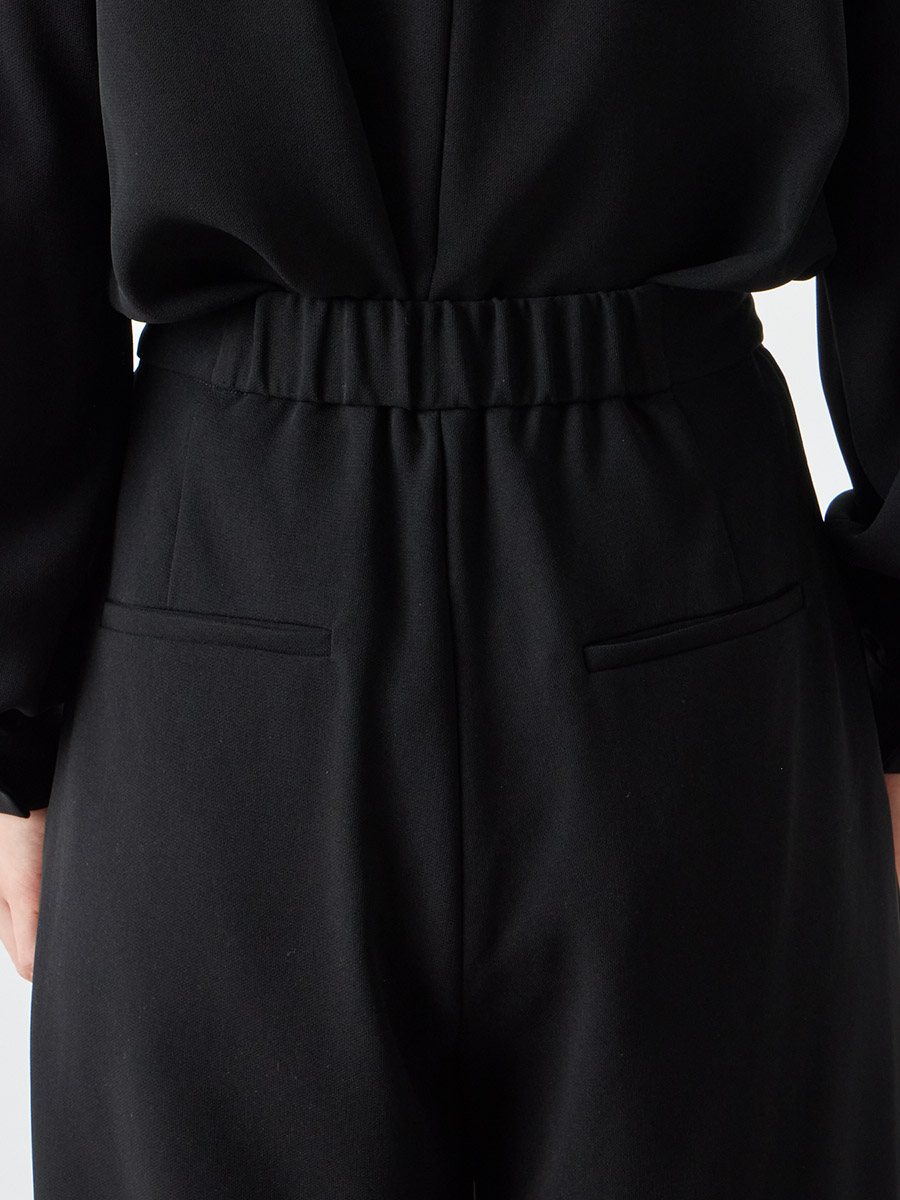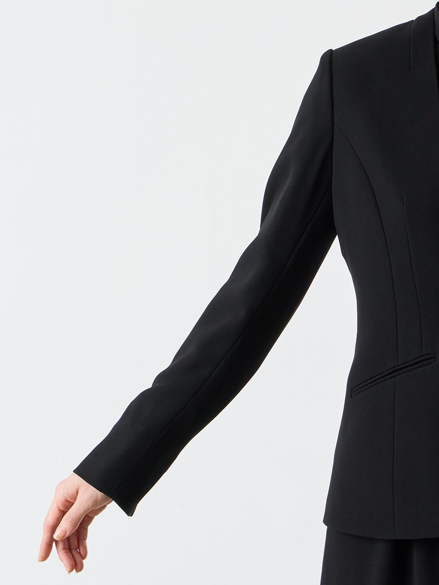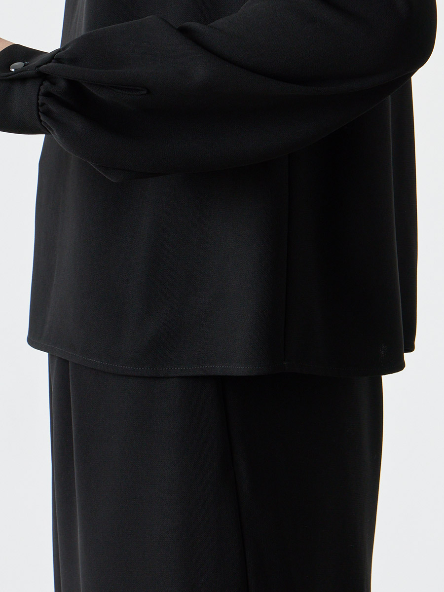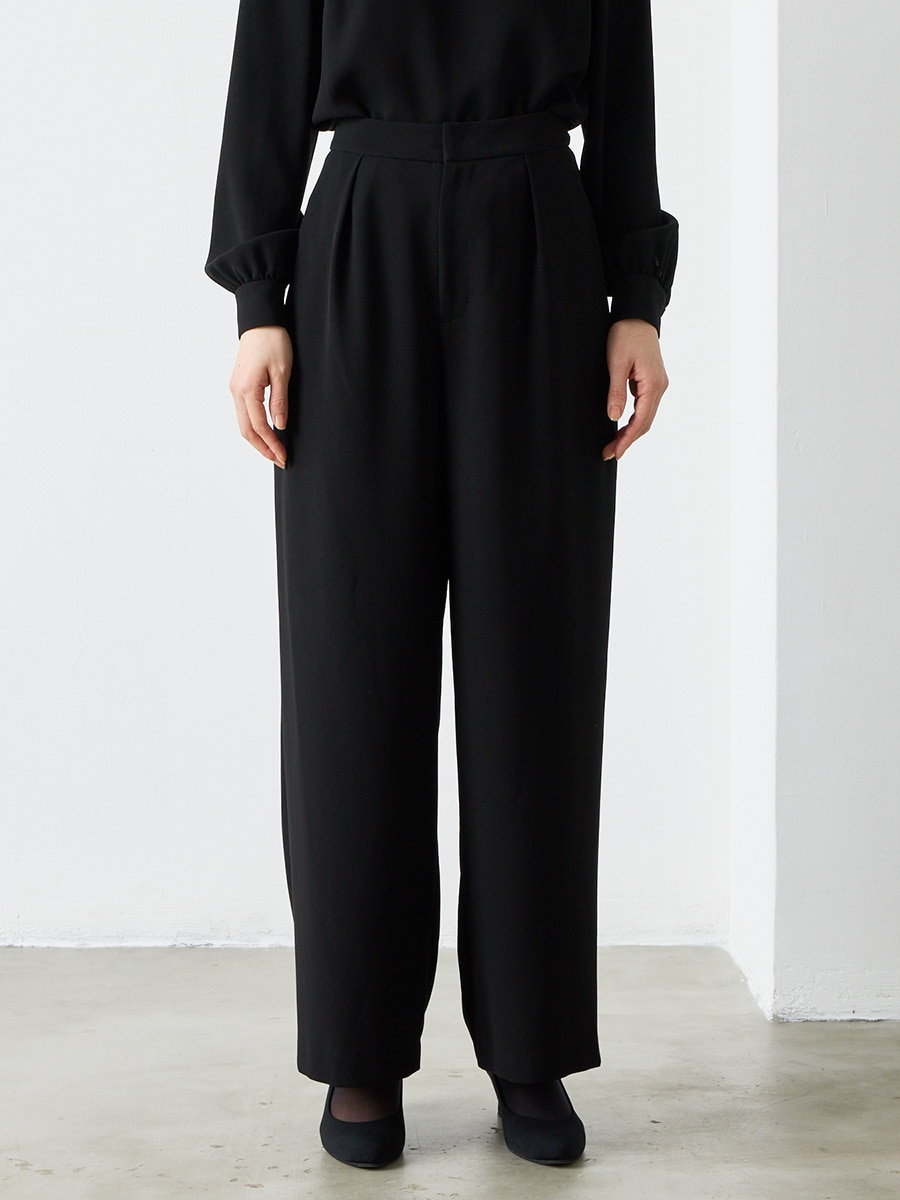 【喪服・礼服】【WEB限定】【マシンウォッシャブル】パンツタイプ3点セットブラックアンサンブル(ノーカラージャケット・スタンドネックブラウス・タック入りワイドパンツ)
