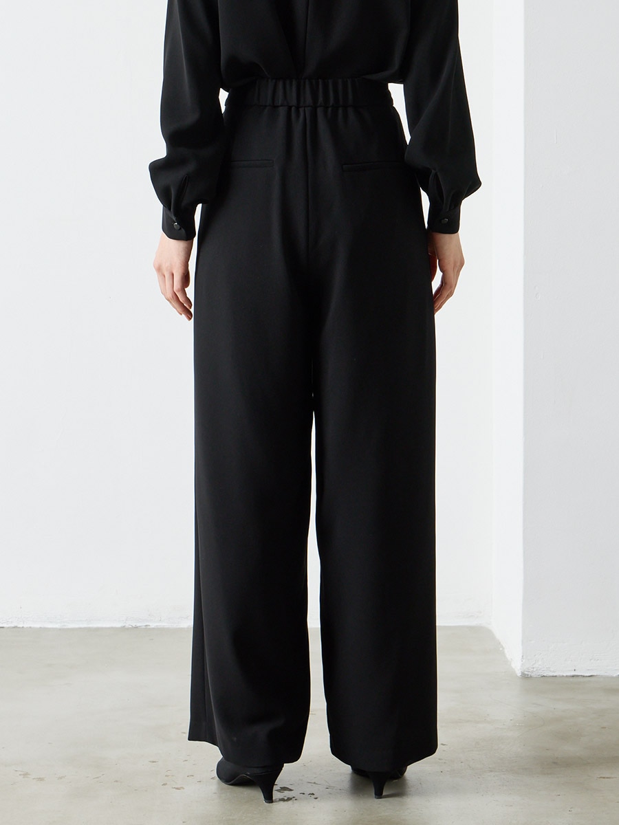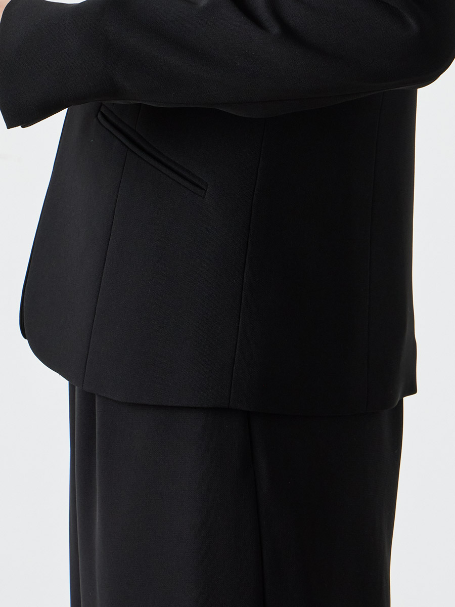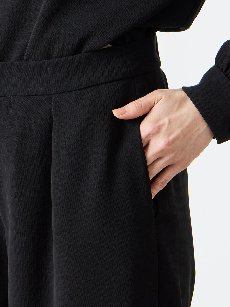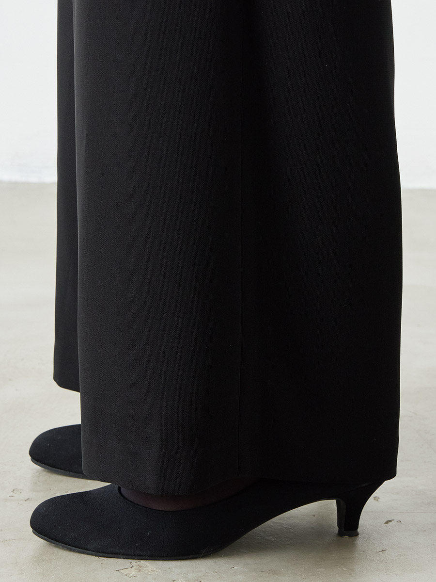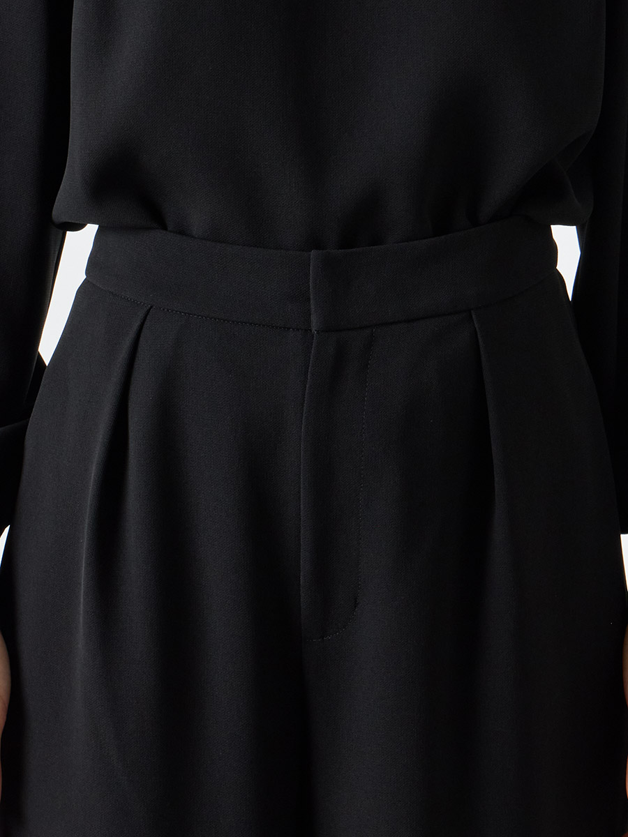 【喪服・礼服】【WEB限定】【マシンウォッシャブル】パンツタイプ3点セットブラックアンサンブル(ノーカラージャケット・スタンドネックブラウス・タック入りワイドパンツ)