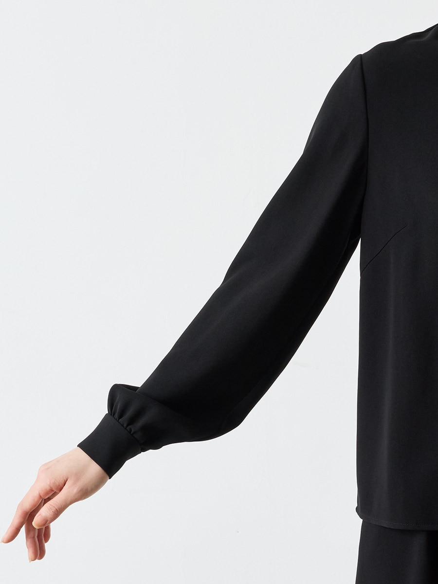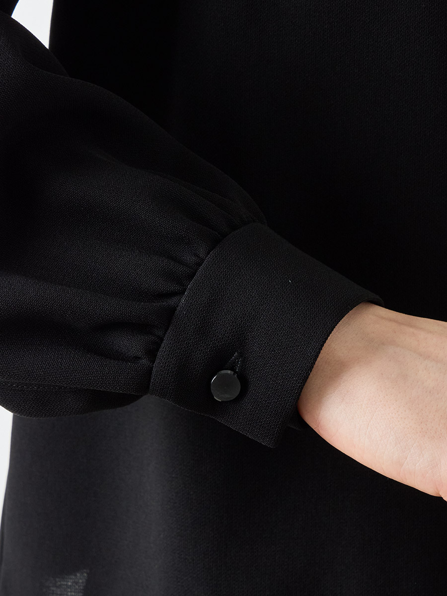 ・カフス付きの長袖は、袖口にギャザーを入れて少しだけふんわりとさせた優しい印象です。