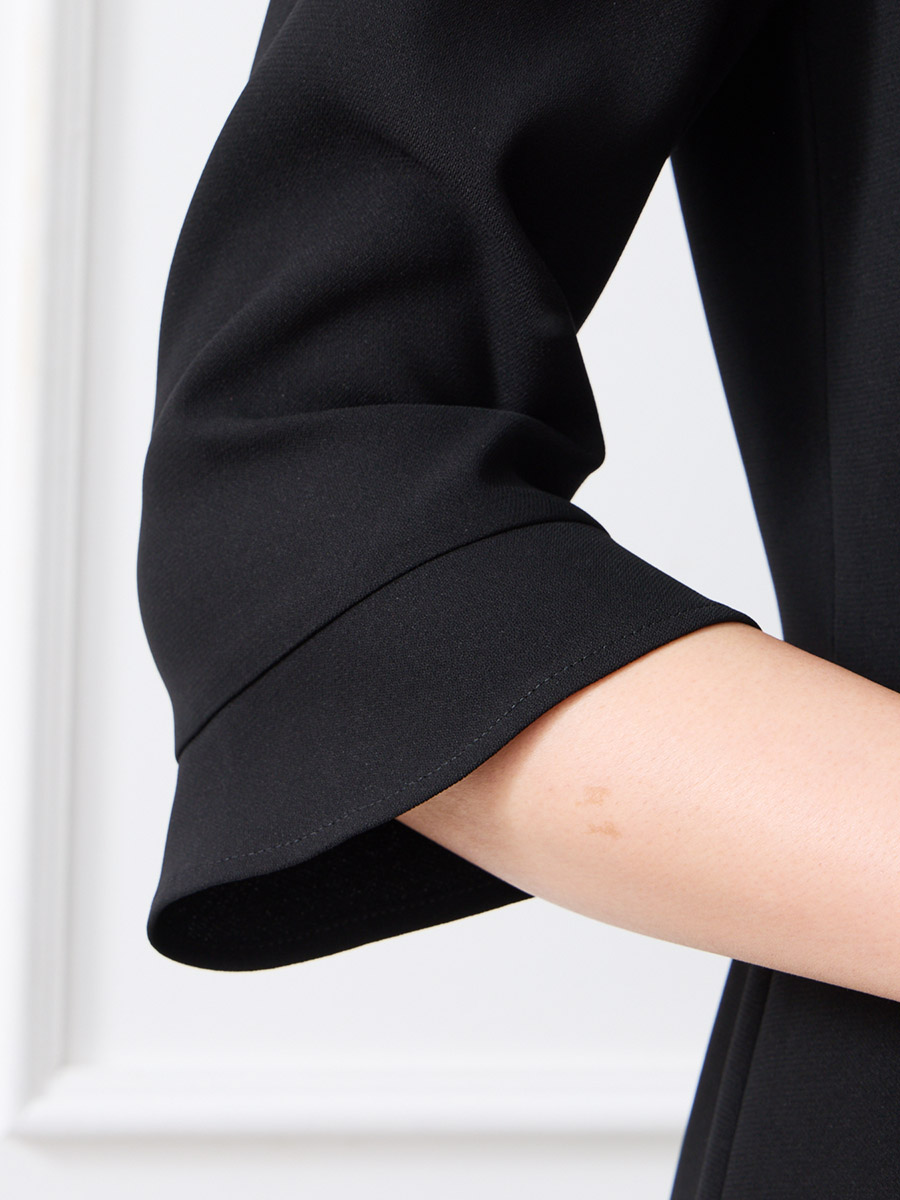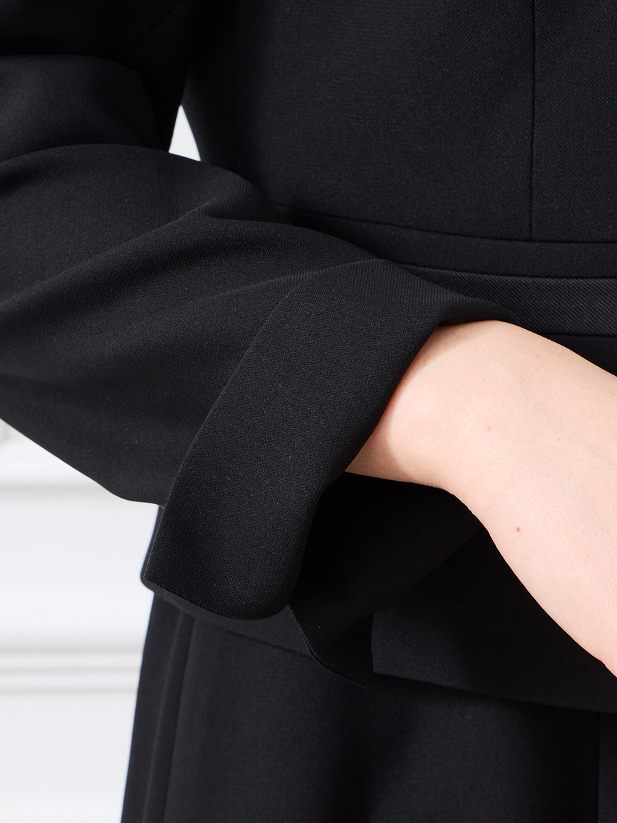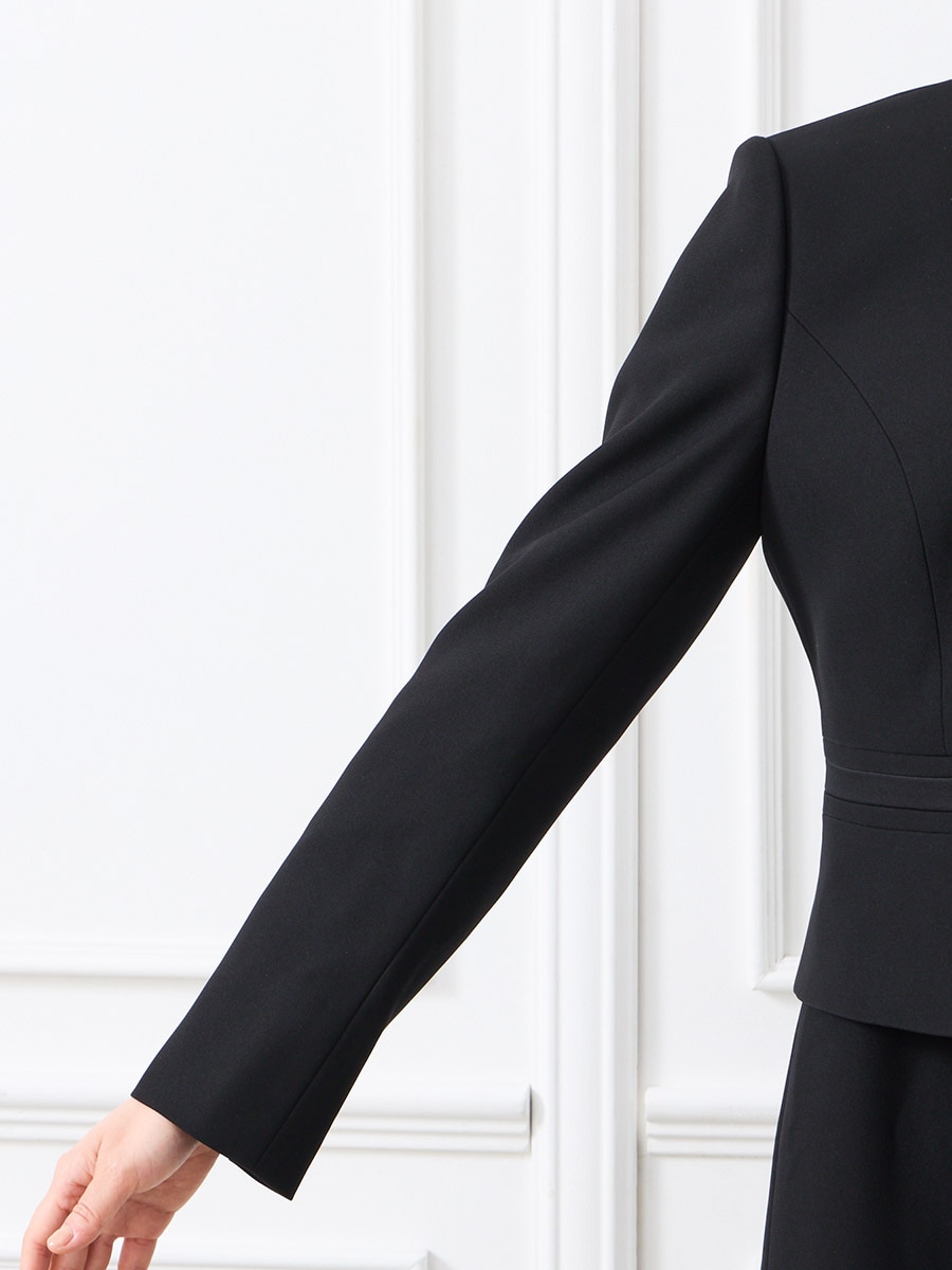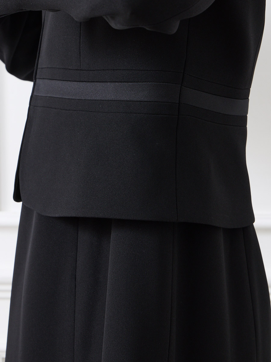 【喪服・礼服】【洗える・マシンウォッシャブル】ブラックフォーマルアンサンブル(グログラン切り替えノーカラージャケット 前開きフレアワンピース)