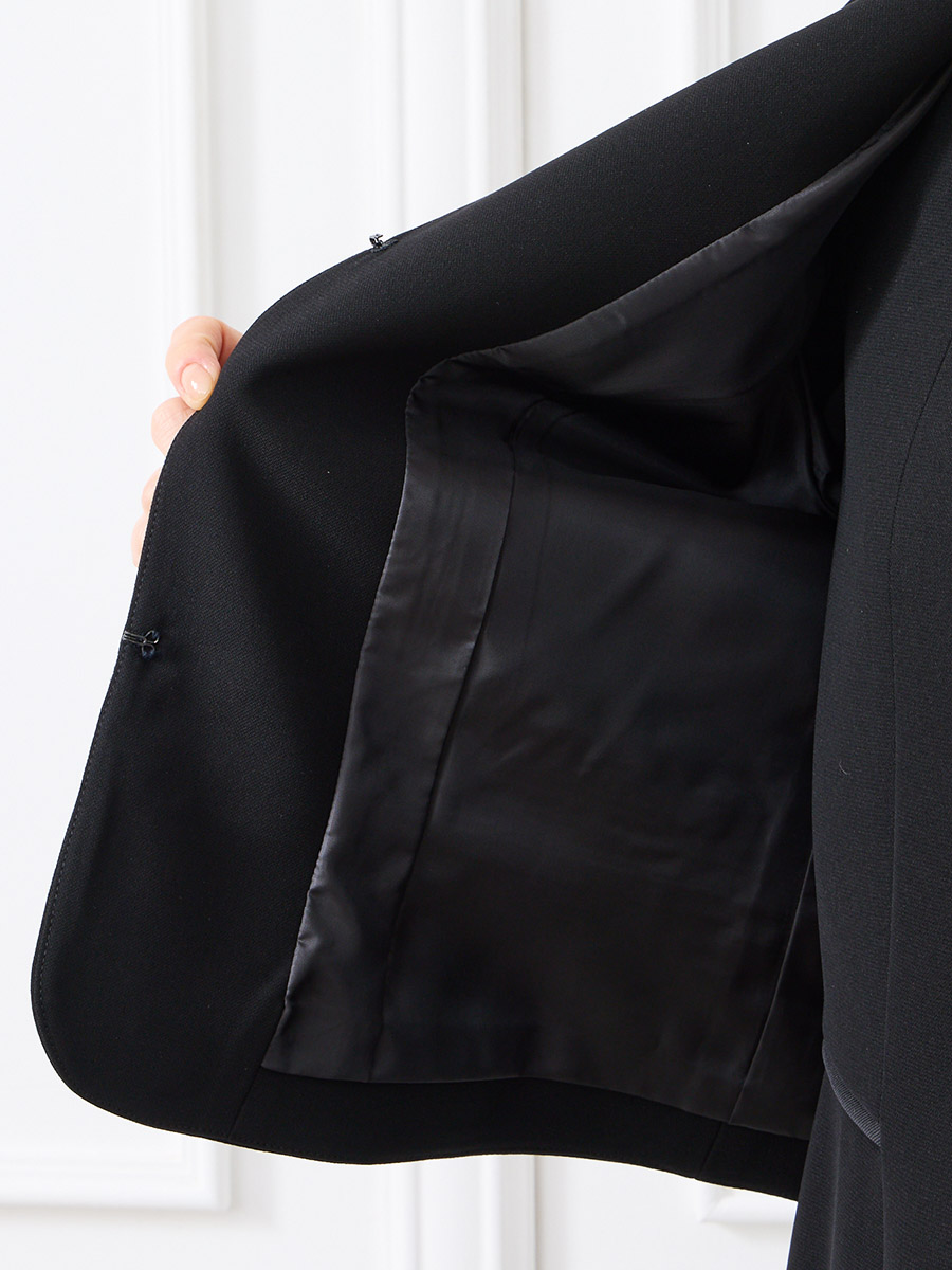 ・「帝人フロンティア」製のフォーマル専用生地を使用。発色性の良い濃い黒が特徴です。