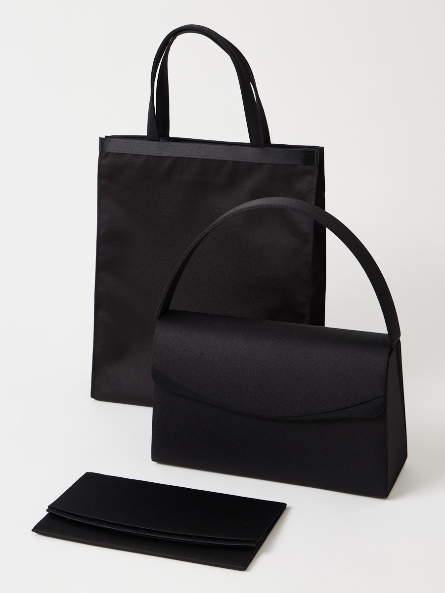 【喪服・礼服用】【WEB限定】サテン切り替えフラップブラックバッグ3点セット(サブバッグ・袱紗)