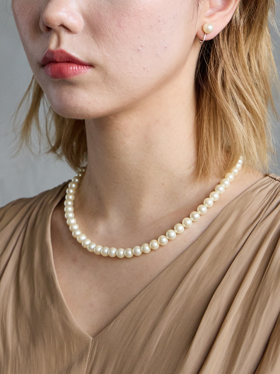 最高級の貝パールを使用しており、ほんのりとベージュがかったアイボリーで肌になじみやすいナチュラルな風合いです。