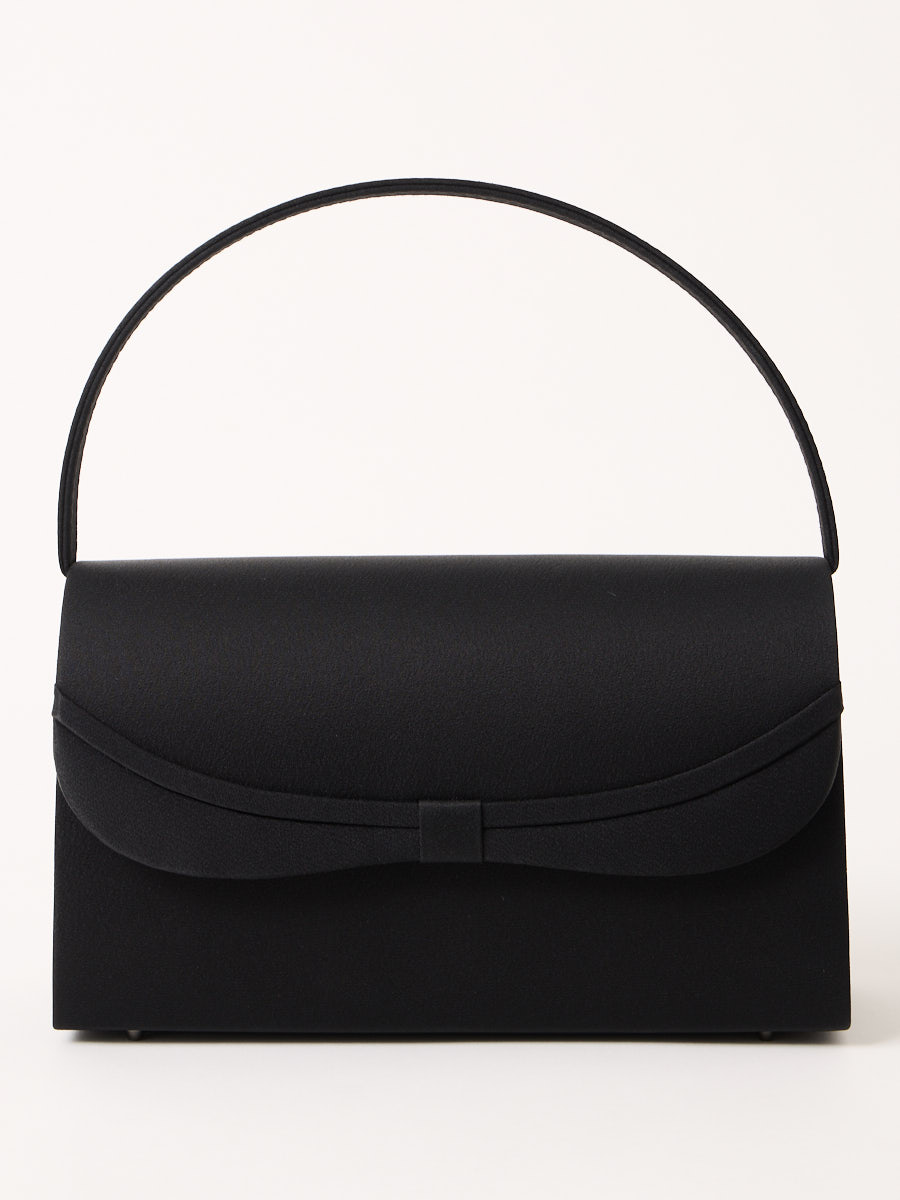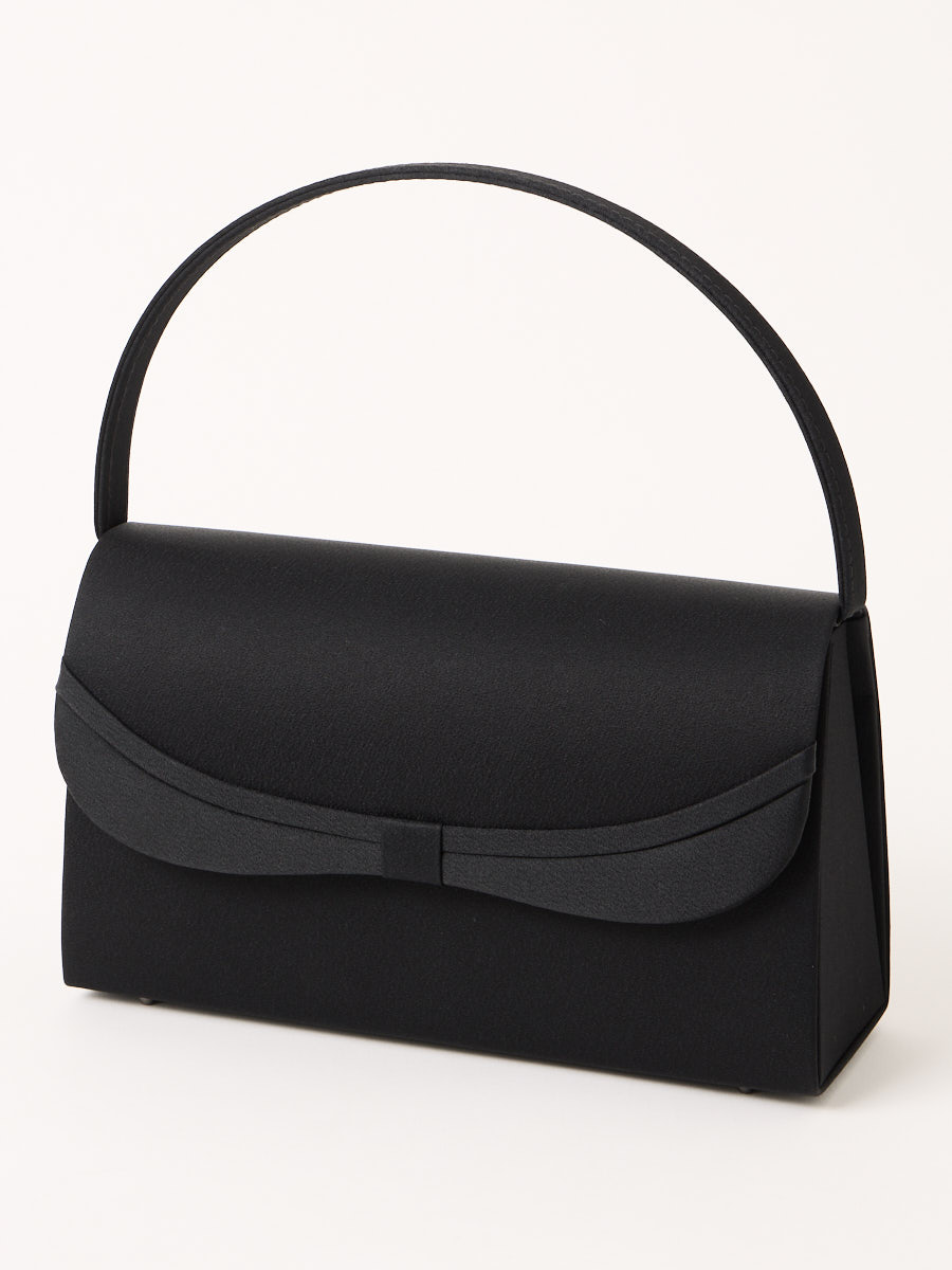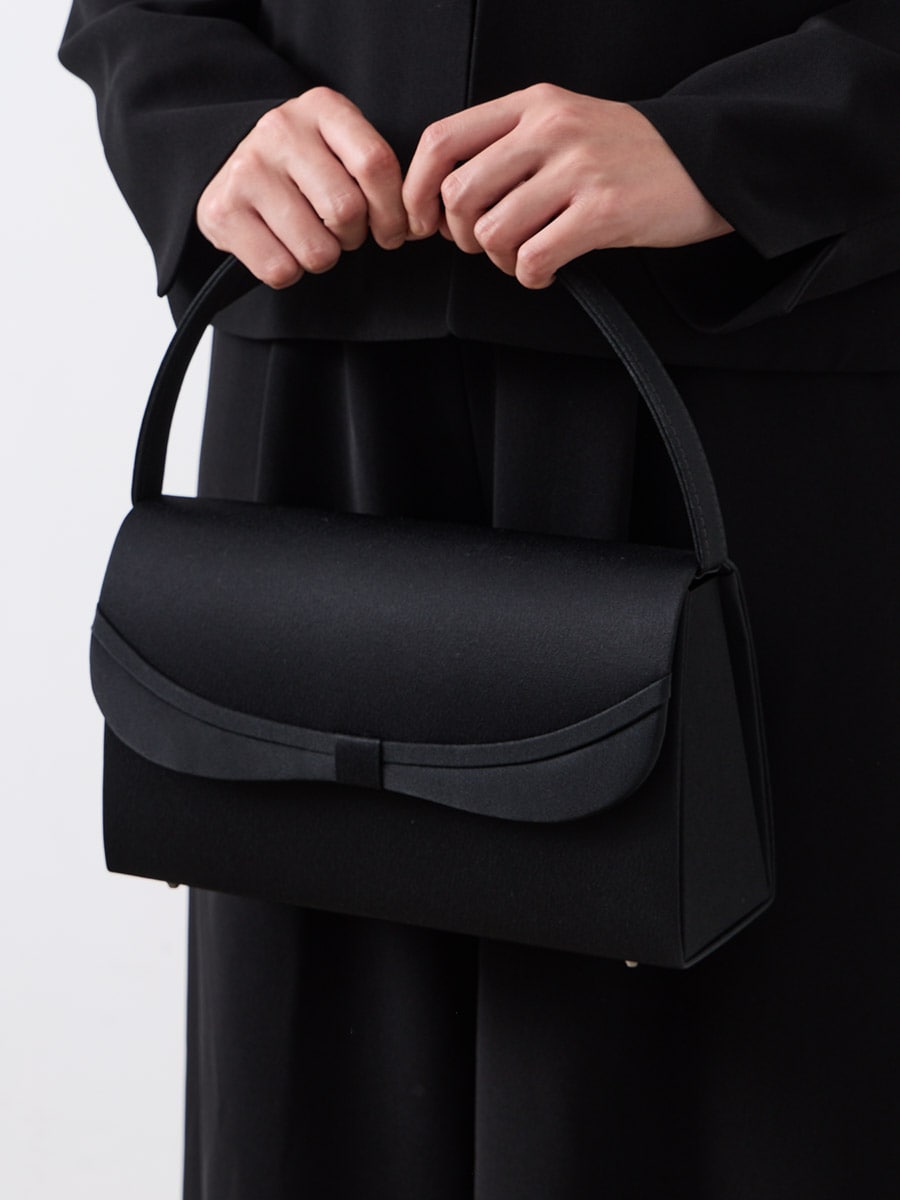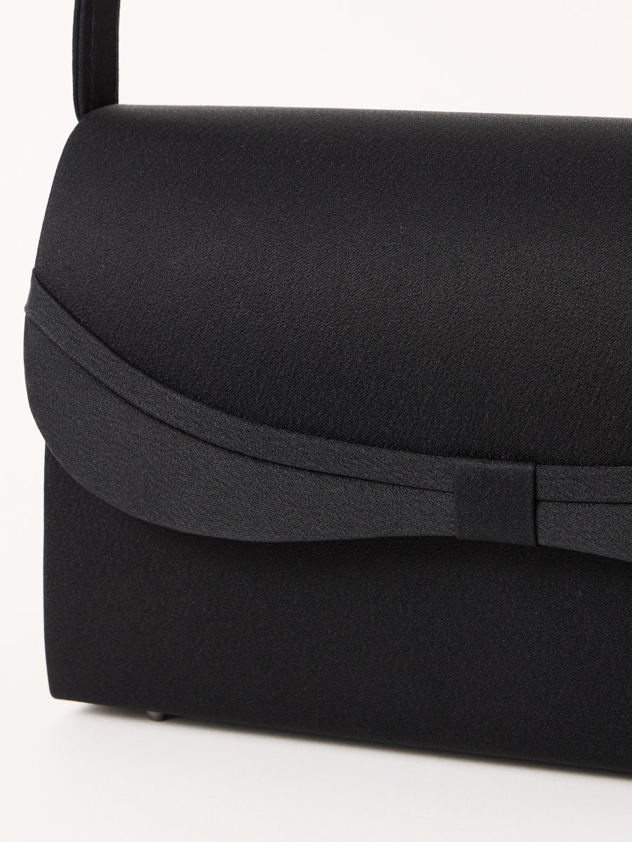 リボン型のフラップが愛らしい印象のブラックバッグ