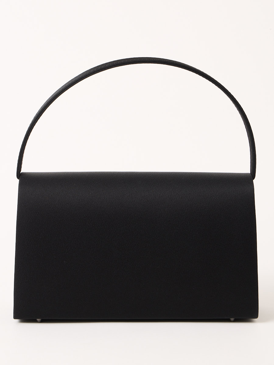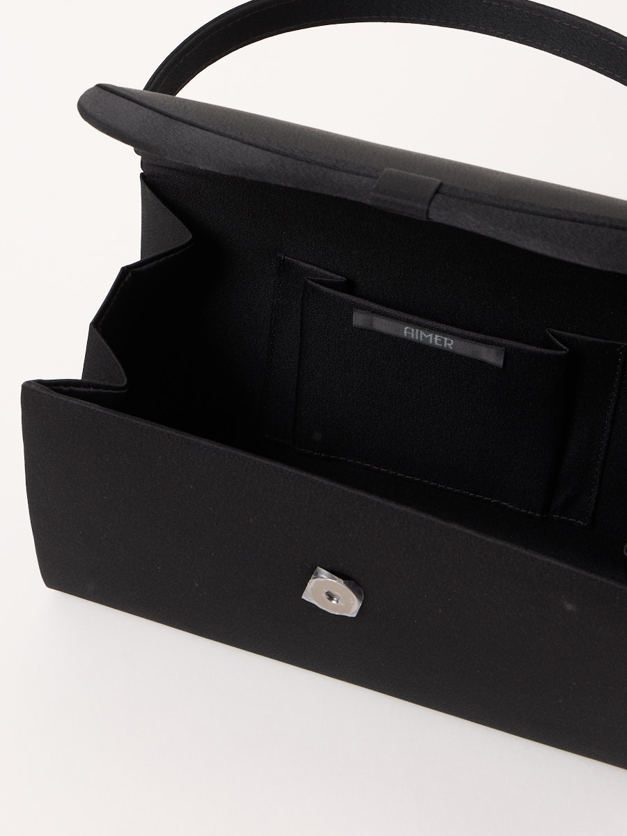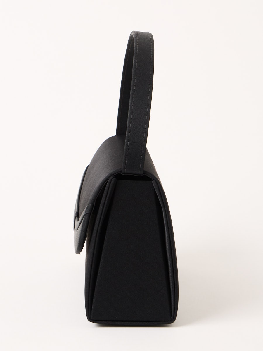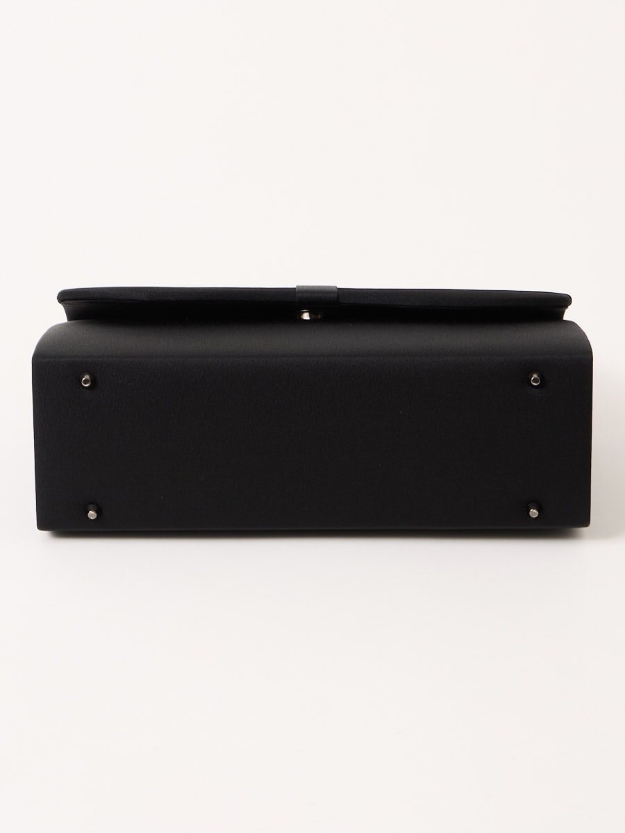 リボン型のフラップが愛らしい印象のブラックバッグ