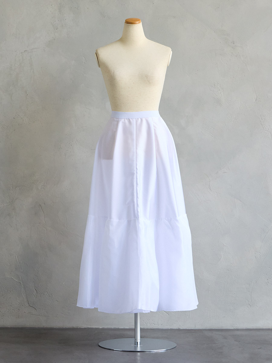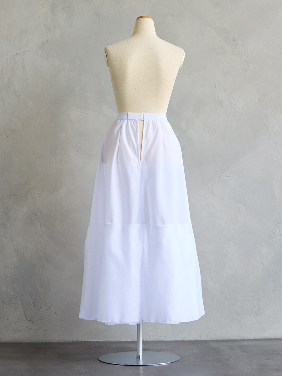 ウエスト周りのボリュームを抑えたシルエットのため、ソフトマーメイドラインのスカートにも合わせやすいスレンダーパニエです。