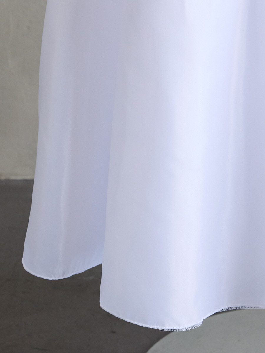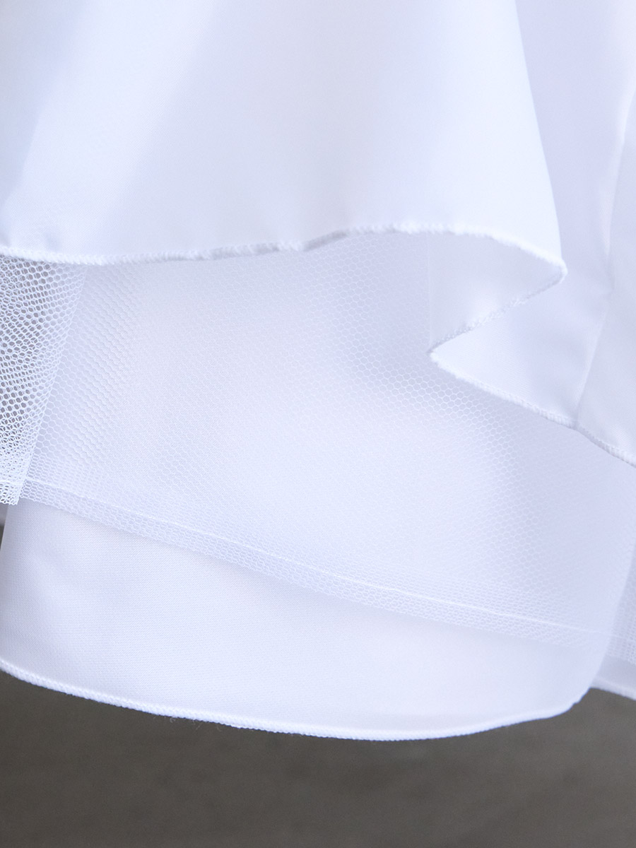 裾周りはタフタとチュールの素材を重ね、広がるデザインになっています。